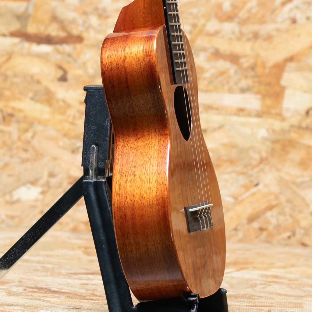 アルヴィン・オカミにより1995年に創設されたコアロハ・ウクレレ。現在は長男で社長のアランと、次男で副社長のポールを中心に、少数精鋭にて運営されております。今ではハワイを代表するウクレレメーカーの一つとなったコアロハ。モダンなルックスデザイン、優れた演奏性で、他のメーカーにはないハイファイでクリア、そしてなんと言っても大きな音量が特徴。本器はコンサートスタンダードモデル”KCM-00”2022年製のUSED品。目立つような傷や使用感は見られず、演奏性も良好。新品をお考えの方にもおすすめ出来る一本です。コンサートサイズで演奏の幅も広く、様々なジャンルに対応可能なこちらのモデル。セミハードケースが付属いたします。