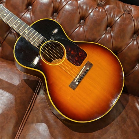 スチューデントモデルとして1949年にラインナップされた”LG-2 3/4”。同年代に小ぶりなモデルとしてラインナップされていた”LG-2”のダウンサイジングモデルとして登場したモデルですが、多くのミュージシャンによって愛用されてきており根強いファンを多く持つモデルのひとつ。近年にシグネイチャーモデルとしても起用されたアーロ・ガスリーや、マイケルヘッジス、押尾コータローなどによって、その独特な外観と唯一無二のサウンドレンジを持つ音色は多くの魅力を秘めて残されてきました。本器は1958年製Vintage品。スプルーストップ、マホガニーサイド&バック、マホガニーネック、ハカランダ指板&レクタングルブリッジ、シングルリングロゼッタ、べっ甲柄セルロイドスモールガード、ラダートップブレイシング。ナット幅39mmのナローネックに577.85mmのショートスケールに小ぶりなボディーがとてもかわいらしい一本。ラダーブレーシングらしい小気味のよいサウンドに加え愛嬌のある小振りなルックスが魅力あります。3連クルーソンペグは交換がされている他、ピックガード脇にクラックが一箇所ございますが、しっかりと補修されています。年代相応の傷や使用感はあるものの、オリジナル塗装を維持しており、上記以外に大きなダメージは見られません。ネック&フレットのコンディションも良好、ショートスケールの弾きやすいテンション感とナローネックは手の小さな方にも扱いやすくておすすめです。軽さも魅力でリラックスして軽く爪弾くにも最適なギターです。汎用ハードケース付属