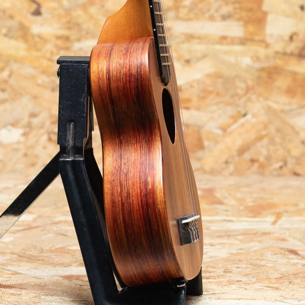 アルヴィン・オカミにより1995年に創設されたコアロハ・ウクレレ。現在は長男で社長のアランと、次男で副社長のポールを中心に、少数精鋭にて運営されております。今ではハワイを代表するウクレレメーカーの一つとなったコアロハ。モダンなルックスデザイン、優れた演奏性で、他のメーカーにはないハイファイでクリア、そしてなんと言っても大きな音量が特徴。本器はソプラノボディのサテンフィニッシュモデルの2025年製USED品。ハワイアンコアボディ、マホガニーネック、エボニー指板&ブリッジ、Gotoh製UPTペグ搭載。艶消し仕上げの為肌触りも良く、ドライなサウンドが良く響き、ソプラノサイズながらしっかりとした安定の良いサウンドで、ストラミングで気持ちよく鳴らしたいウクレレです。年式も新しく、使用感も特に感じられないきれいな状態のニアミント品。新品をご検討されていた方にもおすすめです。汎用ソフトケース付属です。