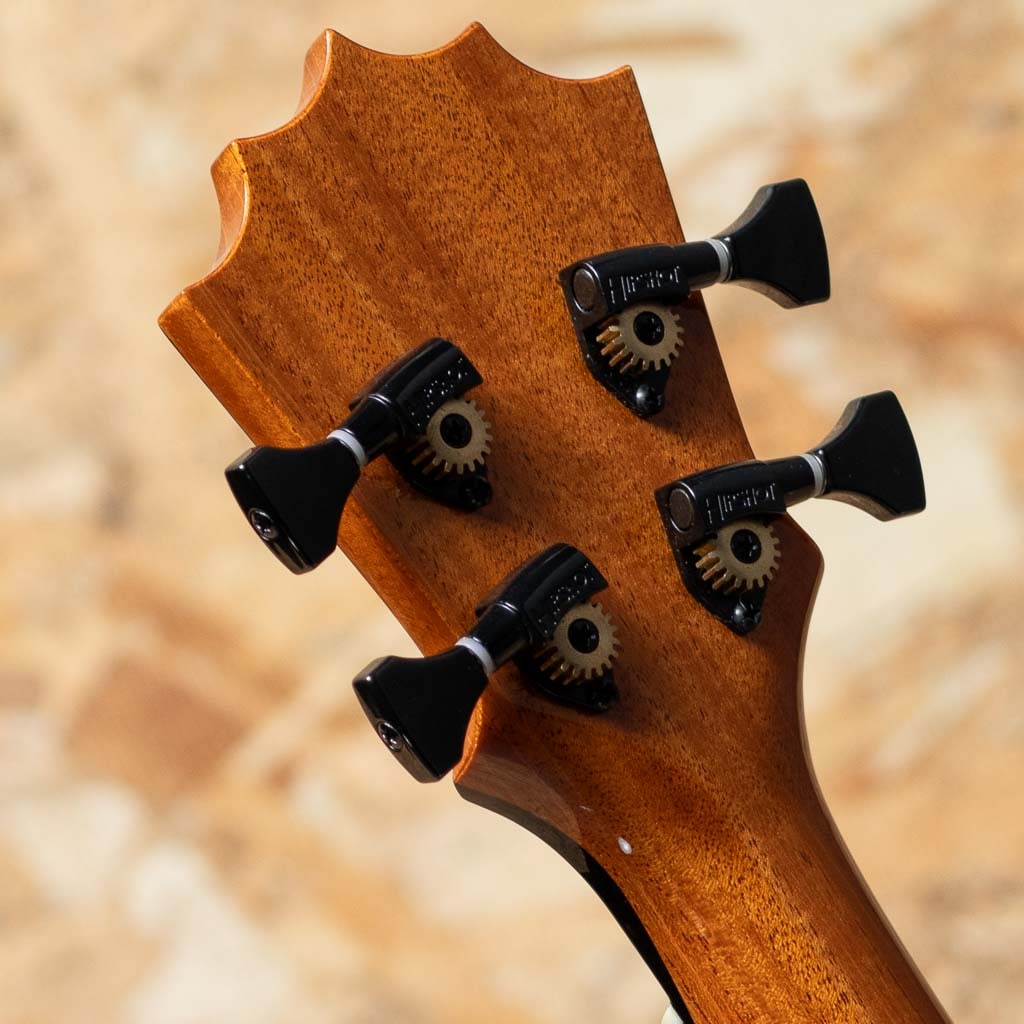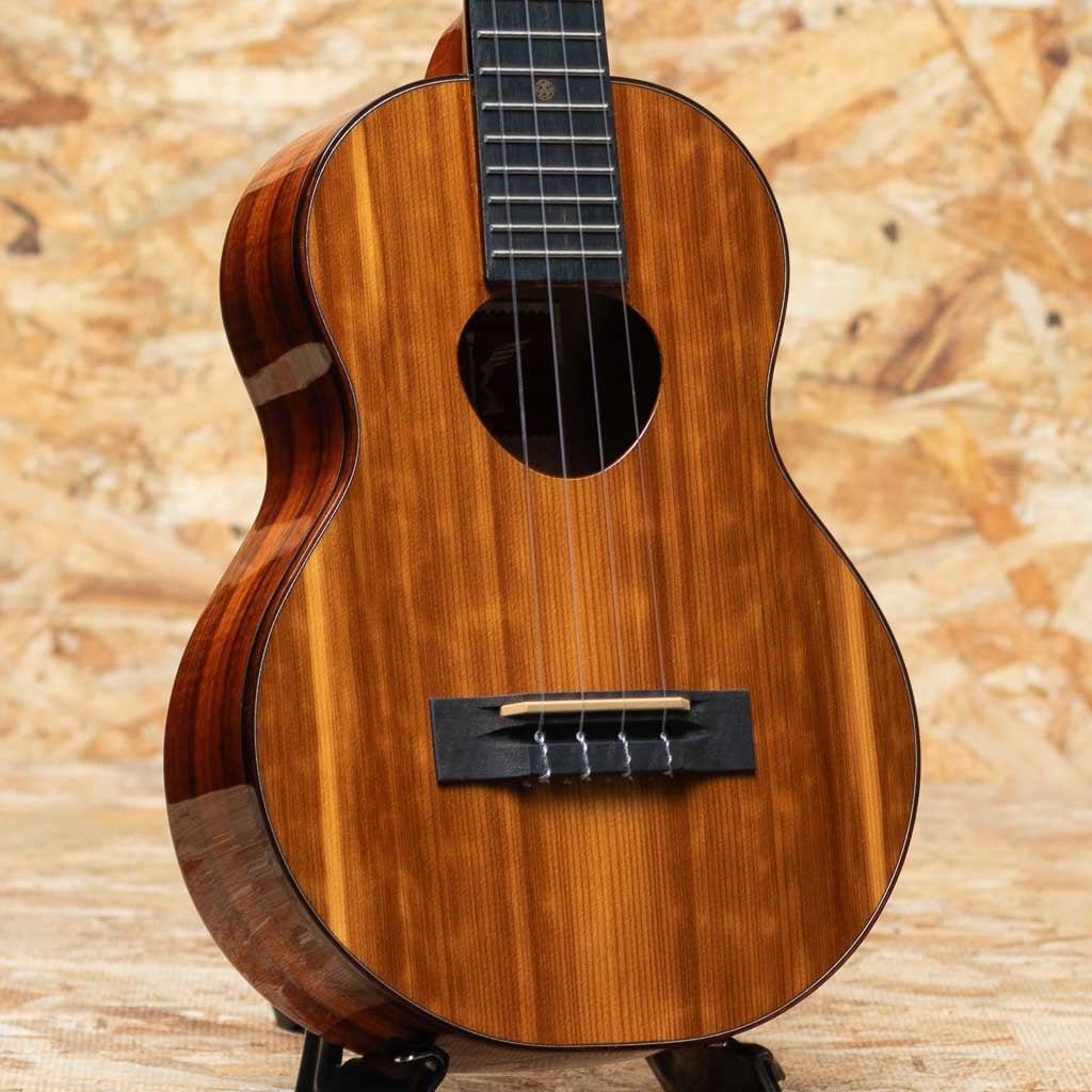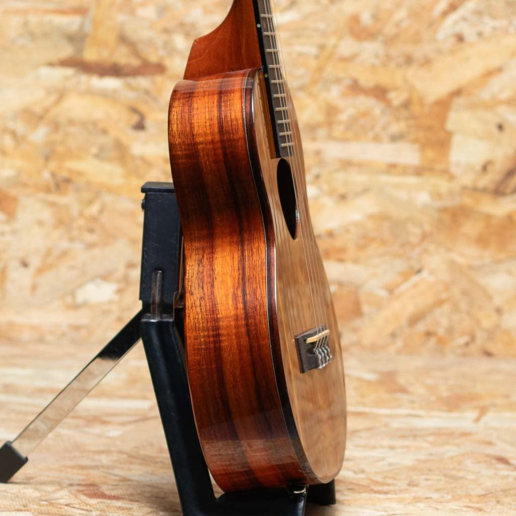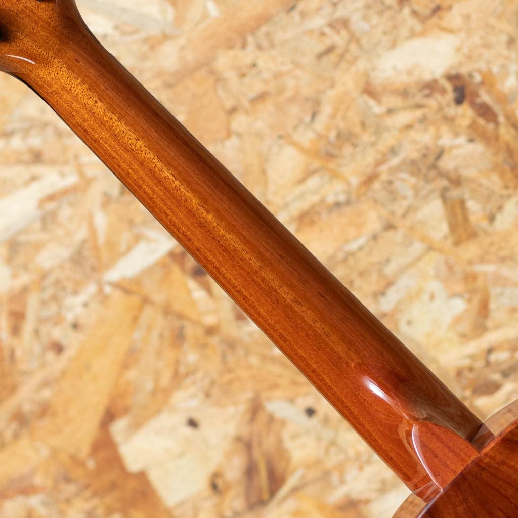 アルヴィン・オカミにより1995年に創設されたコアロハ・ウクレレ。現在は長男のアランと、次男のポールを中心に少数精鋭の職人たちで運営されております。今ではハワイを代表するウクレレメーカーの一つとなったコアロハ。本器は非常に流通の少ないレッドレーベルモデルのテナーサイズ。いわゆるカスタム品で、熟練の職人のみが携わって製作されております。こちらは" '21-'22 Winter "の限定モデルのUSED品。シダートップ、ハワイアンコアサイド&バック仕様の1本。マホガニーネック、エボニー指板&ブリッジ、銅板のデザインの指板インレイ、軽量のヒップショット製ギヤペグ搭載。ヘッドにはアバロンにてカスタムロゴ(コアロハウイングインレイ)、ボディ内側のラベルには特別にウッドのレッドラベルが施されております。そして何より内部の木工が特殊で、通常のモデルで使用されている輪型のブレーシング”ユニブレース”は用いられておらず、トップとバックに独立したセミカスタムブレーシングが採用されており、そのおかげでサウンド面も別格。輪郭も立ち、音量も豊かで、従来のモデルに比べ重厚さもあり、劇的なサウンドの違いを感じることができます。軽微な小傷や打痕は見られますが、全体的にはきれいなコンディションが保たれています。シダートップでコアモデルとは違ったサウンドが味わえる特別な1本。オリジナルハードケース付属です。