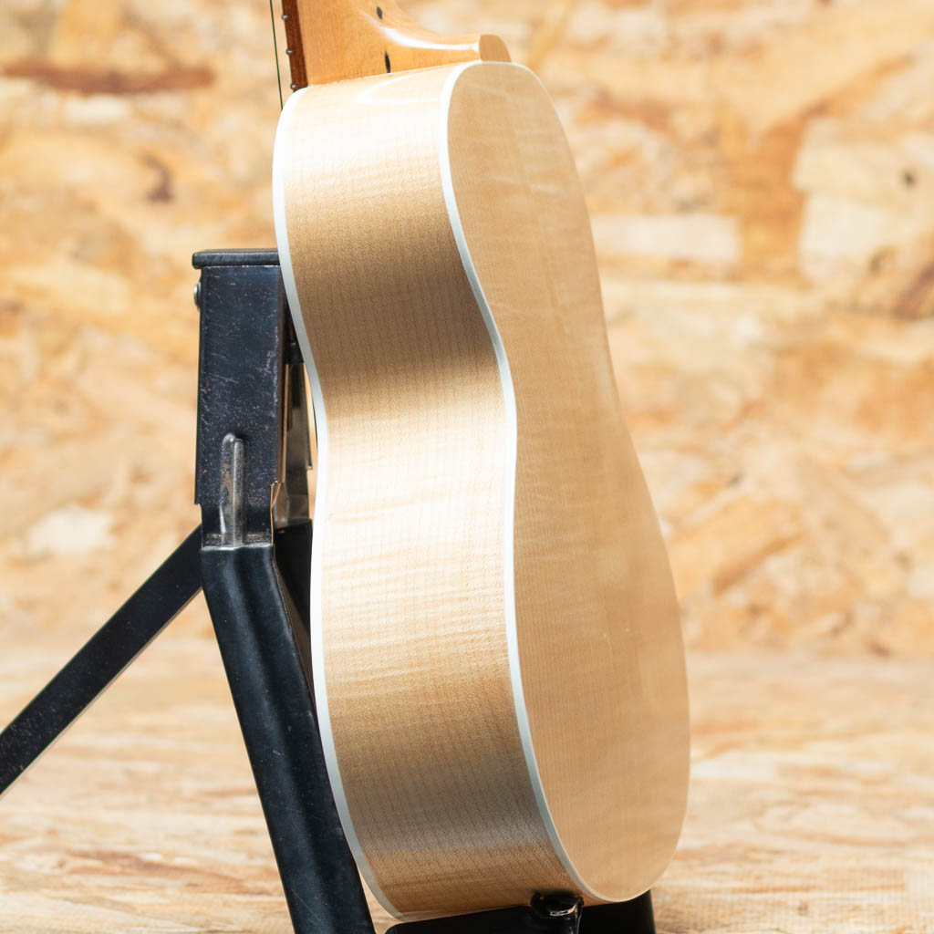 ・占部ウクレレ特有のやや薄めで握り易いネックシェイプ、0フレット仕様でローポジションの弾き易さは格別