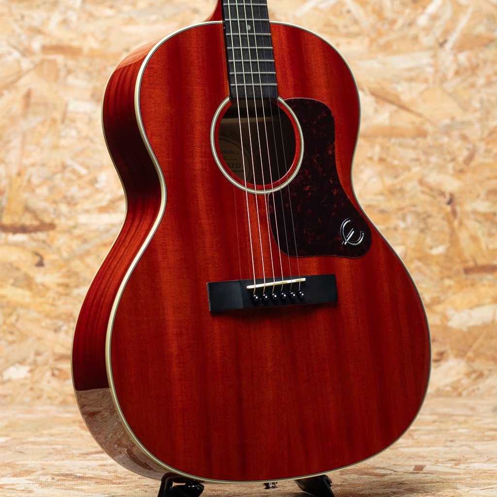 GIBSONが1932年に発売した小型モデル"L-00"を継承したモデル"EL-00 PRO VS"。小柄で抱えやすく、しかもピックアップ搭載でステージでも大活躍の1本。スプルース単板トップ、マホガニーサイド&バック、マホガニーネック、ローズウッド指板&レクタングルブリッジ、グローバーペグ、べっ甲柄ピックガード、シングルリングロゼッタ、Xブレイシング、ビンテージサンバーストカラー、1ボリューム1トーンのFishman社Sonitoneピックアップシステム内蔵。歯切れの良いパワフルな音色でボリュームもあり、非常にコストパフォーマンスの高い作りの本器。標準でピックアップが載っていますので、そのままステージでも積極的に使えます。ヘッド上部にわずかなスレがあるものの、傷やダメージはほとんど見受けられずネックコンディションも良好な一本です。オリジナルソフトケースが付属します。