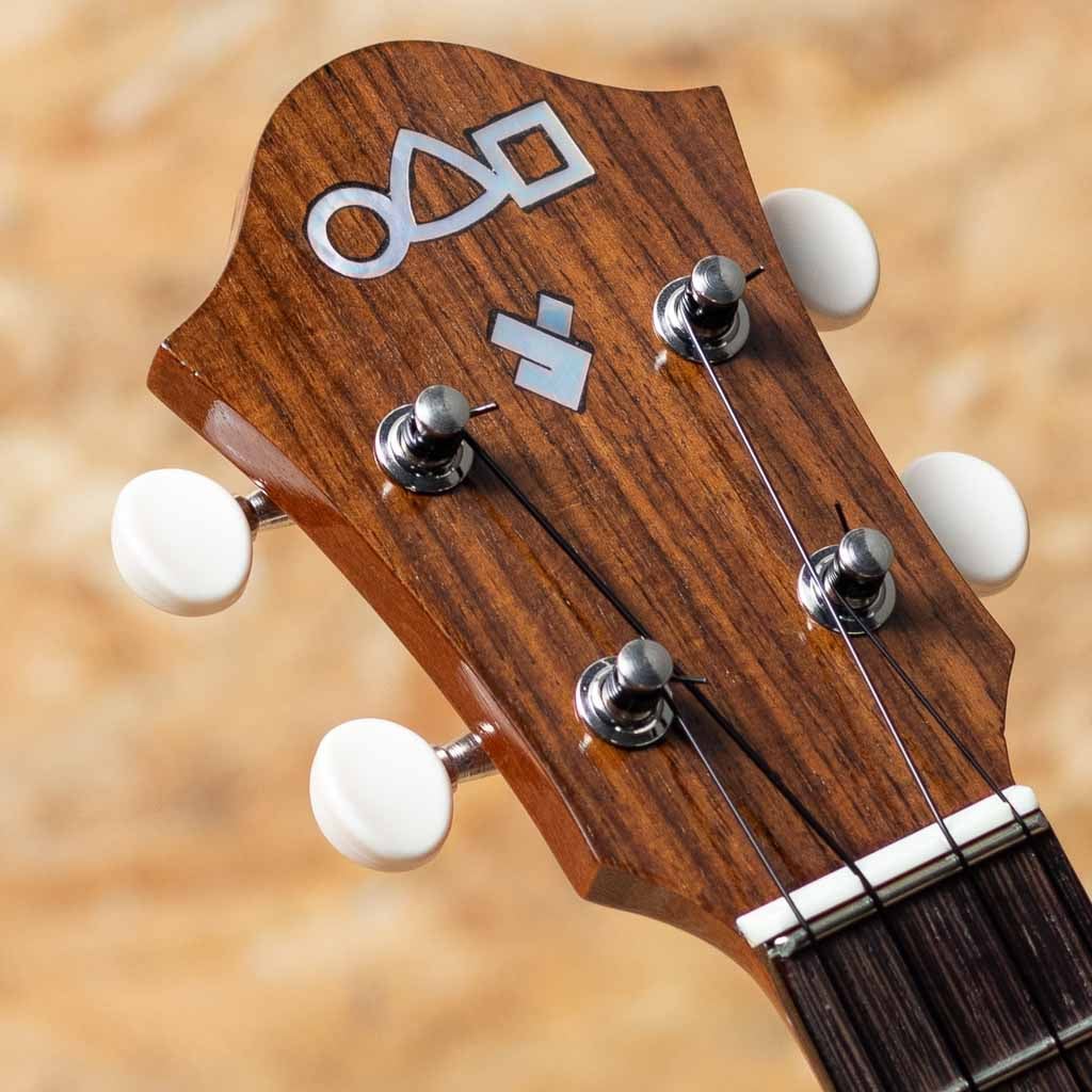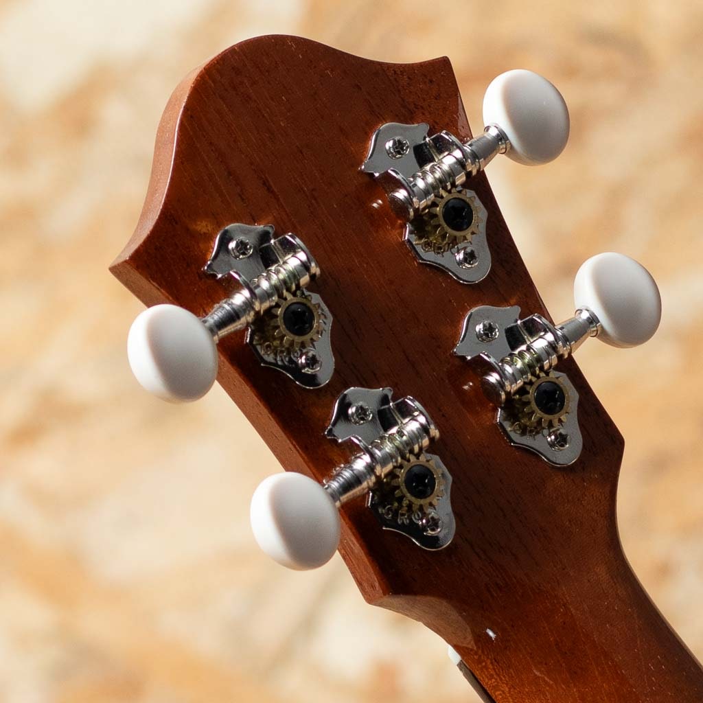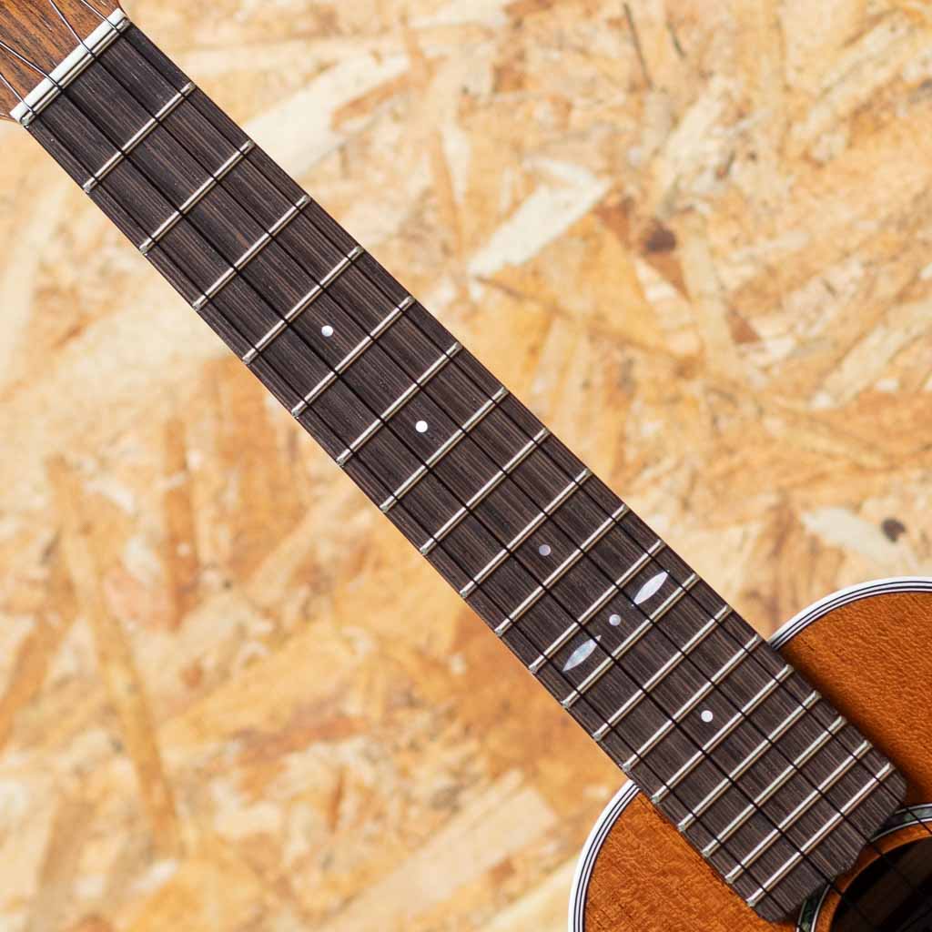 ・占部ウクレレ特有のやや薄めで握り易いネックシェイプ、0フレット仕様でローポジションの弾き易さは格別です。