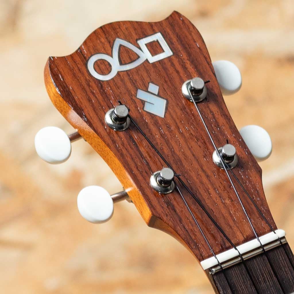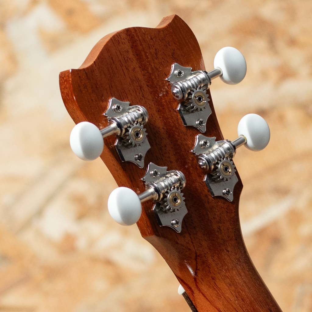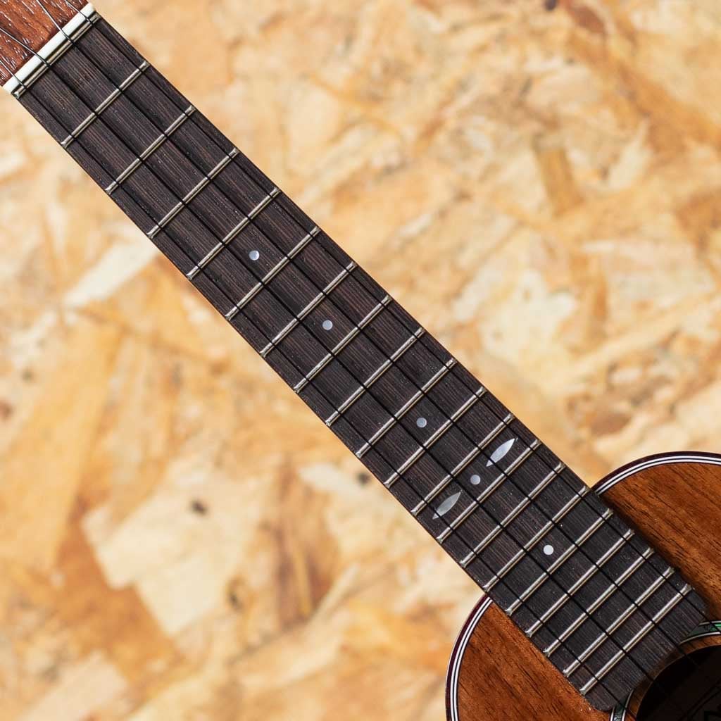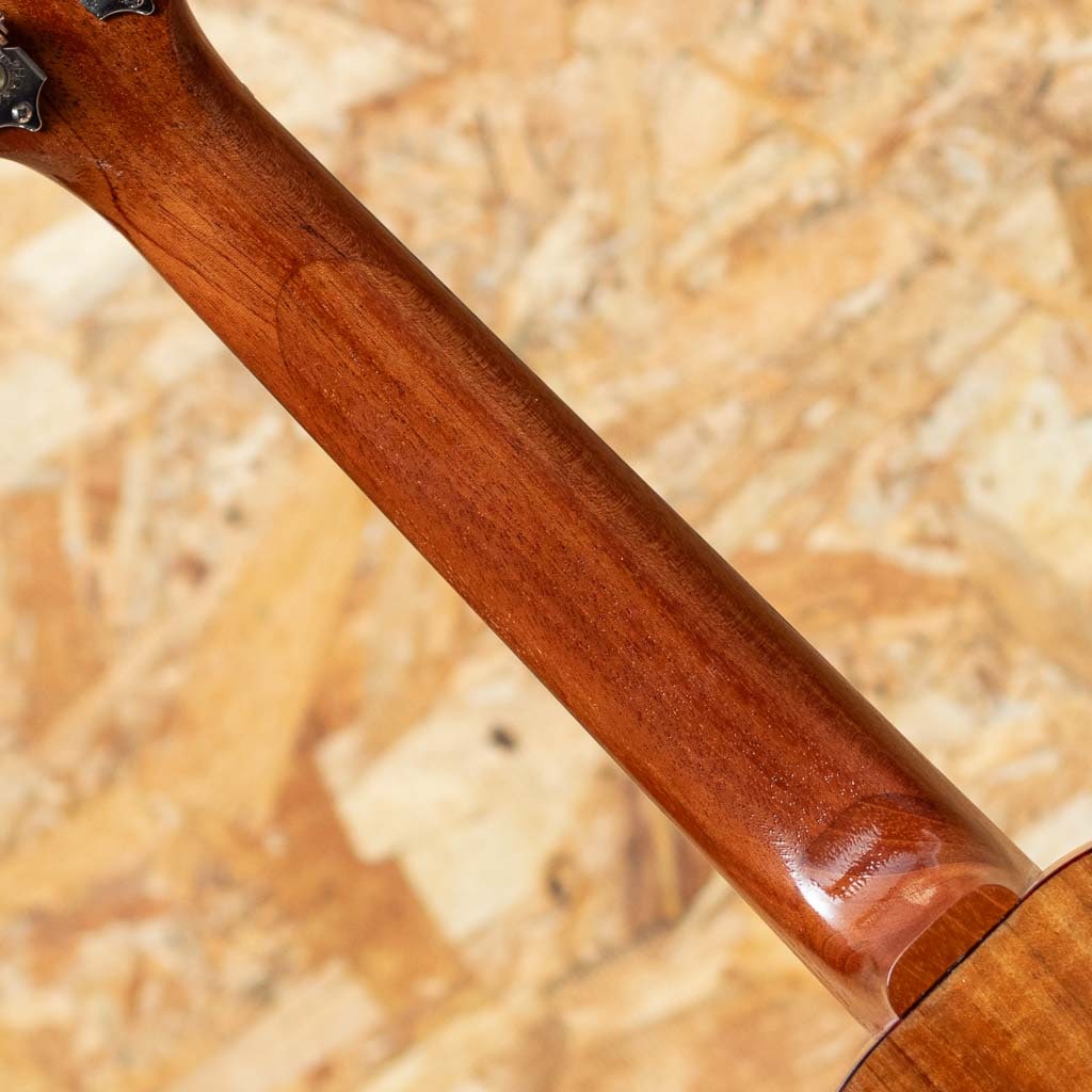 ・占部ウクレレ特有のやや薄めで握り易いネックシェイプ、0フレット仕様でローポジションの弾き易さは格別です。