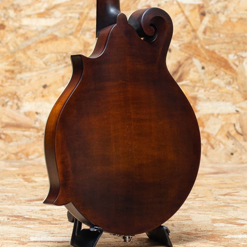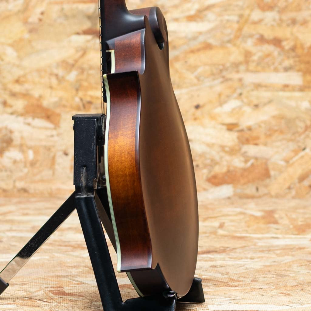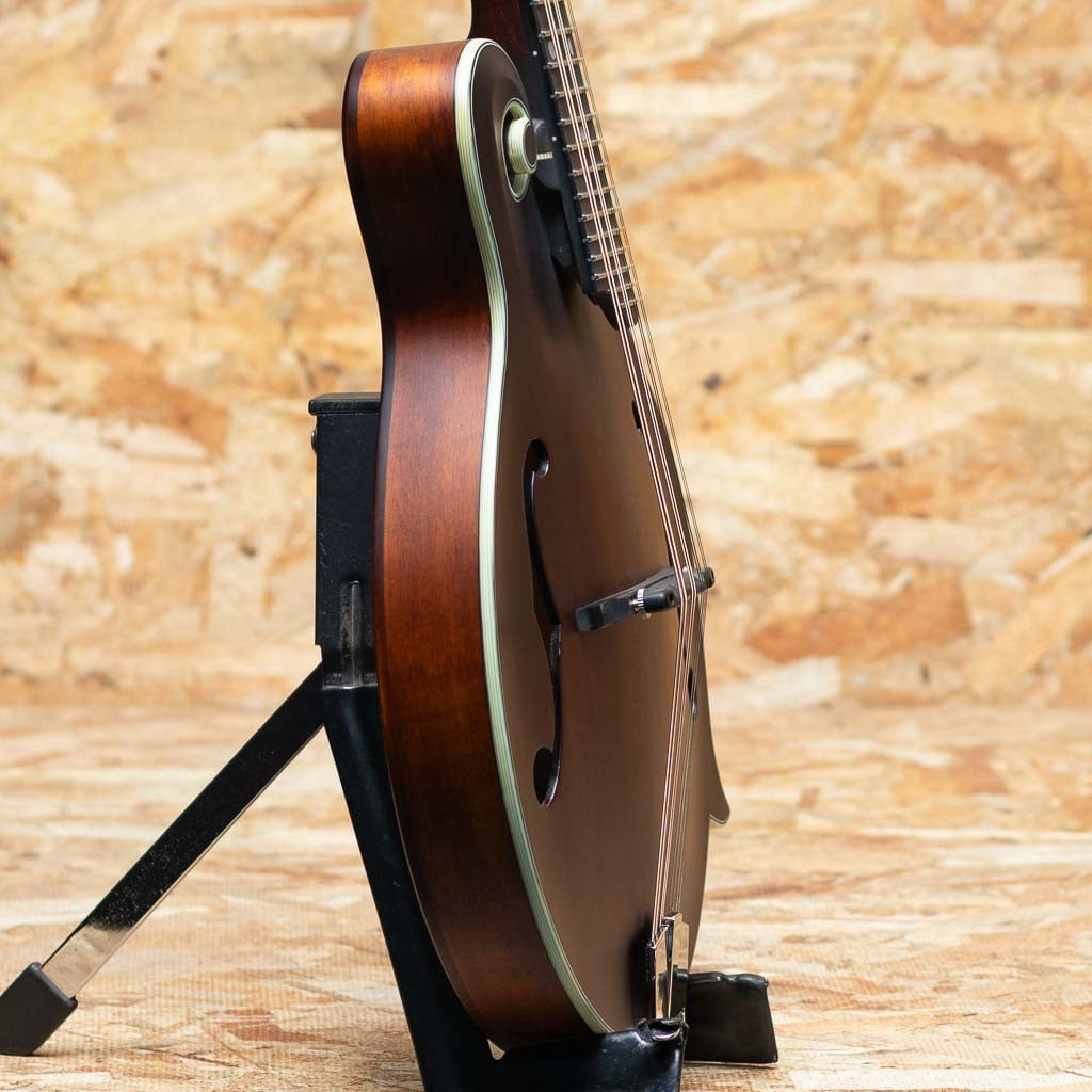オール単板削り出しという音に拘るスペックをもちながらもリーズナブルな価格で人気のEastman Mandolin。見た目の装飾をシンプルに仕上げ、艶消しマットフィニッシュに仕上る事でコストダウンをはかり、音の要と言える単板スプルーストップ&メイプルバックのアーチを単板削り出し、サイドもメイプル単板のオール単板にて製作したコストパーフォーマンスに優れたモデルです。こちらは現在海外でも評価が高くマンドリンに取付の人気のP.U”K&K Duotone”を搭載しており、アコースティックなサウンドをライブで使用できるエレクトリックマンドリンになっています。メイプルネック、エボニー指板&ブリッジ、オリジナルアルミテールピースです。Style-Fのfホールフラットマンドリン。パンチのある力強い出音にキレの良さがあるまさにブルーグラス向けのモデルです。価格以上のスペック&鳴りをもち、初心者の方のファーストマンドリンはもちろん、エレクトリックなバンドでのライブ使用でのマンドリンとしてもおすすめです。オリジナルギグバッグ付属
