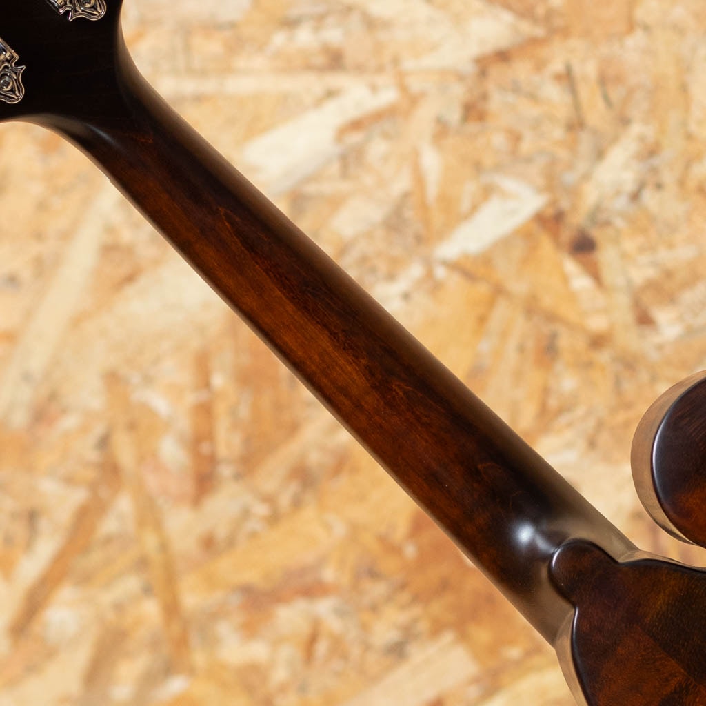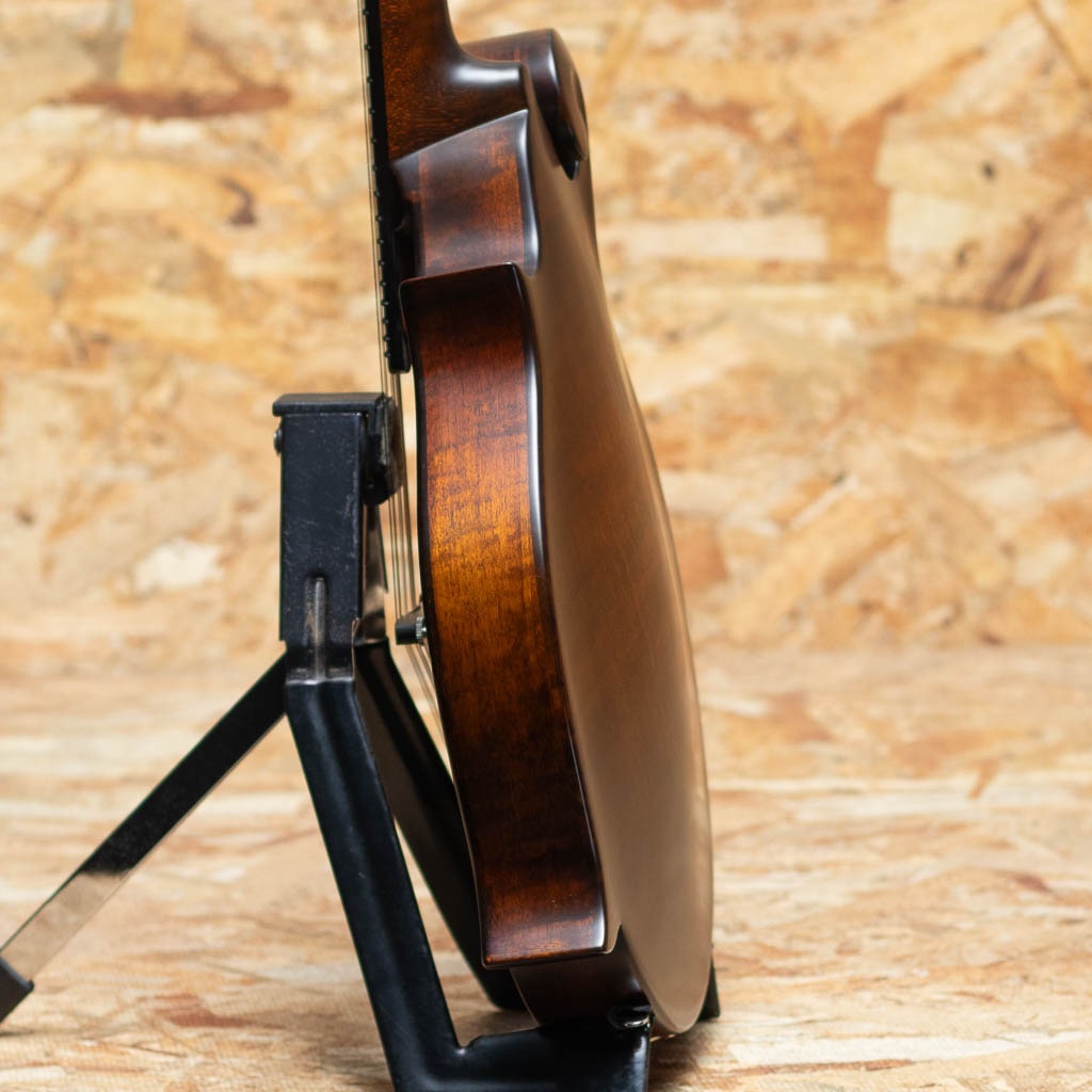 アメリカ本国にて大変人気のEastman Guitars。オール単板削り出しという音に拘るスペックをもちながらもリーズナブルな価格で人気のEastman Mandolin。こちらは”MD-515CC/N” 2022年製USED品。削り出しスプルース単板トップ、メイプルサイド、削り出しメイプルバック、メイプルネック、エボニー指板、指板はラディアスがついており演奏性抜群です。ボディーはノーバインディングでエッジを滑らかにラウンドされたコンタードコンフォート加工を施し、抱えた時の柔らかな当たりは非常になめらかで長時間の演奏でも苦になりません。塗装は薄いニスの様な質感がよい雰囲気を醸し出すマット仕上げです。極わずかな使用キズが見られる程度の使用感極薄のお買い得USED品!レスポンス感もよくFタイプならではのキレもよいフラットマンドリンです。Bourder Gig Case付属