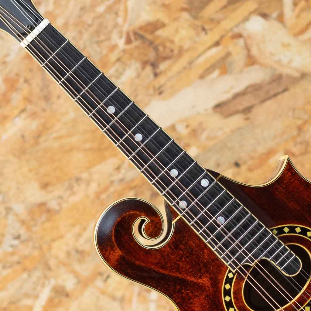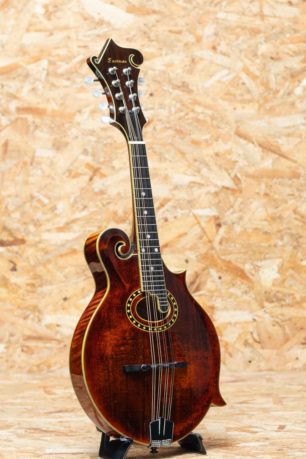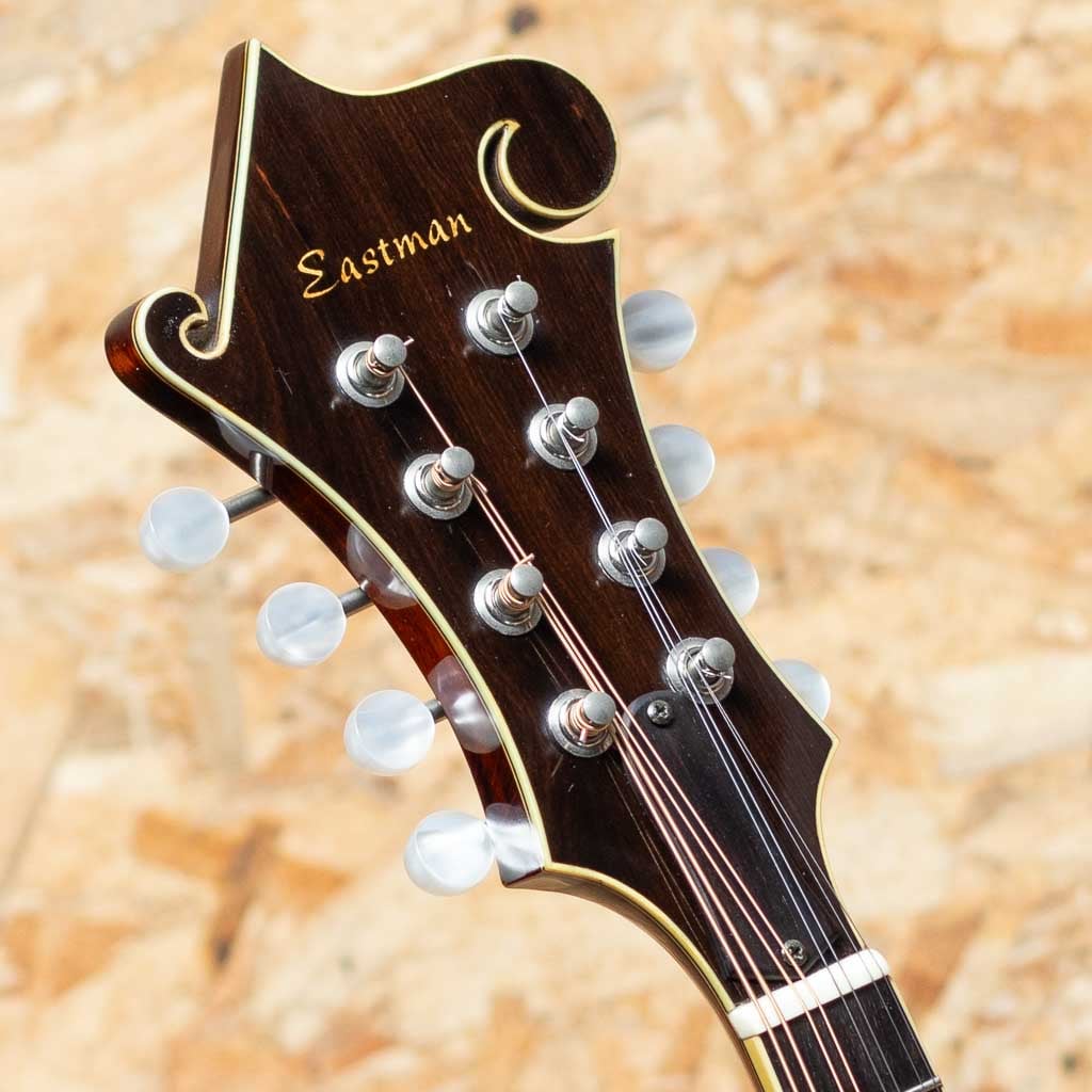 アメリカ本国にて大変人気のEastman Guitars。オール単板削り出しという音に拘るスペックをもちながらもリーズナブルな価格で人気のEastman Mandolin。こちらは”MD-814 A.Red” 2004年製USED品。Style-Fでオーバルホールをもつクラシカルなデザインのフラットマンドリンです。削り出しスプルース単板トップ、単板メイプルサイド、削り出しメイプルバック、メイプルネック、エボニー指板、エボニーアジャスタブルブリッジ、Eastmanオリジナルテールピースです。Eastmanの中でも上位グレードとなる814はボディー、指板、ヘッドにアイボロイドカラーのバインディング、指板にパールドットインレイを施している高級モデルです。全体的に細かなスレ、目立たない小キズなどは見られますが大きな目立つキズやダメージはありません。ネックコンディションも問題なく演奏製良好です。オーバルホールならではの柔らかで奥深い響きがフォーキーで心地よいモデルです。アイシッリュやフォーク、オールドタイミーな音楽とのマッチングがよいでしょう。Original Hard Case付属
