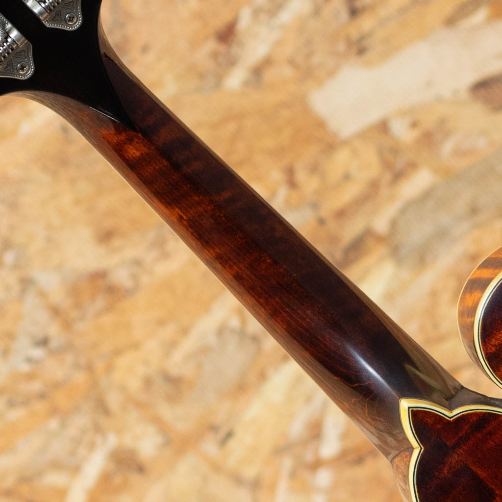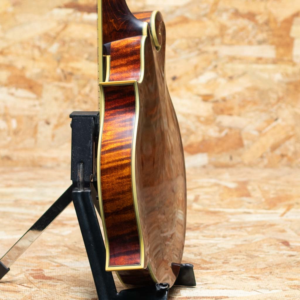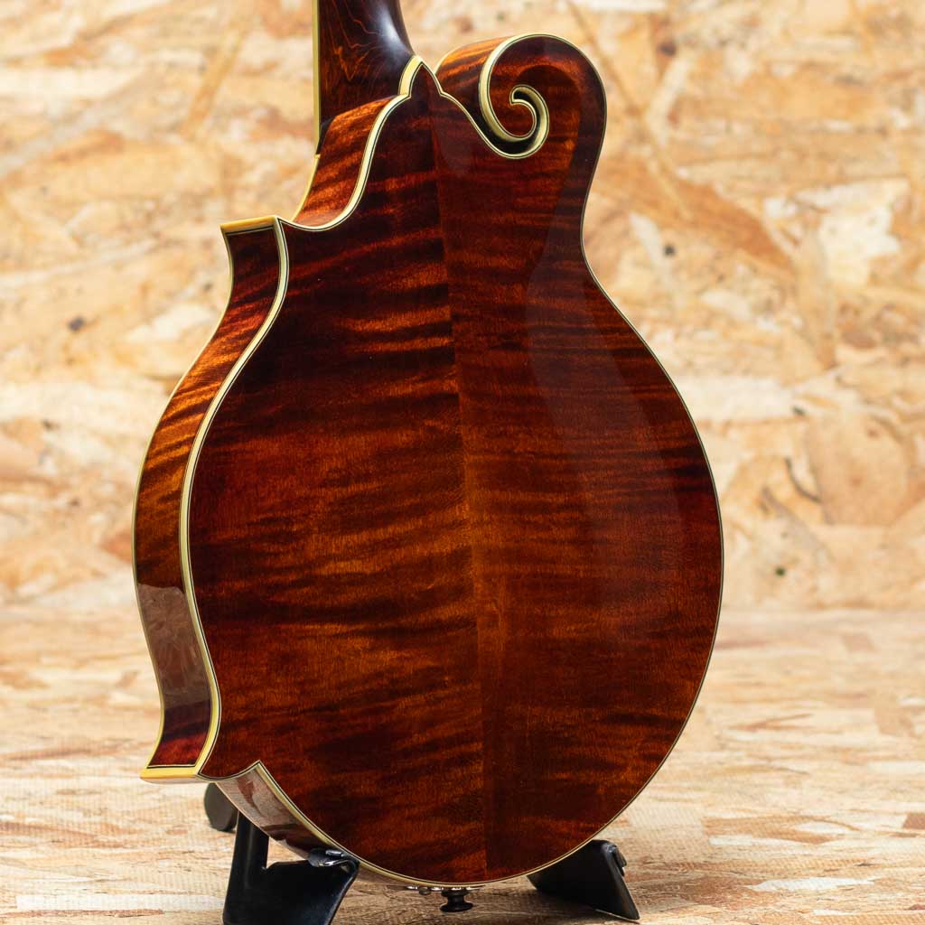 アメリカ本国にて大変人気のEastman Guitars。オール単板削り出しという音に拘るスペックをもちながらもリーズナブルな価格で人気のEastman Mandolin。こちらは”MD-814 A.Red” 2004年製USED品。Style-Fでオーバルホールをもつクラシカルなデザインのフラットマンドリンです。削り出しスプルース単板トップ、単板メイプルサイド、削り出しメイプルバック、メイプルネック、エボニー指板、エボニーアジャスタブルブリッジ、Eastmanオリジナルテールピースです。Eastmanの中でも上位グレードとなる814はボディー、指板、ヘッドにアイボロイドカラーのバインディング、指板にパールドットインレイを施している高級モデルです。全体的に細かなスレ、目立たない小キズなどは見られますが大きな目立つキズやダメージはありません。ネックコンディションも問題なく演奏製良好です。オーバルホールならではの柔らかで奥深い響きがフォーキーで心地よいモデルです。アイシッリュやフォーク、オールドタイミーな音楽とのマッチングがよいでしょう。Original Hard Case付属