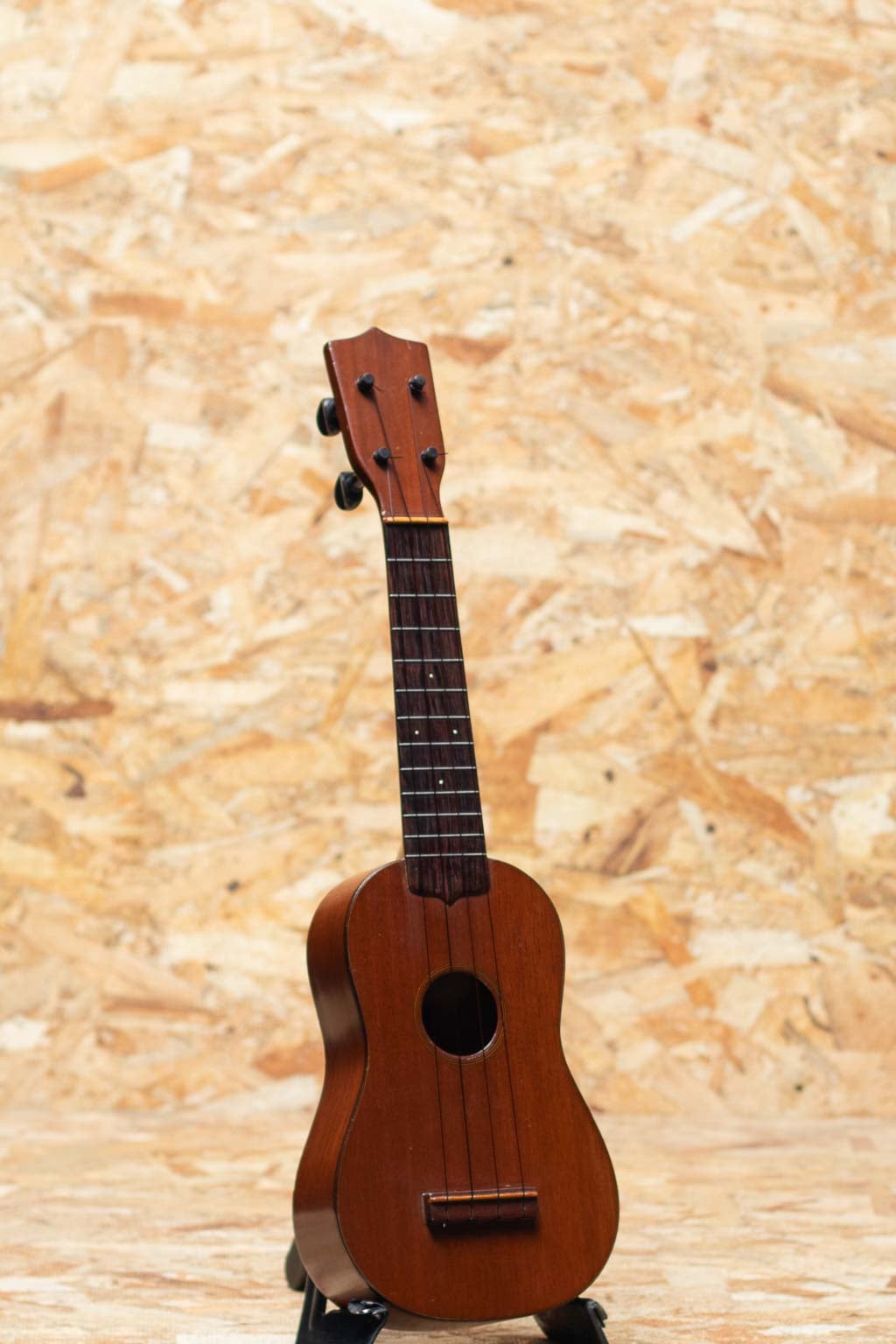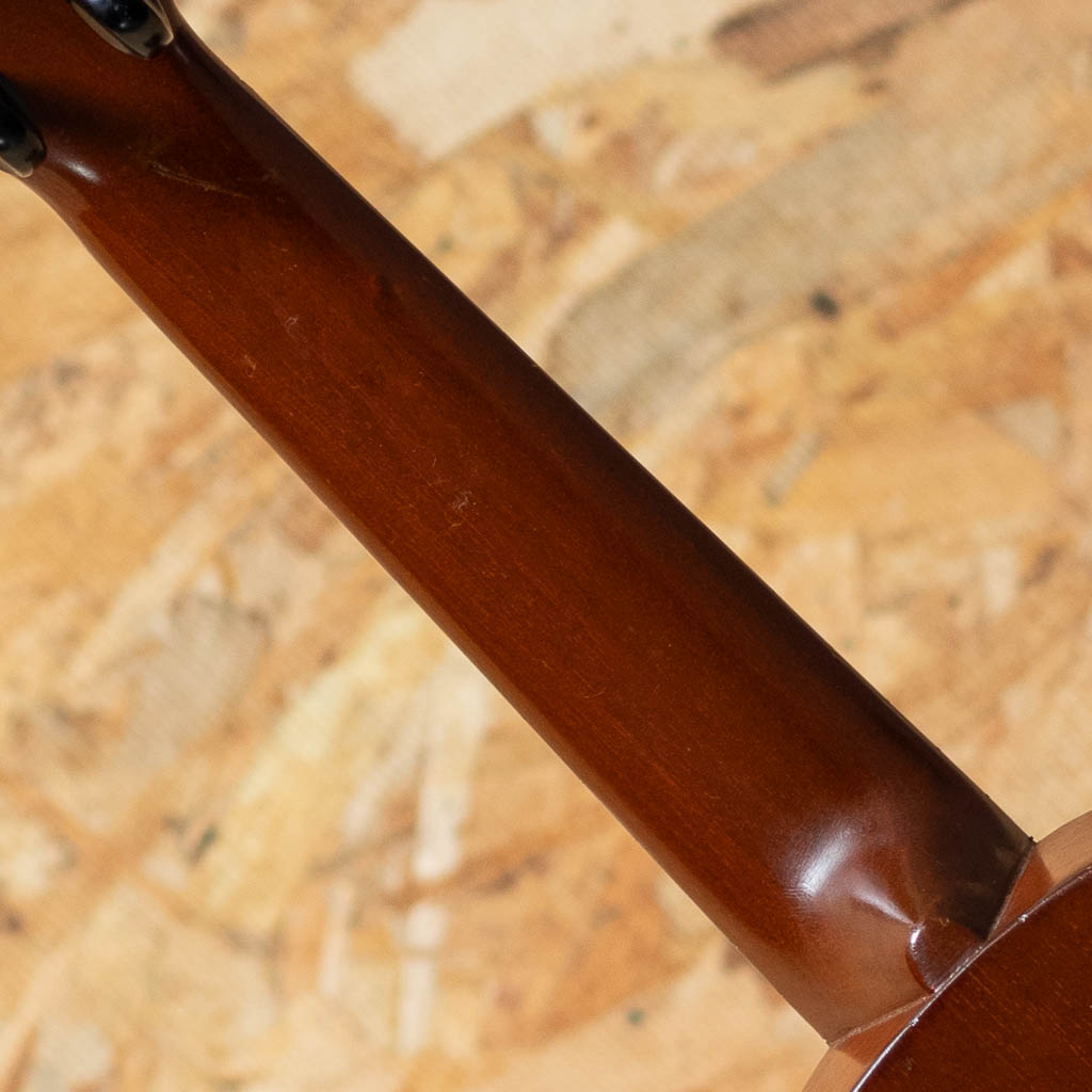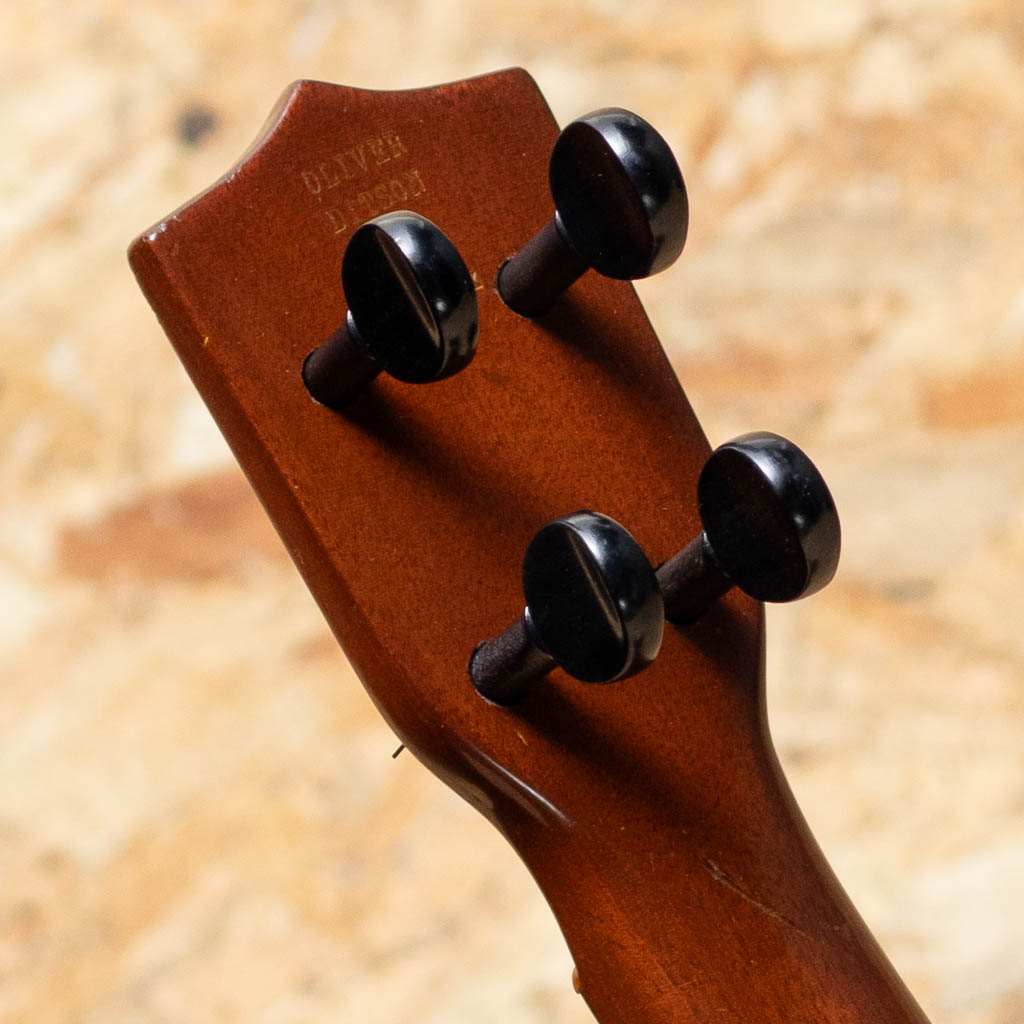 当時、ボストンのオリバー・ディットソンという出版会社の為にマーチン社が製作した"Style-1"。本器はニューヨーク支店でのみ取り扱われたドレッドノートシェイプの一本。1915年から1927年にかけて製作されたモデルですが、本個体はボディ内部にも刻印があることから、比較的初期の生産品と推測されます。マホガニーボディ、マホガニーネック、ハカランダ指板、マホガニーブリッジ。ドレッドノートシェイプのより広い音響空間から、美しく独特な音色を生み出します。糸巻きがバイオリン用に付け替えされているほか、トップ指板縁から3センチ、バックには7センチ強のクラック補修がございます。また、全体的にリフィニッシュがされていますが、既に経年を経たビンテージライクな雰囲気を漂わせています。ビンテージウクレレマニア向けコレクターズアイテム、ぜひご検討くださいませ。比較的新しいチップボードケースが付属いたします。