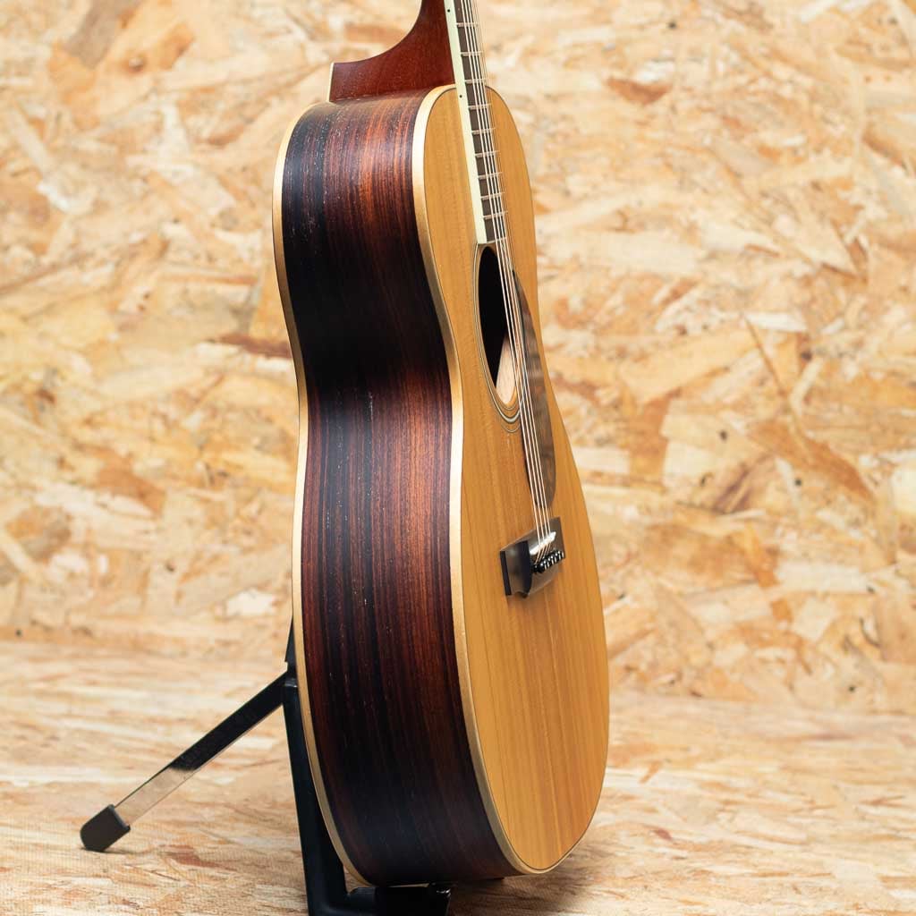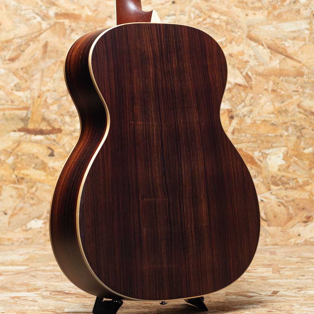 クラシックギターの製作家としてそのキャリアをスタートした"ジャン・ラリヴィー"。カナダにて成功をおさめ、現在はカリフォルニアに生産拠点を移し生産されています。本器はOMサイズの"OM-03 Rosewood"。華美な装飾を省いた、質感の良い艶消し仕上げのモデルです。スプルーストップ、ローズウッドサイド&バック、エボニー指板&ブリッジ、1ピースマホガニーネック、トップ構造はラリビー伝統の左右対称エックスブレイシングです。小ぶりながらもやや厚みをもたせたデザインでふくよかさとバランス感がうまくまとまっています。あらゆるジャンルでご使用頂けるオールラウンドモデルです。ボディトップ面に小さな打痕が見られる他、ネック、ヘッドに部分的な塗装の浮きが見られますが割れなどの目立ったダメージはなく、まだまだきれいな状態です。ネックの状態も良く、演奏性も良好です。オリジナルハードケース付属。