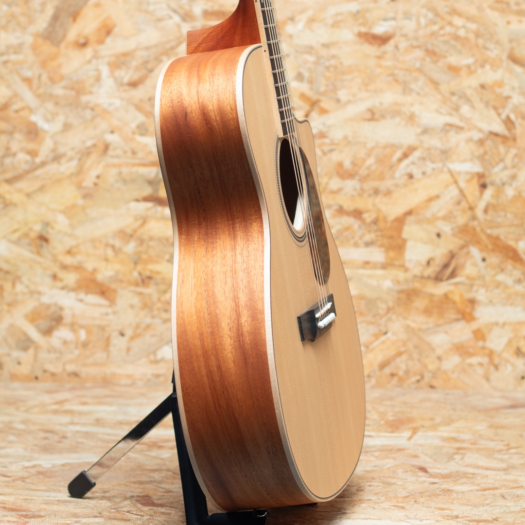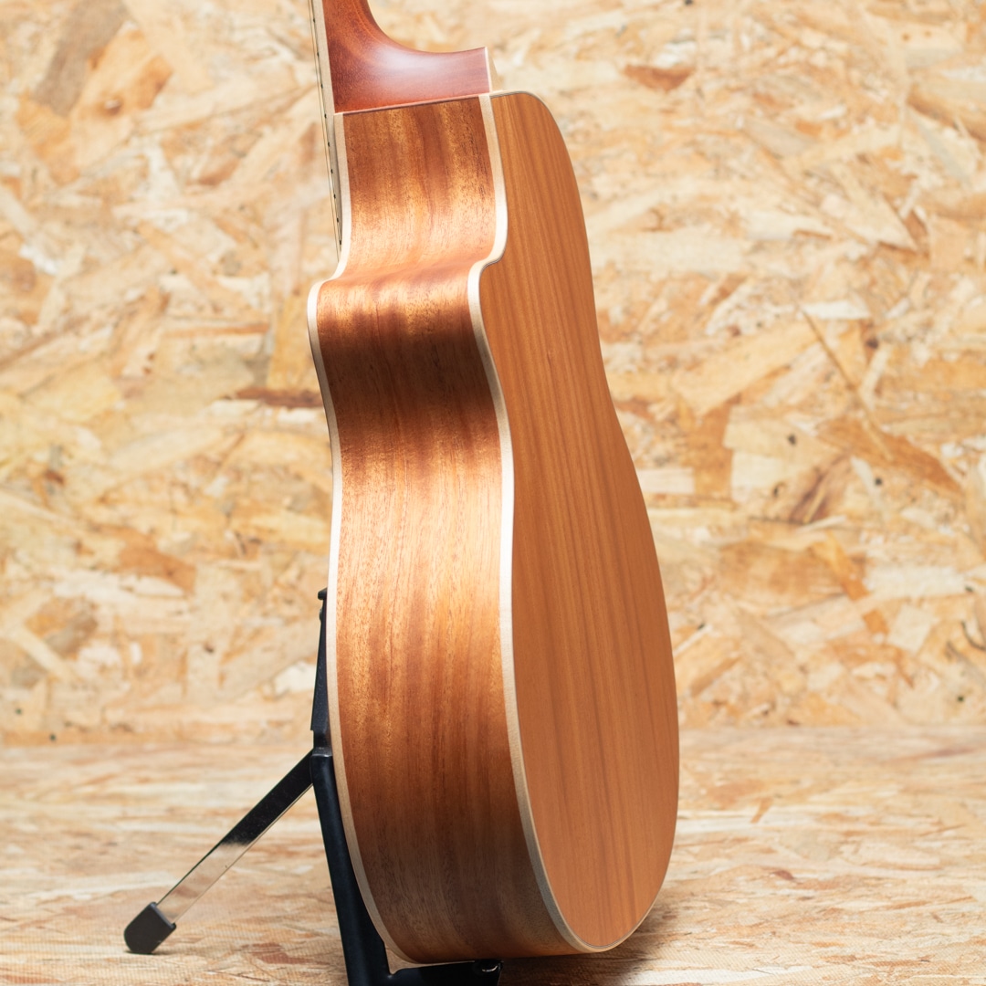 1967年、カナダのトロントにてジャンラリビー氏により創設されたブランド。クラシックギター製作を基礎とした革新的な構造で、70年代よりその地位を確固たるものとしました。また、妻のウェンディー氏による美しいインレイワークは高いデザイン性と彫刻技術でラリビー高級モデルの顔となっております。氏のルーツであるクラシックギターに根ざした力強くハッキリとした明瞭な音色は、他のアコースティックギターブランドとは一線を画すキャラクターを持ちます。本器はOMカッタウェイボディのオール・ソリッドの03マホガニーシリーズ”OMV-03”。スプルーストップ、マホガニーネック、エボニー指板&ブリッジ。ウッドバインディング、サテンフィニッシュと木の質感が感じられるモデルです。マホガニー材ですが深みがあり、軽めのタッチでも質量感のある十分な音量で立ち上がり、かつハイフレットまで伸びやかに、軽やかに響きます。カッタウェイ仕様でハイポジションの演奏性も良く広いスタイルでお使い頂けます。サウンド・クオリティーも妥協せず、バリューの高いモデルです。オリジナルハードケース付属です。