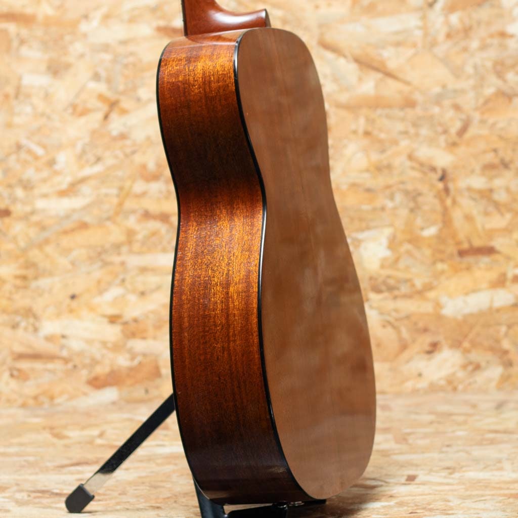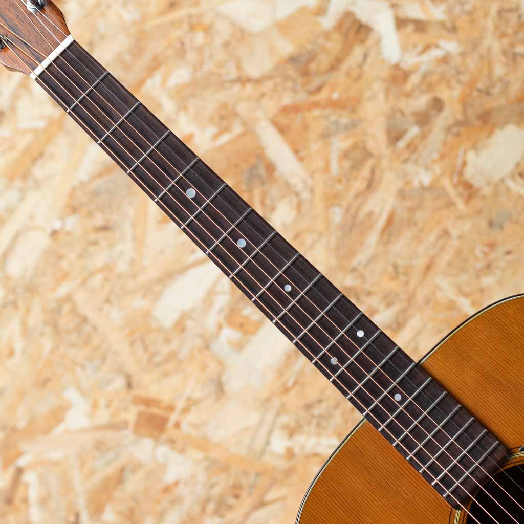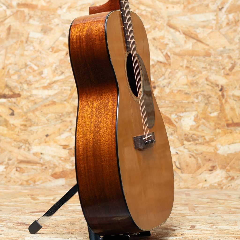 小さいボディでありながら深みのある澄みきったトーンを持つOOO-18。ドレッドノートに比べ程よく抑えられたロウはミッドハイのレンジが主役となり、ドレッドノートとはまた異なる秀逸なトーンを発揮する事が出来ます。本器はシリアル番号”256003”、1969年製のラストナンバー個体。スプルーストップ、マホガニーサイド&バック、マホガニーSQネック、ローズウッド指板&ブリッジ、パール指板ドット、ブラックピックガード(リプレイス)、パール指板ドット、ノンスキャロップドブレイシング。ペグはMartinロゴ入りのクロマチックシルバーペグへ交換、ネジ穴の補修が見られます。使用に伴う傷や打痕がある他、ボディサイドに二箇所クラック補修、全体的にリフィニッシュがされておりますが、塗膜は薄く仕上げており、60年代らしい軽やかで軽快なサウンド。レスポンス感に優れた軽やかな反応を示し、マホガニーらしいキレのよさ、柔らかでオーガニックなトーンがとても音楽的で、フィンガーピッキングで爪弾いてやるとその心地よい響きに癒やされます。ネックコンディションも良好で弾きやすくセットアップされておりハイポジションまでストレスなく鳴らす事ができます。SCHATTEN DESIGN HFN Artistピックアップが搭載されており、ライブや収録にも即戦力。サドルマージンもしっかりと残っており、今後の使用にも安心です。貴重なラストナンバー個体、ぜひご検討くださいませ。オリジナルハードケース付属。