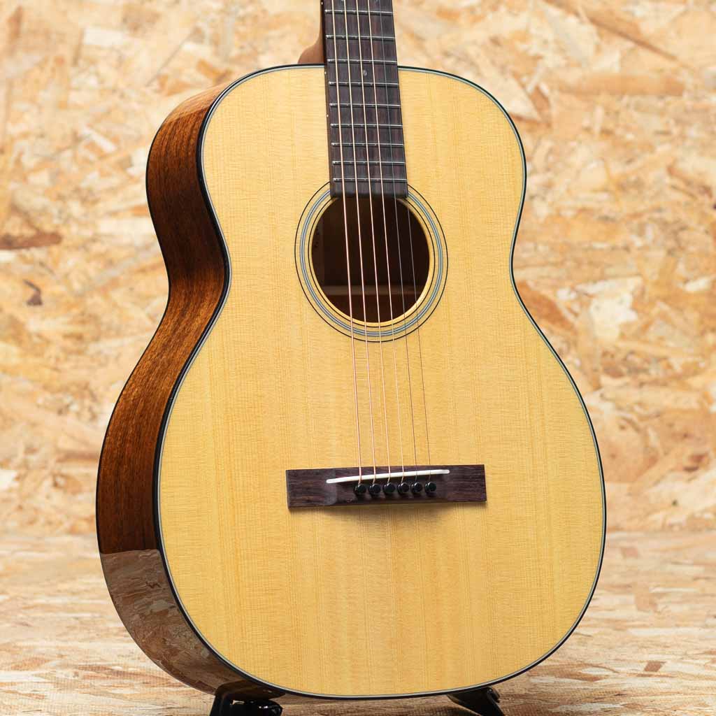 世界に一つだけのカスタムモデル!マーティンカスタムショップ製ギターとはマーティンファクトリー内のほんの一郭にて少数精鋭の熟練職人により手掛けられる超一級ギターのこと。オーセンティックシリーズや、特注品、一点モノのギターなどの生産がそれに当たります。本器はいわゆる4弦テナーギターを6弦仕様にカスマイズした個性的なカスタムモデル。シングルオーサイズとミニギターの中間ほどのボディサイズで、パワフルさを保ちながらも抜群の演奏性を発揮します。432mmスケールに、スタンダードテーパーのモディファイドローオーバルシェイプを採用した43mm幅ネック。通常サイズのギターから持ち替えてもネック周りの違和感は少なく、すぐに手に馴染んでくれるでしょう。シトカスプルーストップ、マホガニーサイド&バック、ローズウッド指板&ブリッジと、主なマテリアルは王道18スタイル。ノンスキャロップドXブレーシングを採用しており、重厚さ、堅牢さも備えています。現在レギュラーモデルに同サイズモデルはなく、カスタム品でしか手に入れることができない特別な1本。小ぶりなサイズで本格的なモデルをお探しの方におすすめです。オリジナルハードケース付き。
