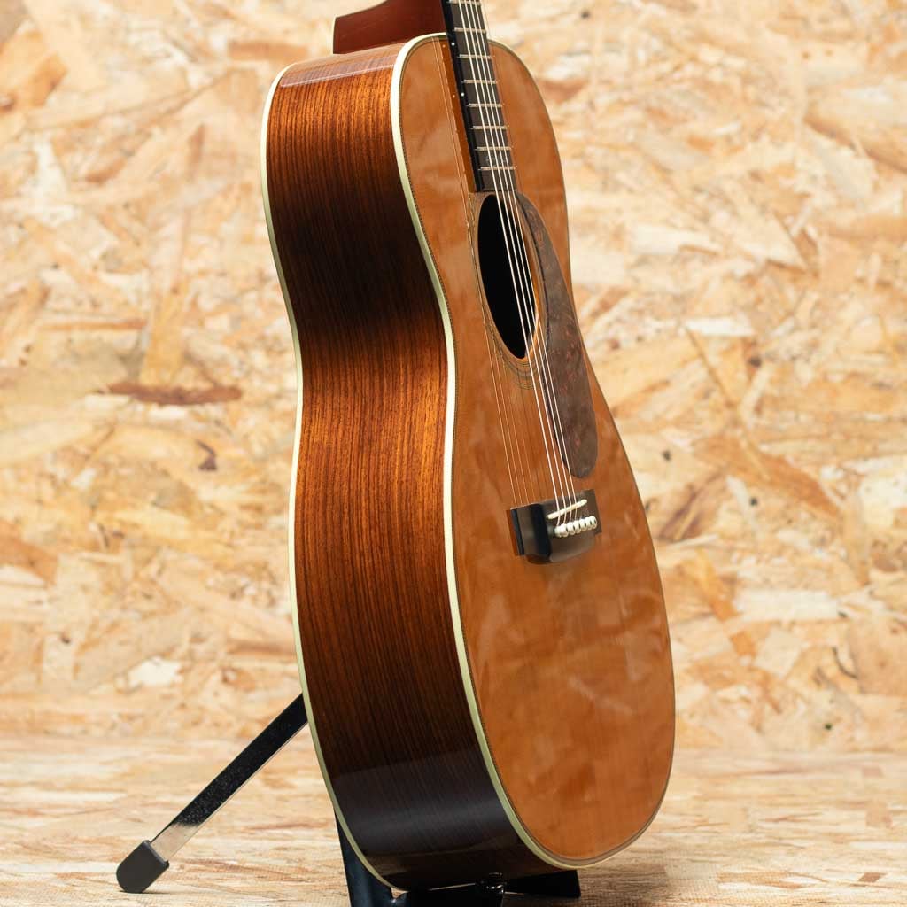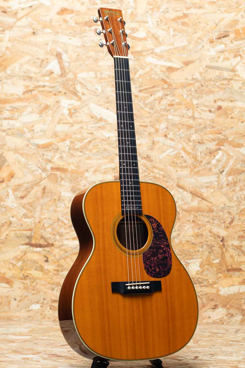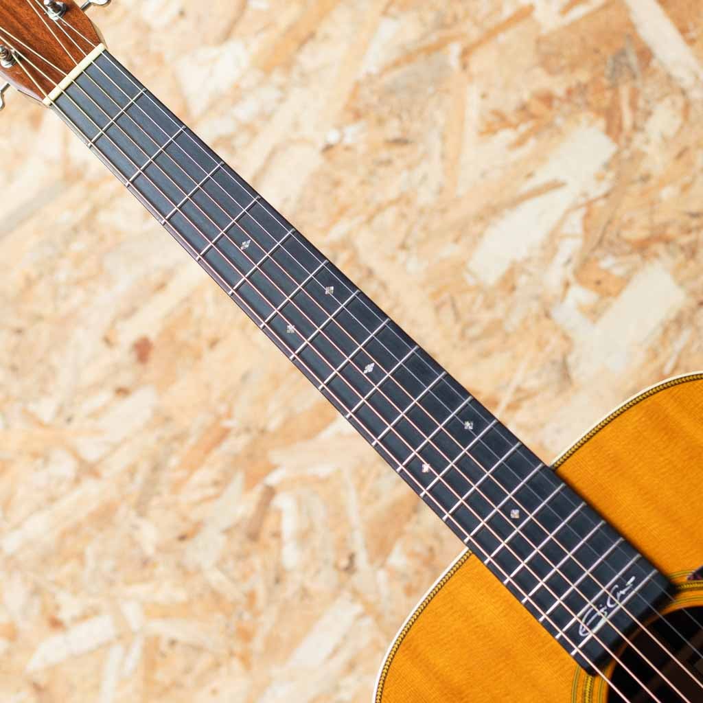 1833年よりアコースティックシーンの最前線を走り続ける老舗ブランドのマーティンギター。本器はエリック・クラプトンのシグネイチャ第二弾として1996年に発表された人気モデル”OOO-28EC”、2006年製USED品。シトカスプルーストップ、イーストインディアンローズウッドサイド&バック、マホガニーネック、エボニー指板&ブリッジ、オリジナルオープンバックペグ、ダイアモンド指板インレイ、オリジナルベッコウ柄ピックガード、ヘリンボーンロゼッタ&トリム、アイボロイドバインディング、ジグザグバックストリップ、スキャロップド・エックスブレイシング。現代のモデルながら、ビンテージライクなデザインが特長。アーティストモデルとしては驚くべき認知度を誇るモデルで、今やマーチンギターの中でもかなりポピュラーな機種となりました。温かみと広がりのある響きと、凛としてブライトなサウンド。ネックヒールとサイドの境目に極わずかに塗装の浮きがある他、軽微な使用感はあるものの、目立つような傷やダメージはありません。ネックコンディションも良好で快適な演奏性です。ピックではアルペジオからストロークまで、そして表現豊かなフィンガースタイルでも偏りなく使って頂けます。発売から30年以上経過した現在でも、根強く人気のあるモデルです。オリジナルハードケース付属
