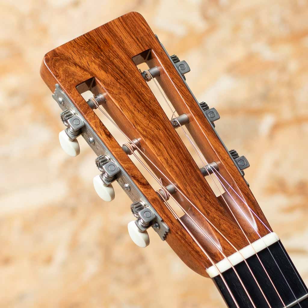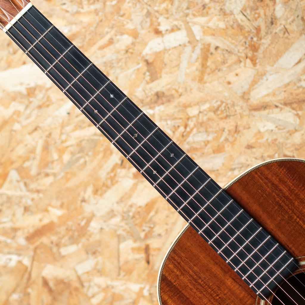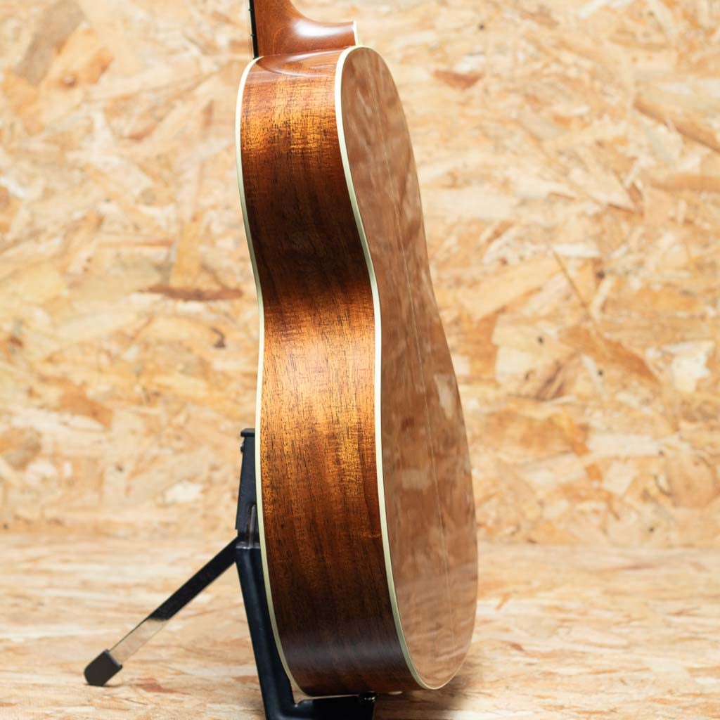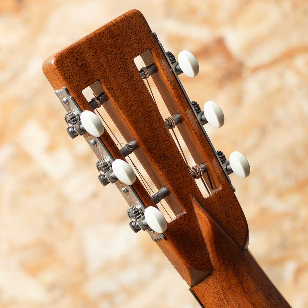 今までマーチンは数々の過去に存在した品番の復刻モデルを世に生み出してきました。中でもその完成度の高さから人気を博している『Authentic Series』。本器はハイグレードのコア材をボディの全面に使用した”000-28K Authentic 1921”2015極上USED品。マーティン本社に併設したギターミュージアムにある1921年製000-28Kに基づいて製作され、忠実に再現されたスロテッドヘッドは、マダガスカルローズウッドのヘッドプレートにロゴ無し、ヘッド角やボリュートのダイヤモンド等、拘りが詰まっております。接着にハイド・グルー(ニカワ)を用いて組み上げられ、ブレイシングにはアディロンダックスプルース材を使用(1921年頃風オリジナルスタンダードスキャロップドXブレイス)。弾けば振動の伝達の良さ、パワフルさが体感できます。12フレットジョイント、47.6ミリのワイドネック、補強芯にスティールTバーロッドの使用、サイドの割れ止めテープ、アンダーフィニッシュ仕上げのデルマー社製面取りべっ甲柄ピックガード、パターンの細かいファインヘリンボーンの縁取り、ピラミッドブリッジにロングサドル、経年変化したような色合いを出すエイジングトナーのフィニッシュ等、再現度のレベルも高いモデルです。バインディングハガレの修理跡がわずかに見られる程度で、その他光にかざしてかすかに見える程度の薄いキズが確認できる程度でほとんど使用感を感じない大変きれいなこの上ない状態。この小さなボディからは想像もできないほど奥行きのある響きを持ちコア材特有のブライトさやキレのよさを併せ持ちます。圧倒的に生産本数の少ない希少モデルとなっておりますのでお早めの検討をおすすめします。オリジナルハードケース付属