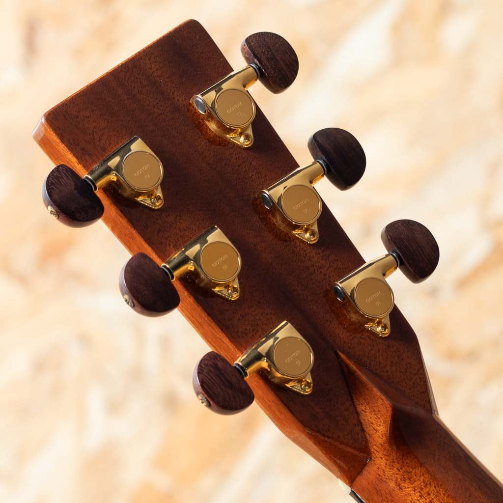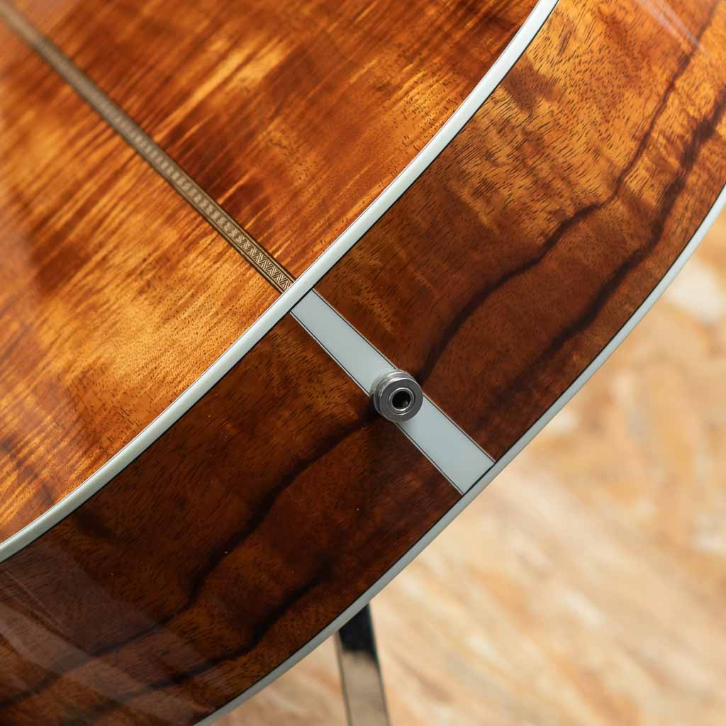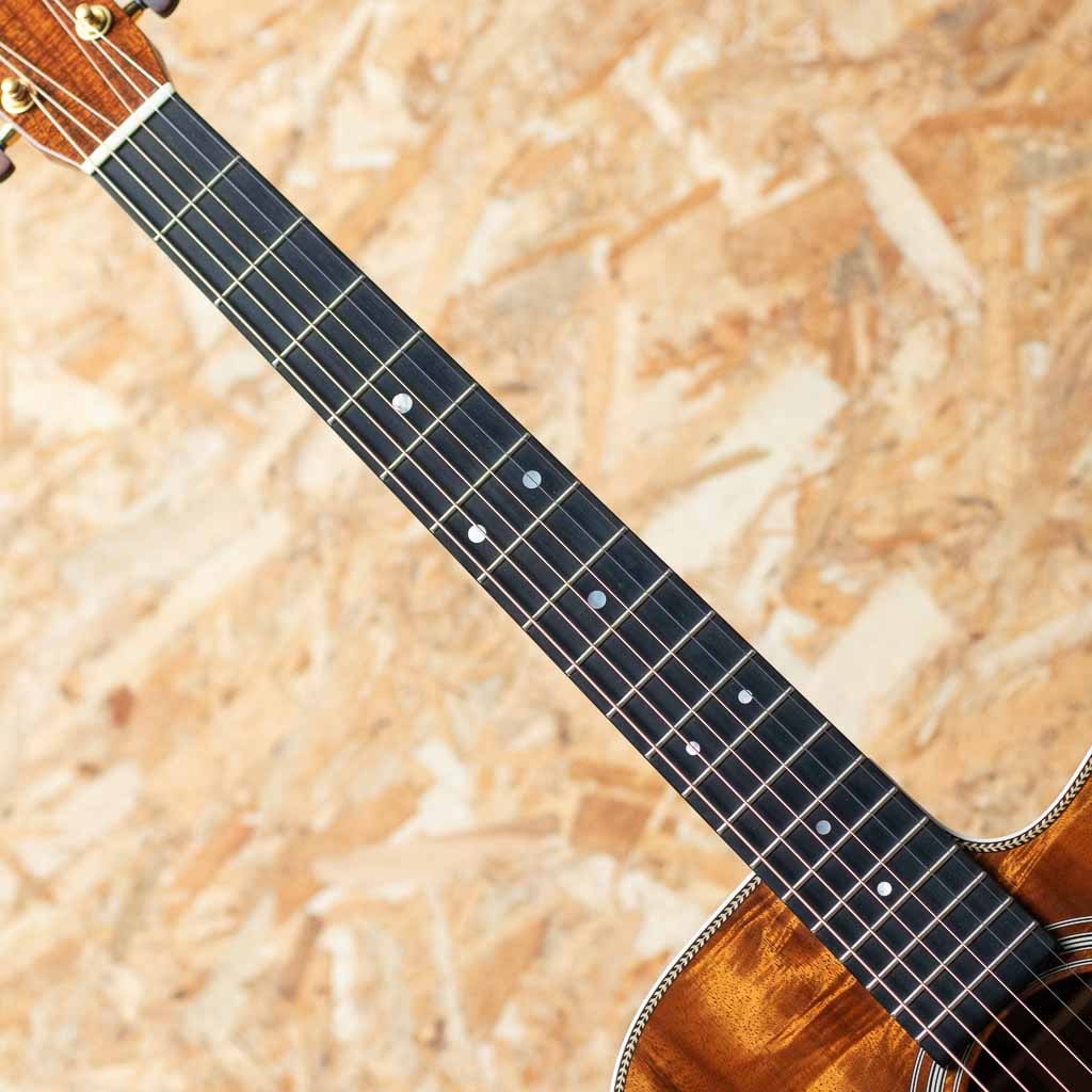 1833年よりアコースティックシーンの最前線を走り続ける老舗ブランドのマーティンギター。本器はOOO-28のカスタムモデル2015年製のUSED品。ボディには美しい杢の出たハイリーフィギャードコアが採用されています。ブラックエボニー指板&ブリッジ、ゴトーゴールドウッドノブペグ、オールドスタイルラージヘッドロゴ、パール指板ドットインレイ、ヘリンボーントリム、ジグザグバックストリップ、ベネチアンカッタウェイ、スキャロップブレイシング、FISHMAN Matrix Infinityピックアップ搭載。糸巻はオリジナルのグローバーロトマチックから交換されています。オールコア仕様ならではの、一音一音の輪郭が非常に明瞭な音像。乾いたブライトさがありながら、Martinらしい中低域のまとまりもあり、上品で芯があるサウンドを奏でます。バインディングに剥がれ補修がなされている他、全体的に小さな打痕やピックによる薄いスクラッチ傷などはあるものの、大きなダメージはありません。傷が目立ちにくいコアウッド仕様のため、全体的には比較的綺麗な外観といえるでしょう。ややトップ浮きはあるものの、ネックの状態は非常に良好で弦高もやや低めな設定。演奏性も良好です。近年ますます高騰しているハワイアンコアを贅沢に仕様した一本。ぜひご検討くださいませ。オリジナルハードケース付属。