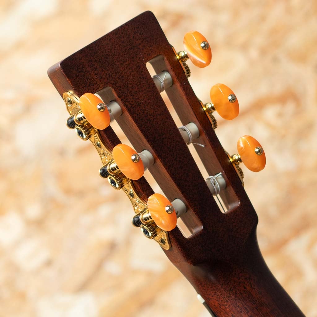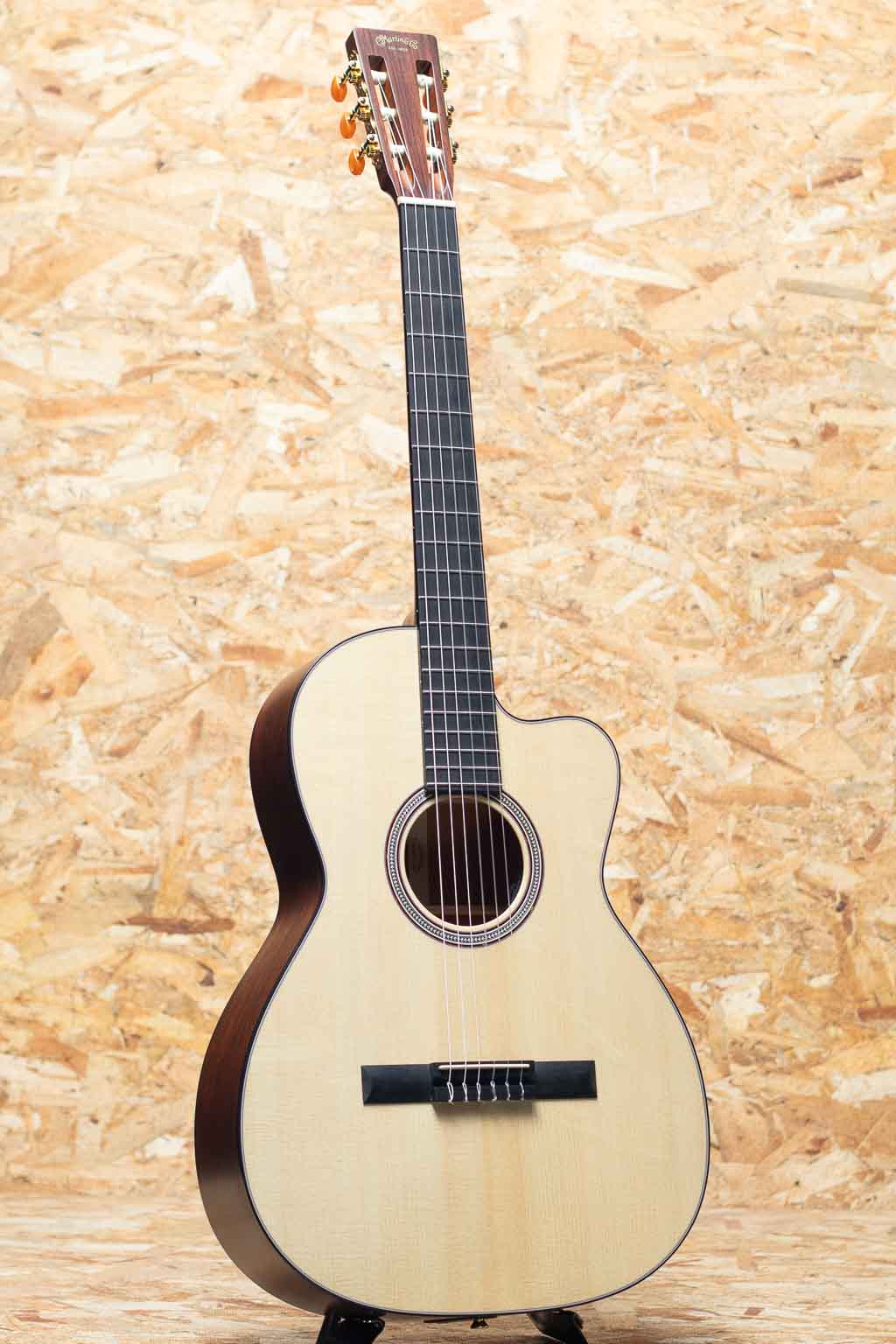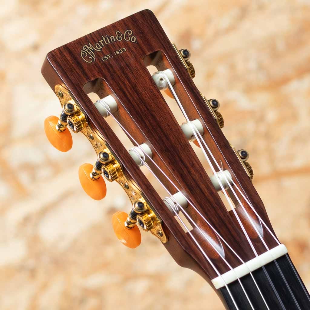 限られた種類の中でもトラディショナルに製造され続けられるマーティンナイロンストリングスモデル。一般的なクラシックギターとは異なり、コンサートホールで生音を大きく飛ばすようなベクトルではなく、スチール弦をナイロン弦に変えた感覚で使用出来るアイデンティティーを持ったマーティンらしいナイロンモデル。本器は人気のエレガットモデル"000C12-16E Nylon"。2023年製USED品。トップがグロスフィニッシュの仕様変更前のモデルです。スプルーストップ、マホガニーサイド&バック、エボニー指板&ブリッジ、Fishman Matrix VT Enhance NT1ピックアップ搭載。鉄弦からの持ち替えでも違和感なくプレイできるRのついた指板や薄く握りやすいネックシェイプ。一般的なクラシックギターよりも長いスケールでしっかりとしたテンションを持ちます。ピックアップにはFISHMAN社とMARTIN社の共同開発にて完成したアンダーサドル式アクティブPUを搭載。コントロールは3つだけとシンプルな操作感とボディーの箱鳴り感を再現したエンハンス機能の追加によりナチュラルでバランスの良いサウンドをアウトプットします。軽微な小傷や打痕は見られますが、あまり使用感は感じられず全体的にきれいなコンディションです。ステージやレコーディングでも即戦力としてお使い頂ける人気のマーチンエレガット。オリジナルギグケースが付属します。