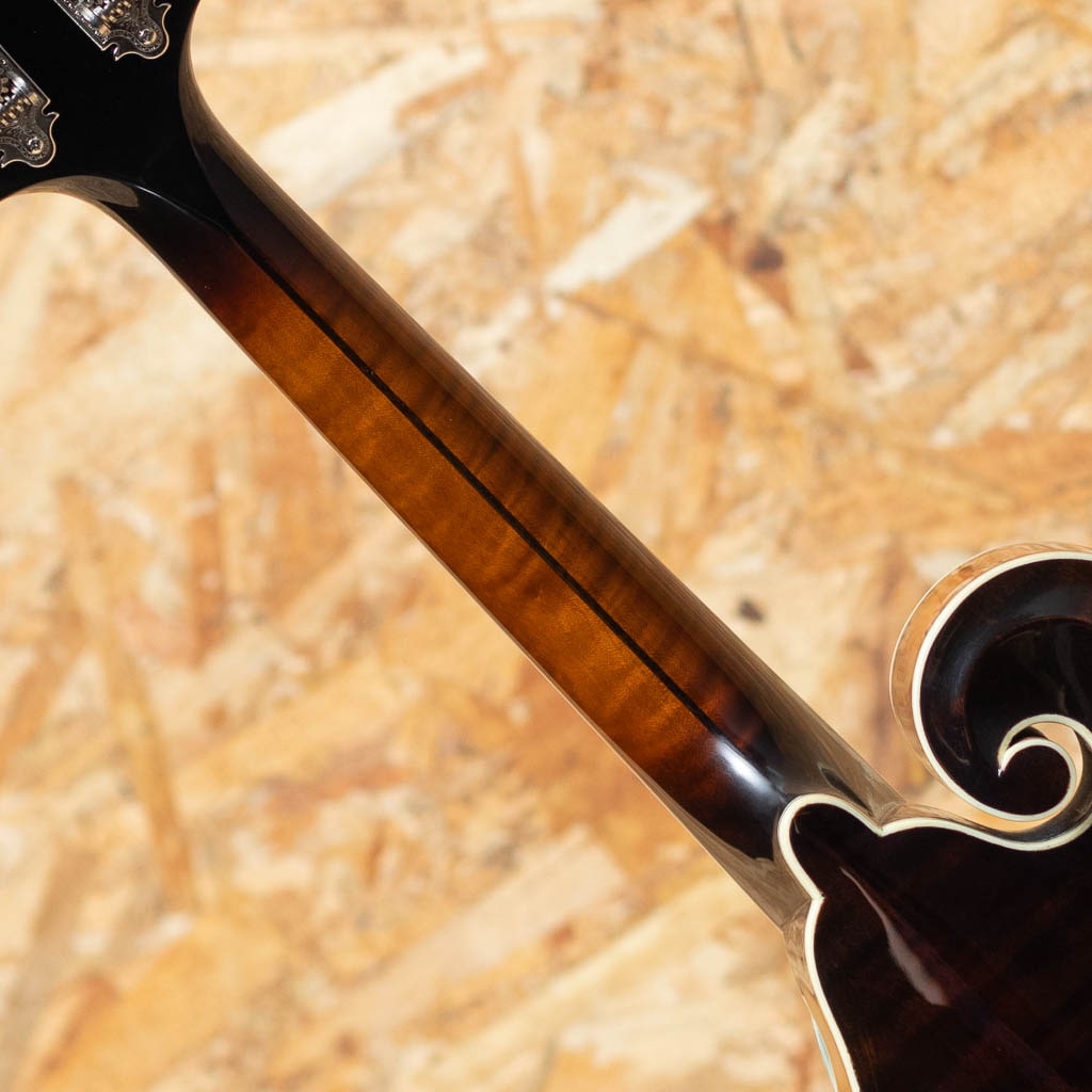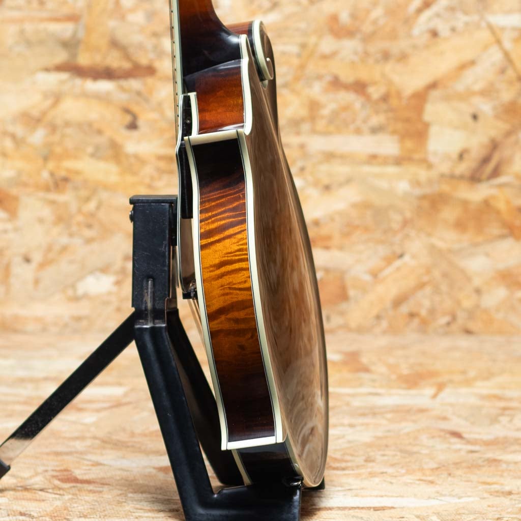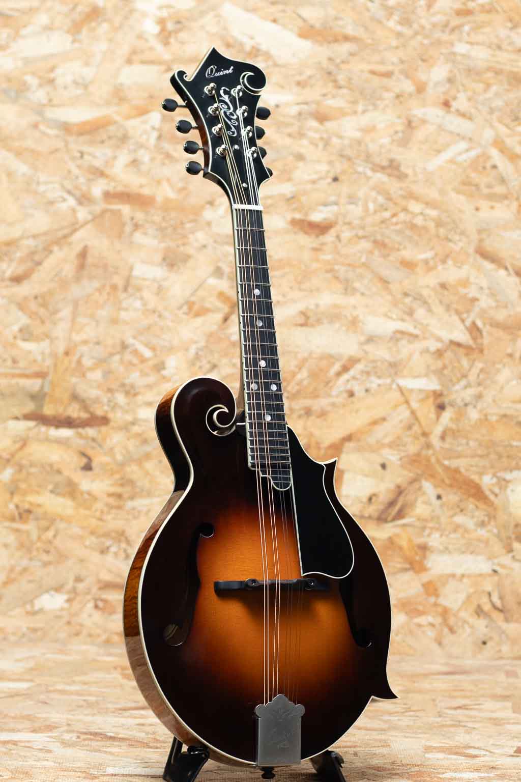 いくつかのメーカーで楽器製作を学び、その後North Field Mandolin立ち上げから製作に関わった後、2016年に独立する中国のMaster Luthier Qin Ji Duoが製作するQuint Mandolin。人気のF5モデルにトリファイド加工の施された材を使用したモデルが追加されました。トリファイドプレミアムイタリアンスプルーストップ、トリファイドプレミアムスイスタイガーメイプルバック、トリファイドタイガーメイプルネック、エボニー指板&ブリッジ、後藤ペグ、アイボロイドバインディング、Radius指板にミディアムフレット、指板エンドは短めで20fからスクープ加工が施されており抜群の操作性を誇ります。トリファイド加工をした材をボディーとネックに使用し、弾き込まれた個体の様なドライな音質となり、レスポンス感に優れ、美しい粒立ちの響きのするバージョンです。極薄のニトロセルロースラッカーフィニッシュからなる美しい艶感と引き締まった音像でブルーグラスはもちろん多様なジャンルで使えるおすすめのフラマンです。グラスファイバーケース付属