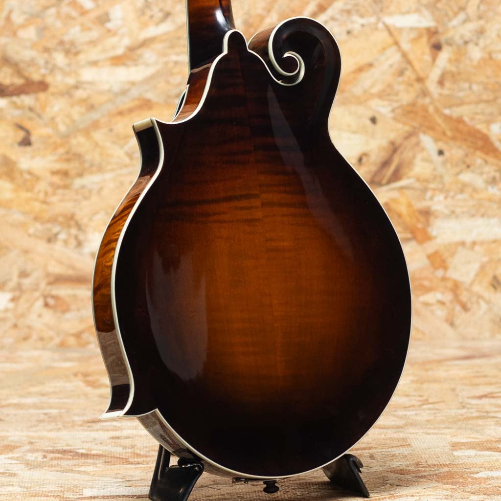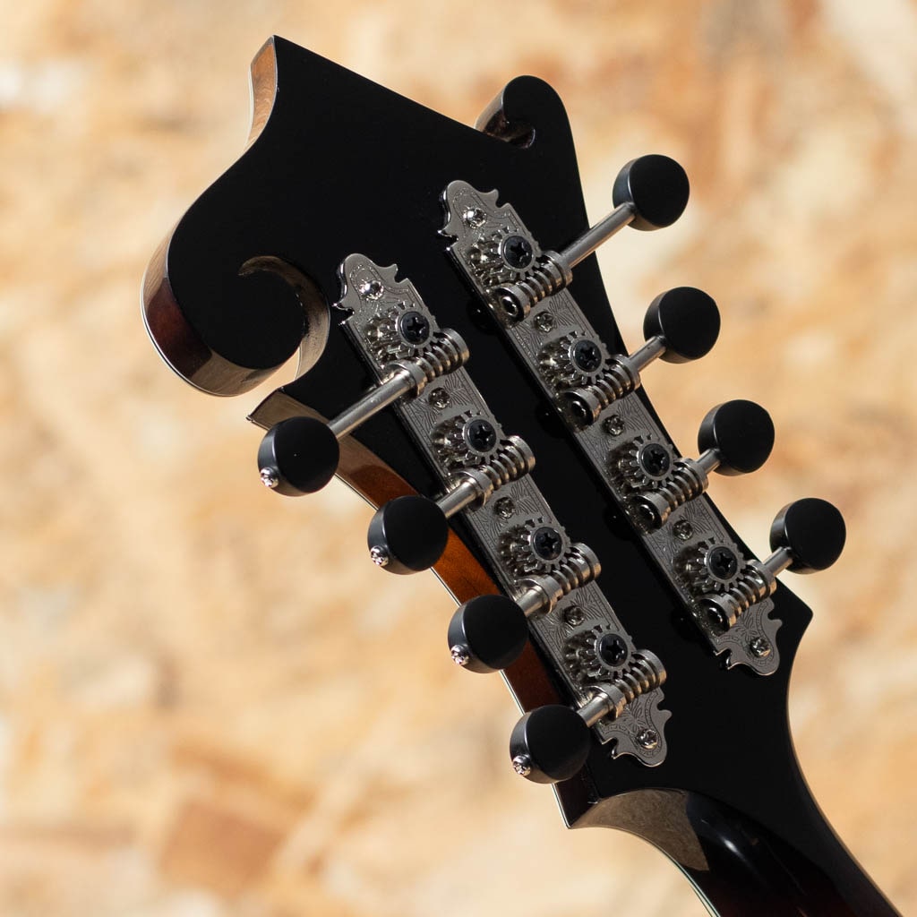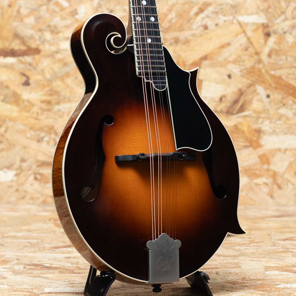 いくつかのメーカーで楽器製作を学び、その後North Field Mandolin立ち上げから製作に関わった後、2016年に独立する中国のMaster Luthier Qin Ji Duoが製作するQuint Mandolin。人気のF5モデルにトリファイド加工の施された材を使用したモデルが追加されました。トリファイドプレミアムイタリアンスプルーストップ、トリファイドプレミアムスイスタイガーメイプルバック、トリファイドタイガーメイプルネック、エボニー指板&ブリッジ、後藤ペグ、アイボロイドバインディング、Radius指板にミディアムフレット、指板エンドは短めで20fからスクープ加工が施されており抜群の操作性を誇ります。トリファイド加工をした材をボディーとネックに使用し、弾き込まれた個体の様なドライな音質となり、レスポンス感に優れ、美しい粒立ちの響きのするバージョンです。極薄のニトロセルロースラッカーフィニッシュからなる美しい艶感と引き締まった音像でブルーグラスはもちろん多様なジャンルで使えるおすすめのフラマンです。グラスファイバーケース付属