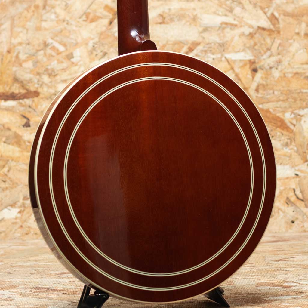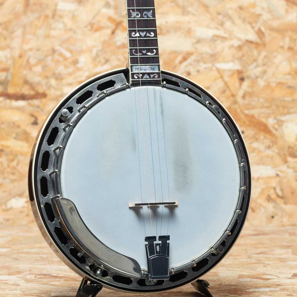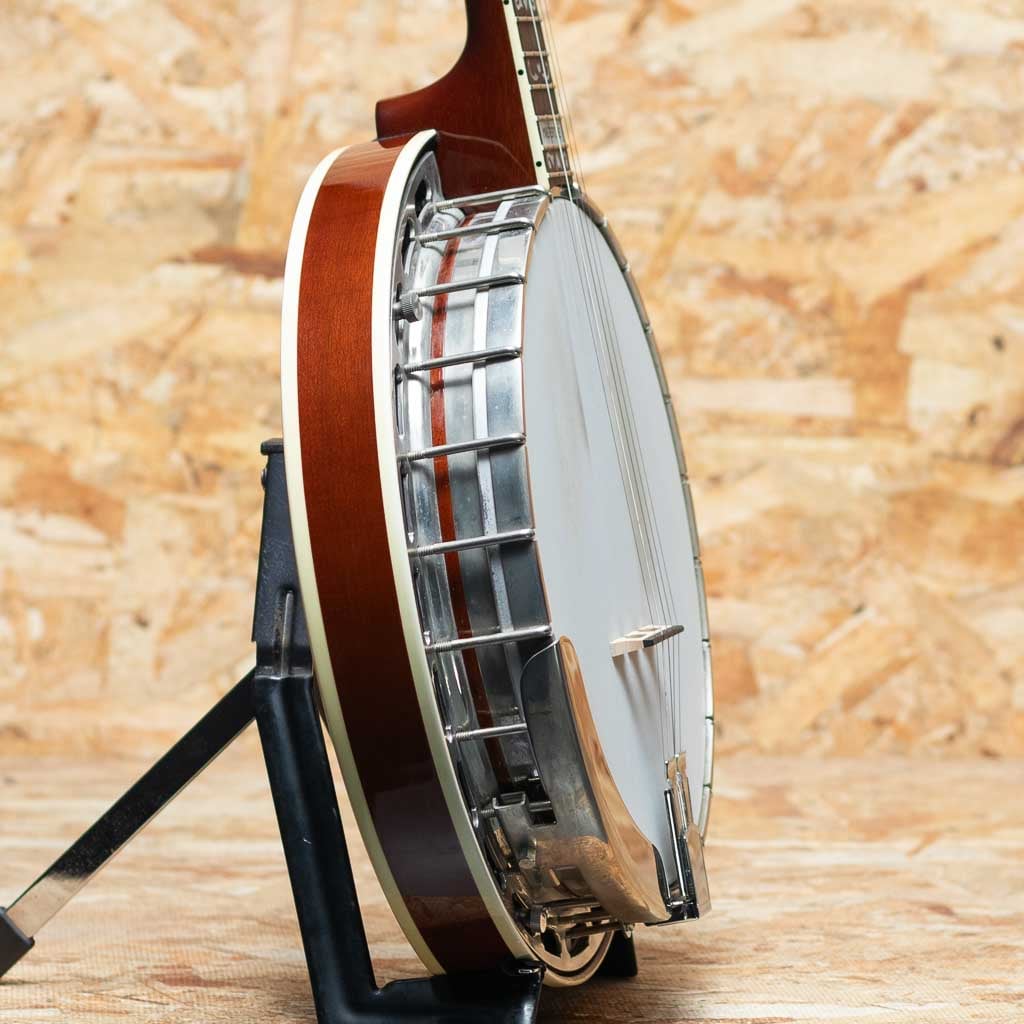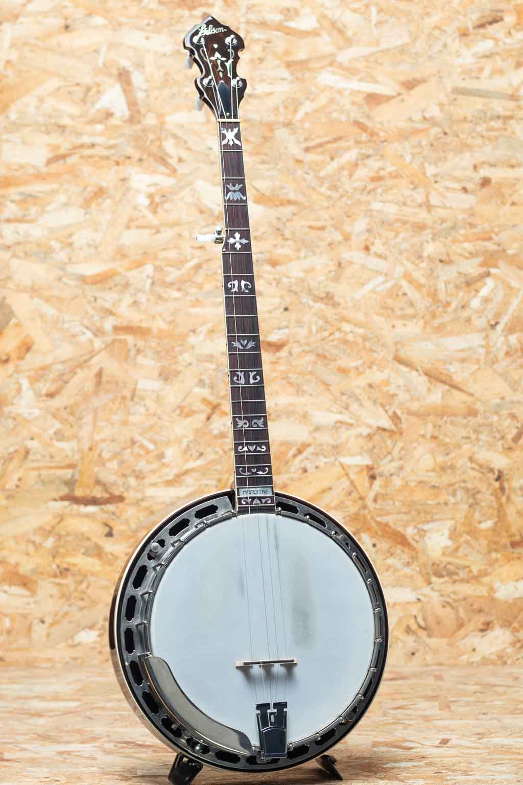 Don RenoはRed Smileyとの共演、バンジョーではシングル・ストリング奏法やジャズの影響を受けた独自の演奏スタイルを確立。フラットピッキングギターでは、ドック・ワトソン、クラレンス・ホワイトにも大きな影響を与えたと言われています。当器は”RB-3 Reno Style Inlay”Custom品 1990年製USED品。バンジョー弾きに知られる 'Greg Rich Era' と呼ばれるGreg Richが在籍していた1988-1993年にあたる人気の年代になります。マホガニーネック&リゾネーター、3ply メイプルリム、Gibson刻印入り20ホールオリジナルフラットヘッドトーンリング、ローズウッド指板にReno Style Flying Eagleインレイ、1ピースフランジ、ニッケルハードウェアー、7.9.10Fにスパイク。テールピースは近年のPrestへ交換済。ニッケルパーツ特有のくすやリゾネーター部の細かなキズなど見られます。軽やかなレスポンス感と柔らかなトーンで転がるような軽快さを楽しめます。現在ではGibson Banjoの生産もなくUSED品もなかなか出ません。定番のStyle-3、カスタムのフライングイーグルインレイがスタイリッシュです。しかもGreg Rich Era期の人気の年代です。お探しの方は是非お早めにご検討下さい。オリジナルハードケース付属