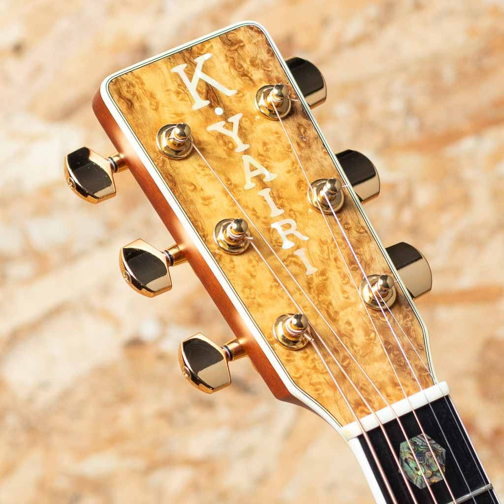 岐阜県の可児市の自社工場にて製造されるヤイリギター。工場の各セクションにはギターを熟知したスタッフがそろい、非常にクオリティーの高い楽器を作り続けています。木工精度などは非常に高く、購入後の割安の保証サービスなど国産ならではの安心感です。本器はヤイリギターオリジナルシェイプRFシェイプのカスタムモデルの2016年製USED品。スプルース単板トップ、きれいな杢のキルトメイプルサイド&バック、マホガニーネック、エボニー指板&ブリッジ。アバロントリム、ヘキサゴン指板インレイ、ヘッドの天神板はバーズアイメイプルが使用されており、パールの縦ロゴと高級感のある豪華なルックスとなっています。やわらかく、木のぬくもりを感じさせる優しい出音で、メイプルの甘いくやや太い音色も合わさり心地の良いサウンドです。細めのネックで握りやすく、小ぶり目なボディで抱えやすく扱いやすいモデルです。軽微なバインディングの焼けは見られますが大きく目立つ傷も見られず、使用感もあまり感じられないきれいなコンディションです。人気の国産ヤイリギター。見ていても楽しめるルックスの良いカスタムモデルのUSED品。オリジナルハードケースが付属です。