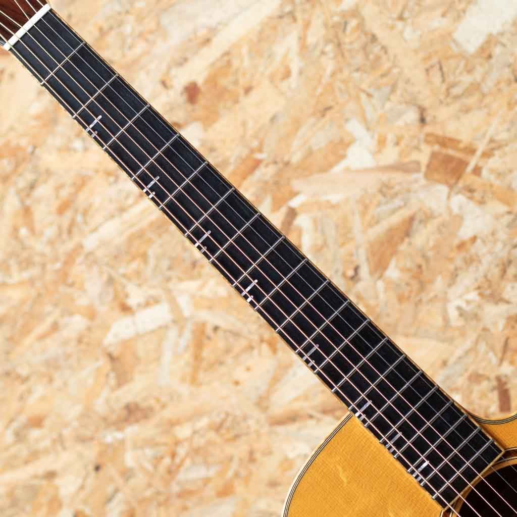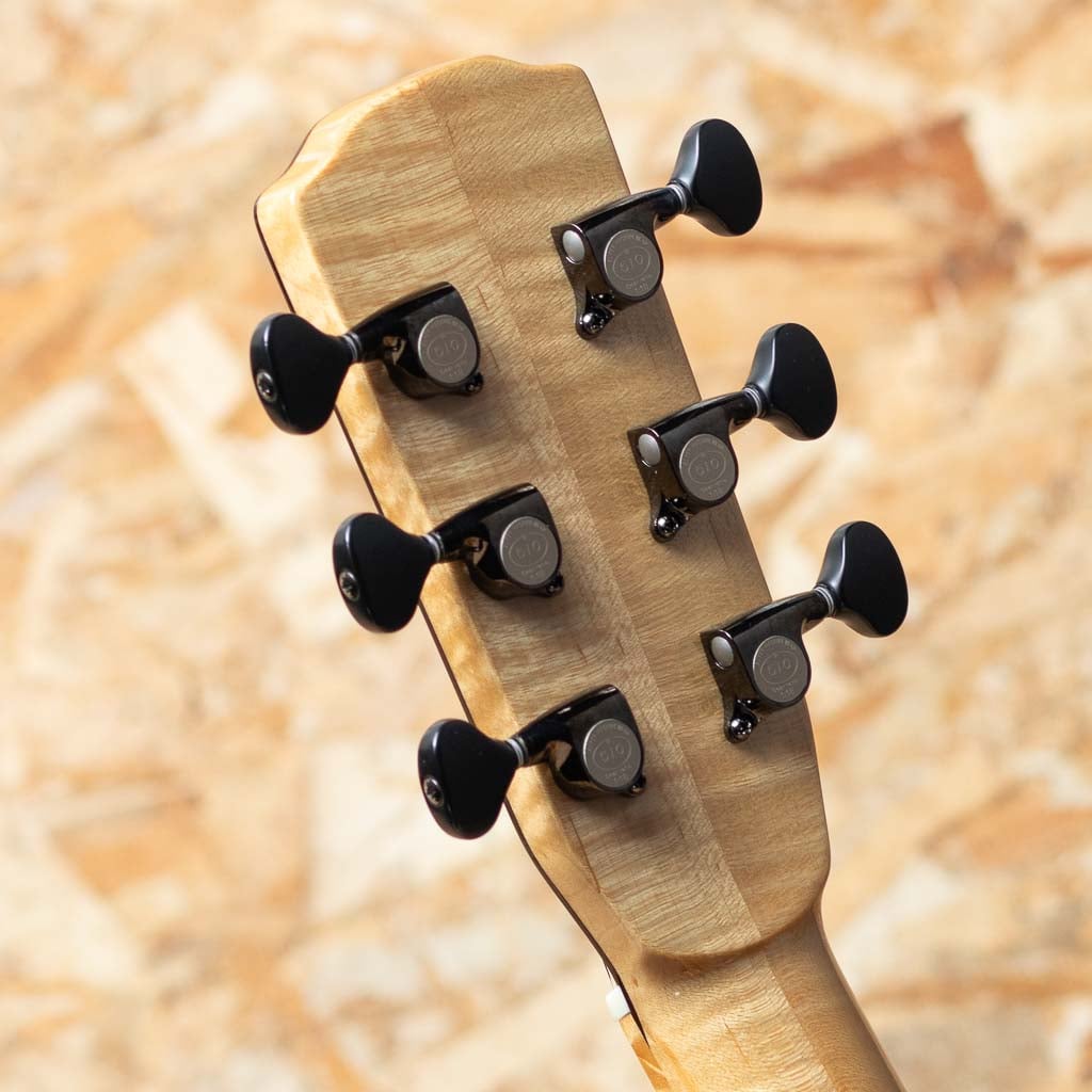 長野県松本市に工場を構えるモーリスギターは、国内を代表する老舗ブランドのひとつ。フィンガーピッキングでの使用で多くの人気を誇る"S"シリーズをはじめ、"マスタールシアー森中巧氏"が一貫した製作を行なった同社最高峰の完全手工モデル”LUTHIER MADE PREMIUM”シリーズまで多くの人気モデルを展開し、多くのミュージシャンも愛用しています。本器は美しい杢のメイプル材を使用した"S-143 Bevel"2013年製のUSED品。イングルマンスプルーストップ、キルテッドメイプルサイド&バック、カーリーメイプルネック、エボニー指板&ブリッジ。トップ構造はAXLブレイシング、バック構造はXブレイシングを採用しております。レスポンスの良い澄んだ透明感のあるクリアな音色で、奥行きのある立体感のある音を感じさせながらも、1弦1弦の張りのある弦の力強さ、軽快な音の立ち上がりが上手く表現出来ている様に感じます。演奏者の肘と胴があたる部分にコンター加工が施されており、演奏性も抜群です。細かな小傷・打痕は見られますが比較的使用感も少なくきれいなコンディションが保たれております。高次元の精度、デザイン性、演奏性を備えたマスタールシアーが手掛ける1本。オリジナルハードケース付属です。
