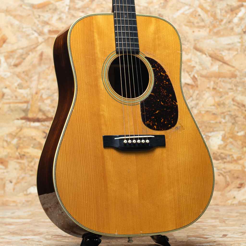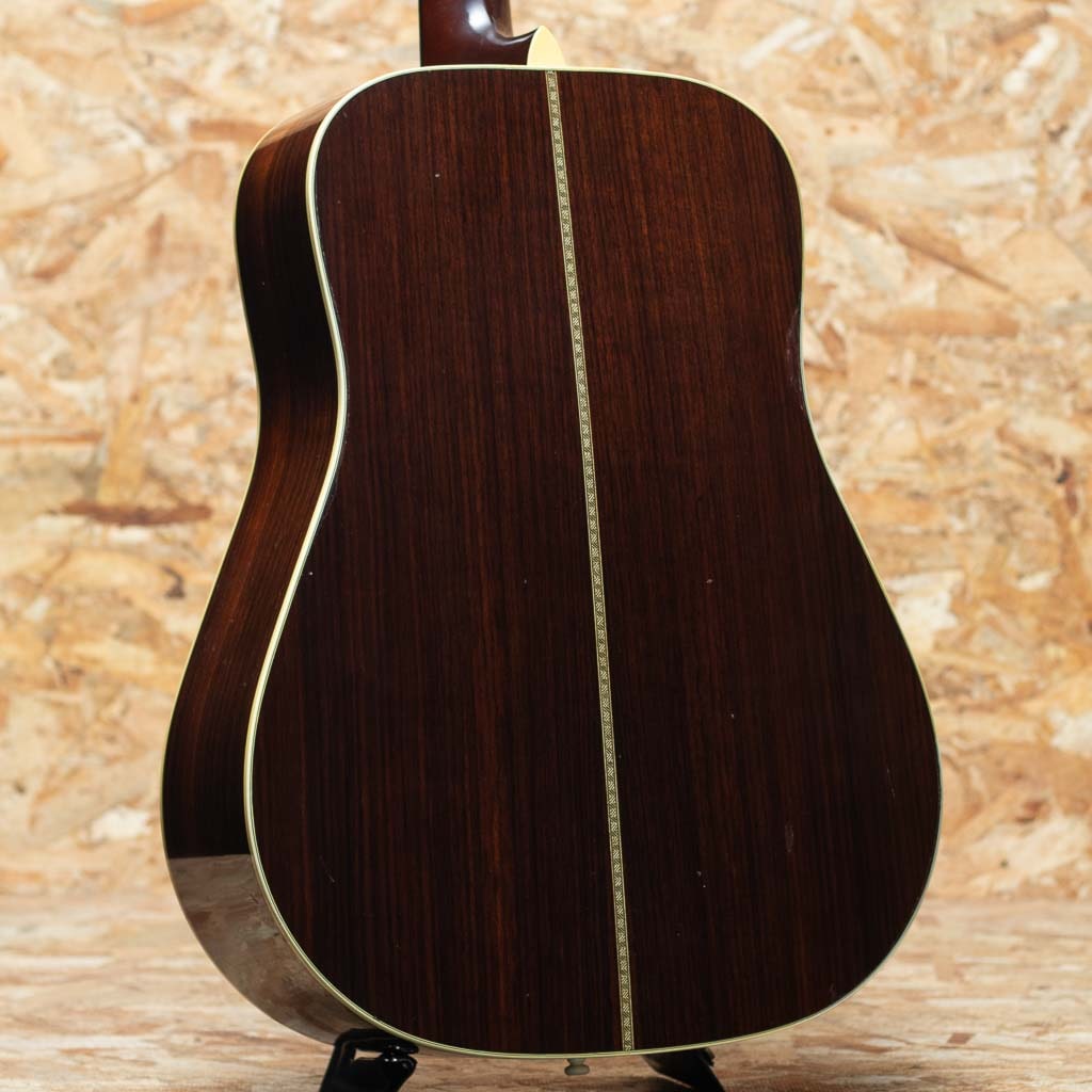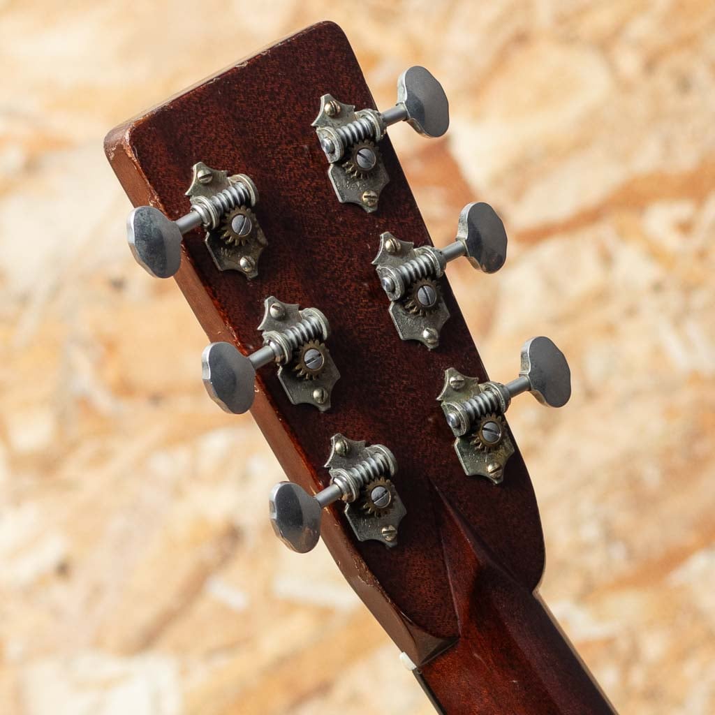 国内有数のベテランルシアー、エム・シオザキ弦楽器工房の塩崎雅亮氏が率いるシーガルギター。氏がもっとも得意とするプリウォーマーチンスタイルを元に製作され、新品のコンディションとプレイアビリティを持ちつつ、ヴィンテージさながらサウンドとルックスを備えた"Aged Series"。本器は"SD-60 1940 Aged TA/IR/A03"USED品。トリファイド加工が施されたアディロンダックスプルースをトップとブレーシングに採用、サイド&バックにはインディアンローズウッドを使用。ワンピースマホガニーネック、エボニー指板&ブリッジ、ロングサドル、 Waverly#4076レリックオープンバックペグ、ダイアモンドスクエア指板インレイ、セルロイド流し込みべっ甲柄ピックガード、ヘリンボーントリム、アイボロイドバインディング、ジグザグバックストリップ、トップ構造は軽快でありながらディープ&シリアスな音色をもたらすリアシフトスキャロップブレイシングとなっており、他に類を見ないクオリティで1940年仕様を再現。ヴィンテージのサウンドを再現する為、サウンドのコアとなるトップ材とブレイシング材にトリファイド加工が施され、また実際のヴィンテージ材に極めて近い材質感のものが使用されています。設計・ボイシングももちろんヴィンテージ同様の構造を採用。サウンドの要であるトップとバック、ブレイシングの加工作業は塩崎氏自らが手がけております。エイジド加工のレベルは最大の03。長年弾き込まれたかの様な弾き傷や磨耗傷、塗装の剥がれも見られ、使用感と塗装チェッキング・艶加減がリアルな仕上がりです。また、指板エッジやブリッジエッジも弾き込まれて磨耗したかの様な質感に仕上げられています。サウンド、ルックスともに異次元のクオリティ。USED品ですが使用によるキズは特に見られず、ネックの状態含めプレイコンディションも良好です。オールドマーチンをお好きな方にももちろん、全ての方にお勧めしたい1本。オリジナルハードケース付属です。