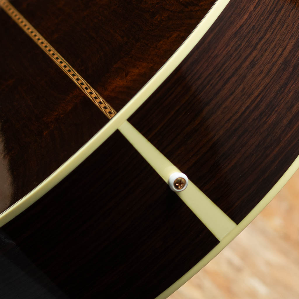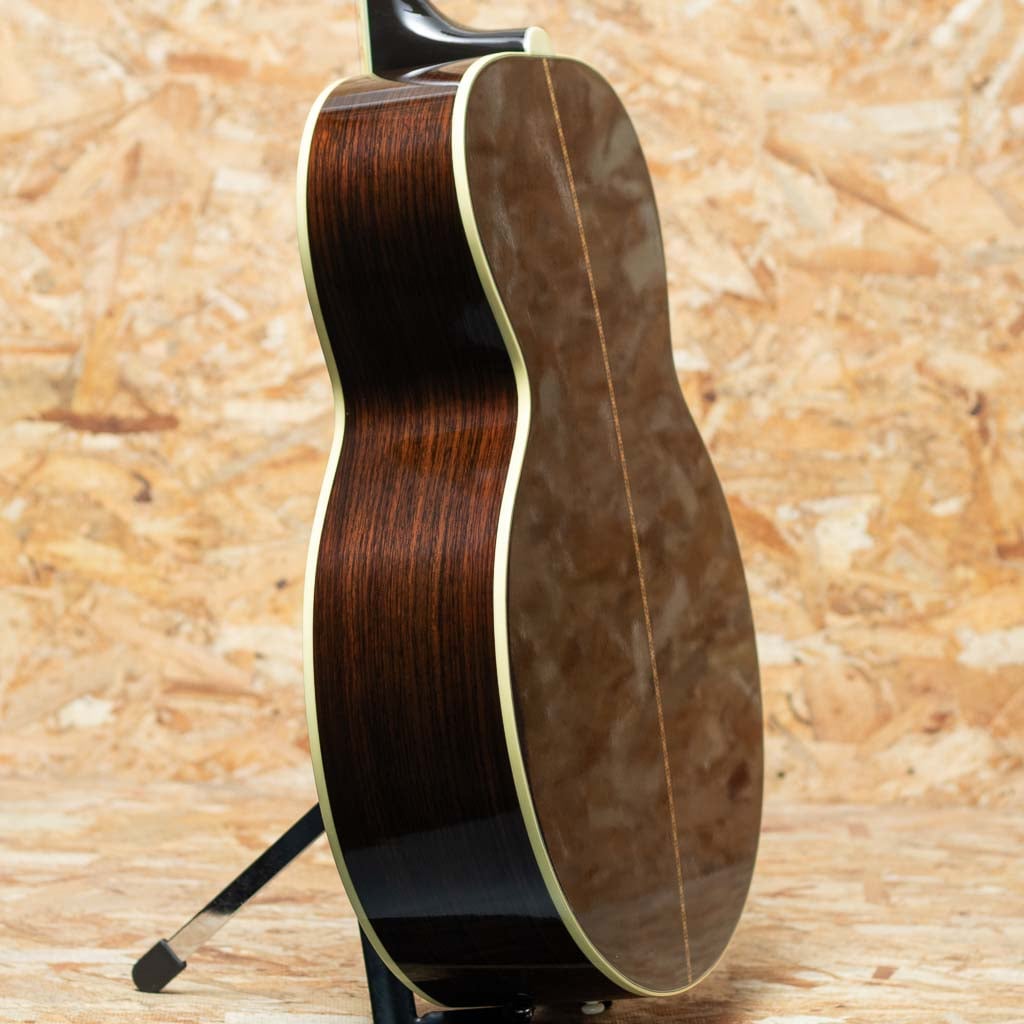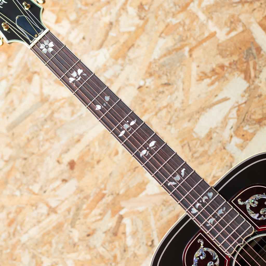 フォーク界の巨匠ボブ・ディラン。アメリカンミュージックにおける伝統の中でも数々の著名アーティストに強い影響を与えたもっとも影響力のある人物のひとりです。本器は2015年から2016年にかけて、限定175本のみ生産されたシグネイチャーモデル”THE SJ-200 Autographed Bob Dylan Collector's Edition”。2015年製USED品。サウンドホールラベル上では、ボブ・ディラン氏ご本人によるサインがなされており、ヘッドブロック上では通し番号が打たれており、本器は92番目にあたります。1962年のレコードデビュー以来半世紀にわたり、数々の名曲・名演を世に送り続けてきた氏がギブソンと数年の打合せを経て実現した一本です。3Aグレードのシトカスプルーストップ、ハンドセレクトされた杢の美しいフィガード インディアンローズウッドサイド&バック、2PCメイプル/ローズウッドネック、ローズウッド指板&ローズウッドマスターシュブリッジ、花の咲き加減をモチーフにしたMOPクレスト指板インレイ、アバロンの葉を象嵌したダブルピックガード、1930年代のレイ・ウィットリーのスタイルのセルバインディング。マザー・オブ・パールが埋め込まれたア―ティストの“eye”ロゴを擁しています。経年によりピックガードに起伏が出ておりますが、使用には問題ございません。目立つような傷や使用感もないコレクター垂涎の一本、ぜひご検討くださいませ。オリジナルハードケースが付属いたします。