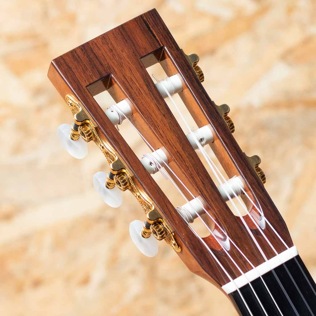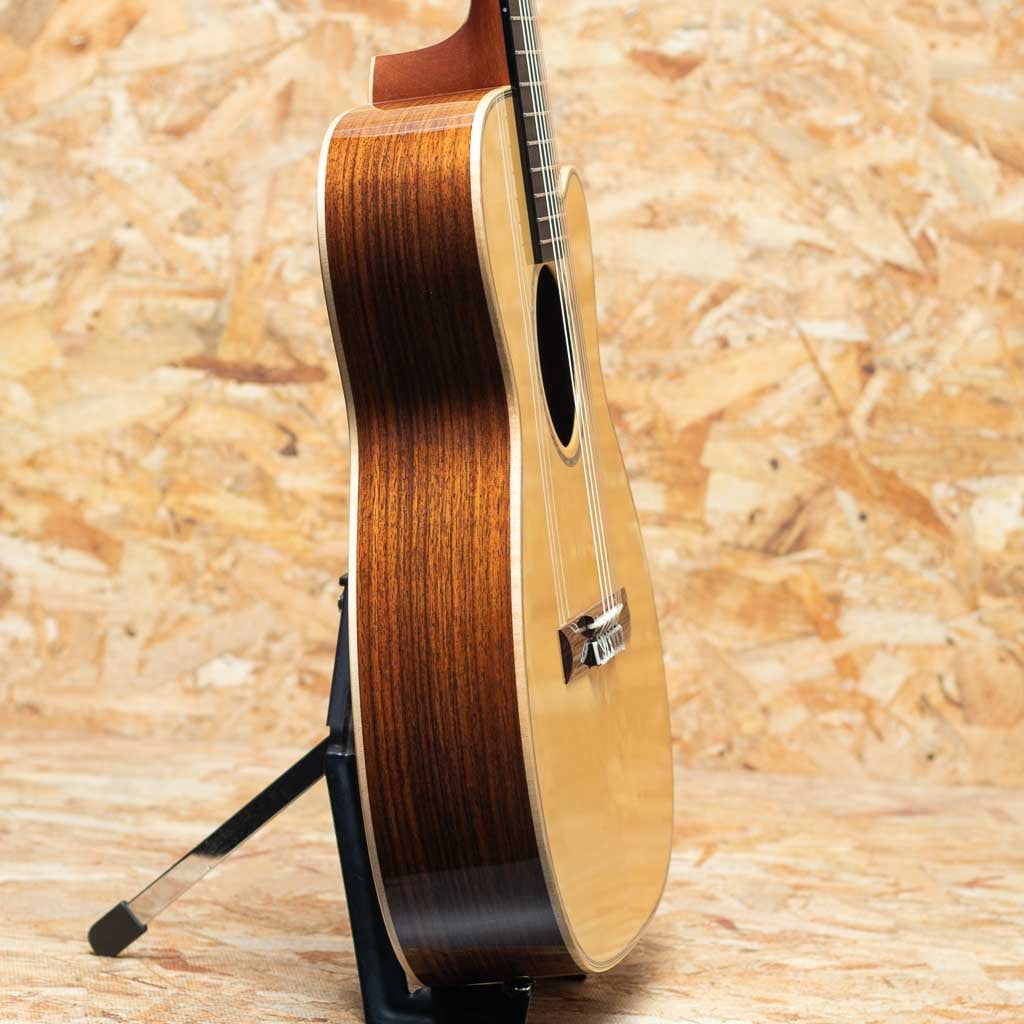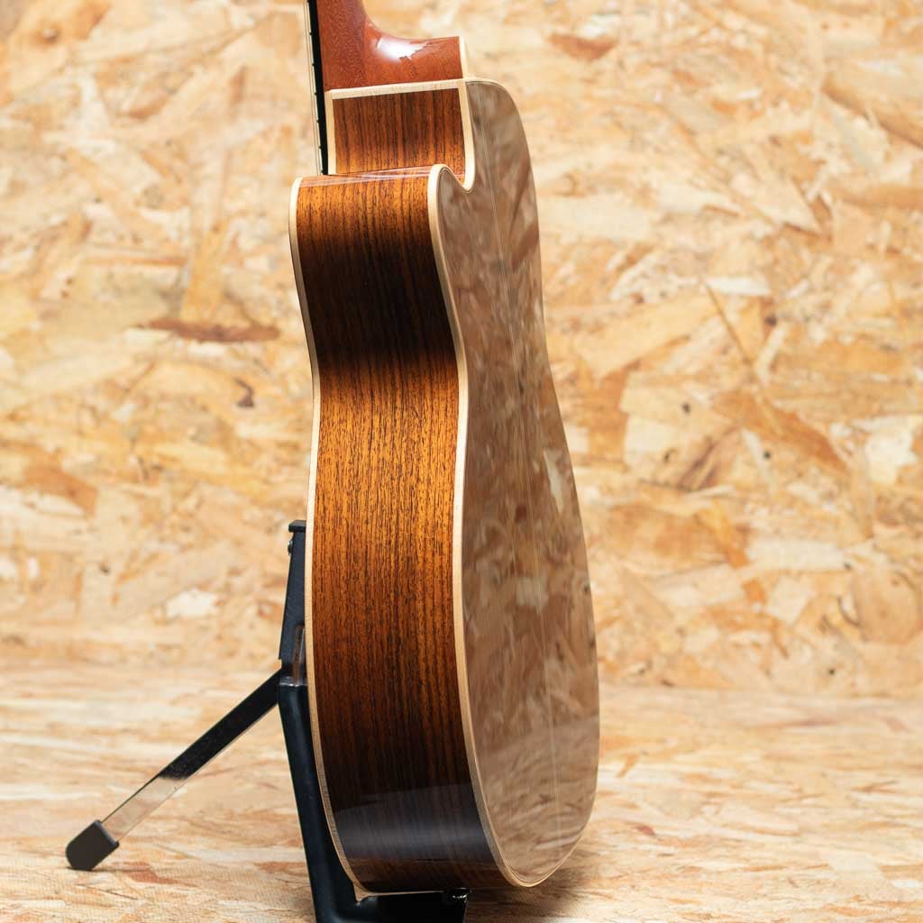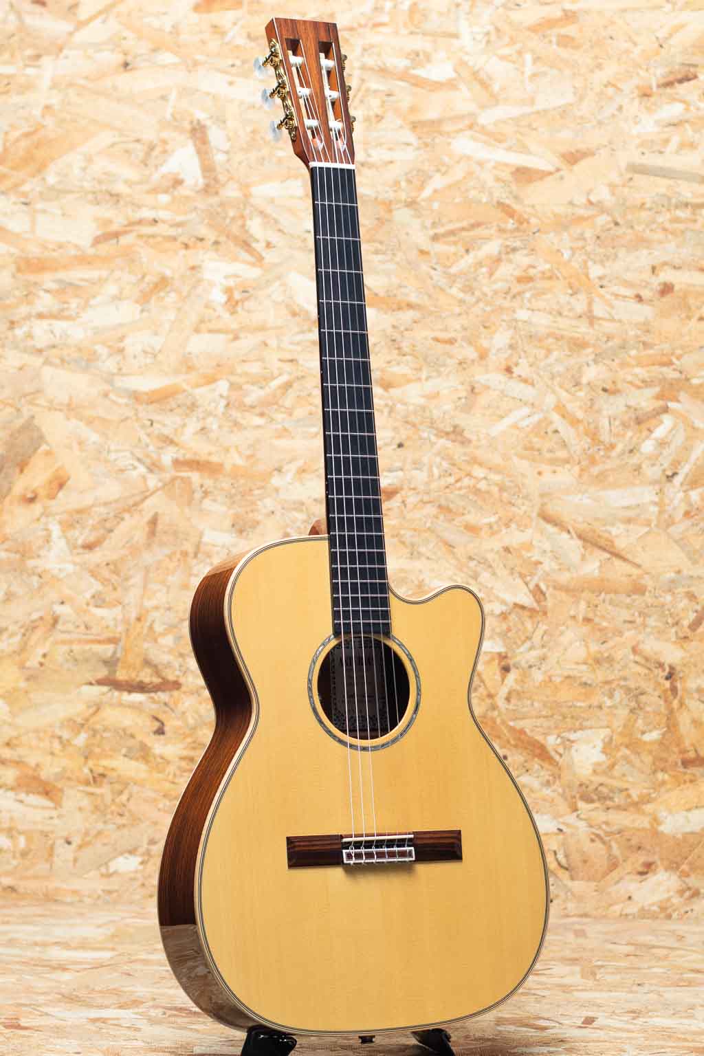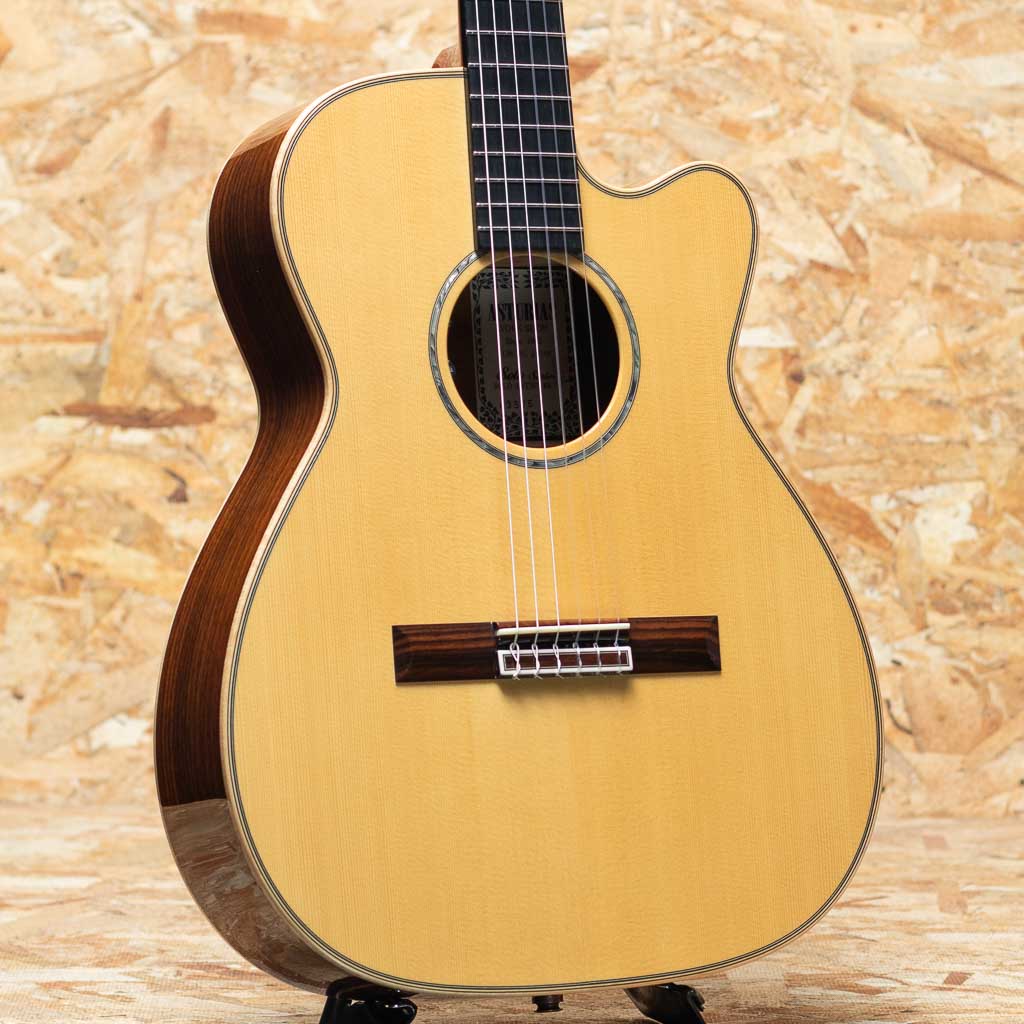 九州は福岡県久留米市にある老舗クラシックギター製作所、ASTURIAS (アストリアス)。少数精鋭の職人が手掛けるギターの完成度の高さは国内外問わず定評があります。本器はブレーシングの配置や内部構造は正統派クラシックギターの流れを受け継ぎながら、薄胴で演奏性の良いカッタウェイ仕様のエレガットタイプモデル"Solo Artist SE"の2019年製USED品。スプルーストップ、ローズウッドサイドバック、マホガニーネック、エボニー指板、ローズウッドブリッジ、アバロンロゼッタ、L.R.Baggs Dual Sourceピックアップ搭載。ハイポジションでのプレイアビリティを向上させるカッタウェイを施したコンパクトで抱えやすいサイズのボディに、ナット幅46mmと握りやすく、特にアコギやエレキからの持ち替えの方におすすめのモデルです。アンダーサドルとマイクのブレンドが出来るDual Sourceピックアップ搭載でステージ等でもナチュラルなサウンドが出力可能で即戦力としてお使いいただけます。目立つ傷なども見られず、使用感もあまり感じられないきれいな状態です。扱いやすく、生音も楽しめるエレガットモデルです。スーパーライトケースが付属します。