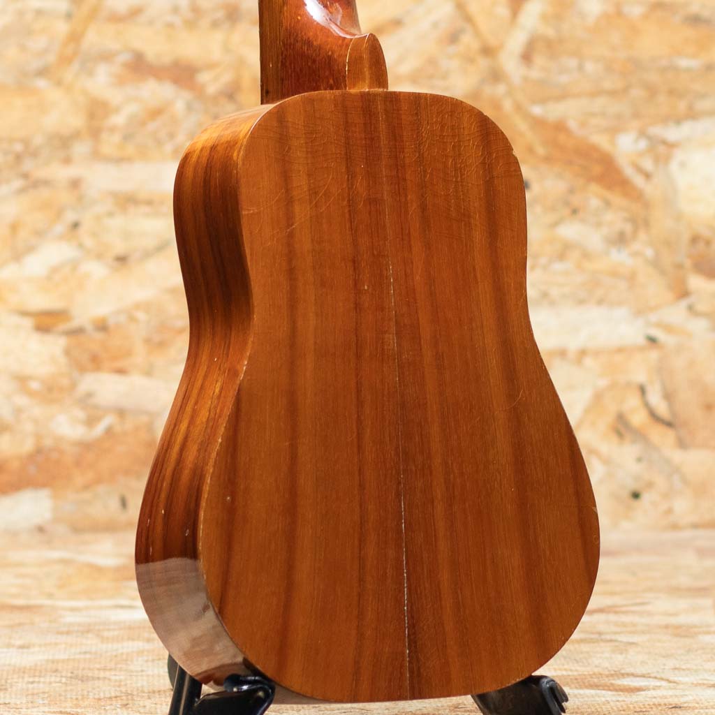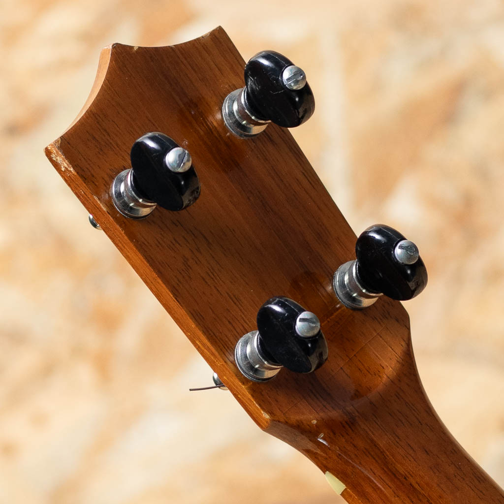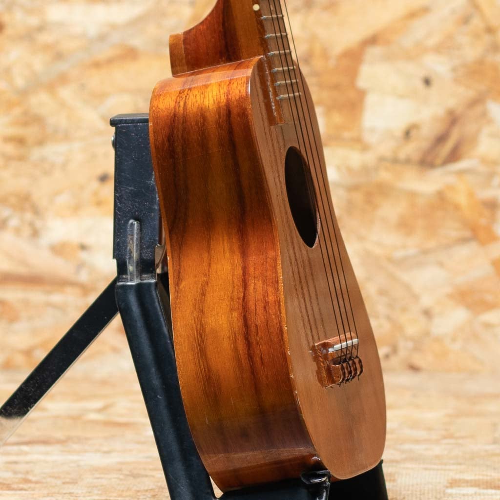 1986年創立のウクレレブランド”セニーザ”。ハワイのオワフ島にて、トーマス&キャサリン夫婦二人で製作されておりましたが、2000年代後半より惜しくも生産を終了してしまいました。現在は中古市場でも希少となっております。夫のトーマス・セニーザは“Valley Made Ukuleles”(ヴァリー・メイド・ウクレレ)の製作者ジェロマ氏の叔父に当たる存在で、代々ウクレレ作りの伝統を受け継いでいる血筋を持っており、製作されるウクレレも味わいのある伝統のハワイアンウクレレそのもの。本器はハワイアンコアボディのソプラノシェイプをベーシックに少し長めの380mmスケールで製作されたロングネック仕様のUSED品です。しっかりとしたボリュームに甘く温かみのある音色。ハワイアンミュージックがよく似合う1本です。部分的にウェザーチェックや僅かに塗装の剥離、トップセンターシーム&指板横にクラック補修があるほか、小キズなどの使用感がございますが、ヘッド突板にはデカールロゴが珍しく綺麗な状態で残っております。ハワイ製の通なウクレレ”セニーザ”。流通も少なく貴重な1本です。チップボードケース付属。