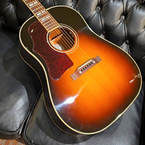ギブソンの代表機種J-45の上位機種に当たるサザンジャンボ。カントリーのリズム・ギターやアコースティック・ブルーズのリード・プレイを奏でるのに恰好のモデルとして定評があり、アーティストの使用などでも非常人気の高いモデルです。J-45のスタンダードモデルと比較しても豪華な装飾で個性のある風格です。本器は左利き仕様の2018年製USED品。スプルーストップ、マホガニーサイド&バック、マホガニーネック、ローズウッド指板・ブリッジ、ヘッドクラウンインレイ、パラレログラム指板インレイ、オリジナルラージピックガード、スキャロップド・エックスブレイシング、L.R.Baggs社製Element VTCピックアップ内蔵。厚みのある中低域に加え、キレ、エッジのある高域が気持ちよく響きます。ネックヒールにストラップピンの増設、ブリッジピンは別の種類へ交換がされております。傷・打痕等軽微な使用感は見られますが、比較的きれいな外観が保たれています。あまり流通数も多くないレフティーモデル。左利きの方は必見です。オリジナルハードケース付属です。