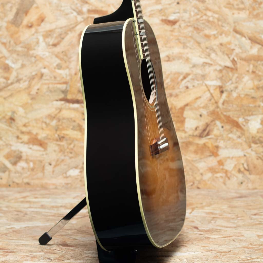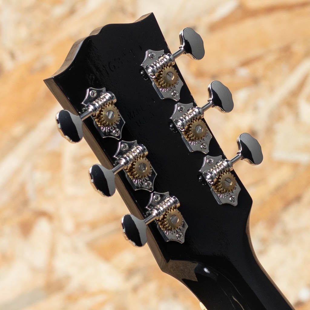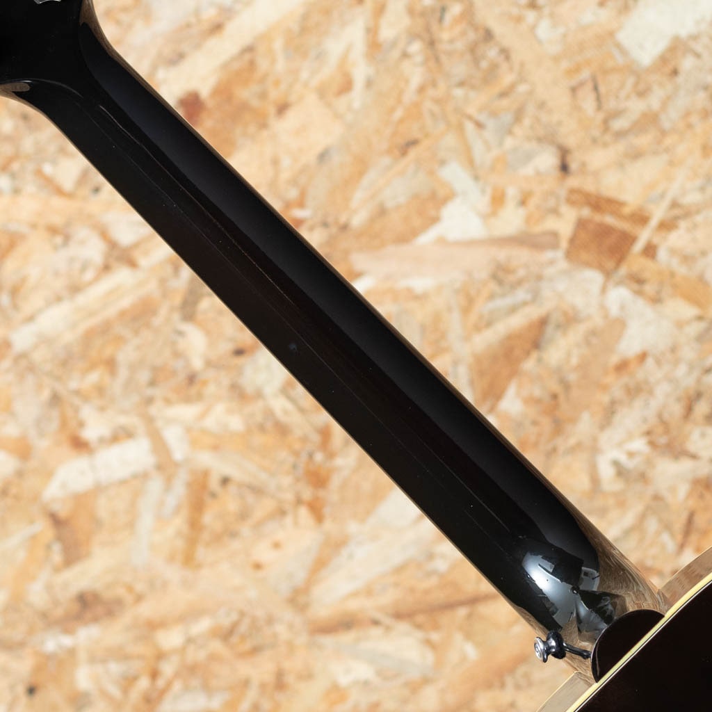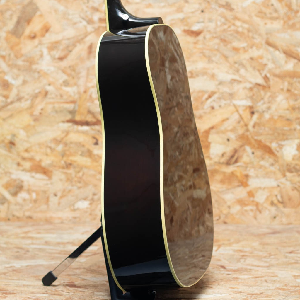ギブソンラウンドショルダーの元祖である"Jumbo"から枝分かれしたAdvanced Jumboの後継となったモデルのうちの一つであり、現在ではもっともポピュラーなJ-45の上位機種という位置づけとなっているギター”サザンジャンボ”。こちらは2023年製のUSED品。スプルーストップ、マホガニーサイド&バック、マホガニーネック、ローズウッド指板&ブリッジ、ヘッドクラウンインレイ、ダブルパラレログラム指板インレイ、ラージピックガード、L.R.Baggs社製Element VTCピックアップ内蔵でライン出力にも対応可能。全体的に使用感は極少なめでネックコンディション良好。フレットの減りも見られません。ネックヒールにストラップピン打ち有り。有名アーティストの使用が多く、またゴージャスでありながら気取っていないそのデザインから、ギブソンフラットトップの中でも確固たる人気を誇るモデルです。J-45に比べ、ブリッジピンの止め位置がサドルに近いため、弦にしっかりとしたテンションが掛かり、ふくよかながら締まりのある低音と明瞭な高音が特徴。幅広いスタイルでお使い頂ける1本です。オリジナルハードケース付属