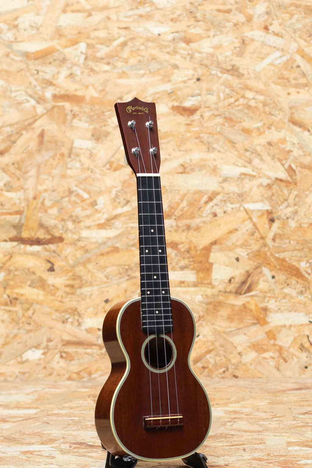 ギターブランドとしてはもちろん有名ですが、100年を超えるウクレレ生産の歴史も持っており、現代までも続く老舗ブランド”MARTIN”。本器はヴィンテージ市場でも人気の高い”Style-3M”。1918年の発売開始から目まぐるしい仕様の変遷を遂げてきた個性的な機種です。オールマホガニーボディ、マホガニーネック、エボニー指板、マホガニーブリッジ、アイボロイドドット指板インレイ、フリクションペグ。ソプラノボディサイズですがボリュームも大きく、マーチンソプラノならではの艶やかで軽快なトーンにヴィンテージ品ならではの枯れたマホガニーサウンドを堪能頂けます。細かな打痕や弾き傷、ヘッドの欠けなどはあるものの大きなダメージはございません。ファンの多い人気機種、入手困難になりつつあるモデルですので、是非お見逃しなく。ケースは別売りとなります。