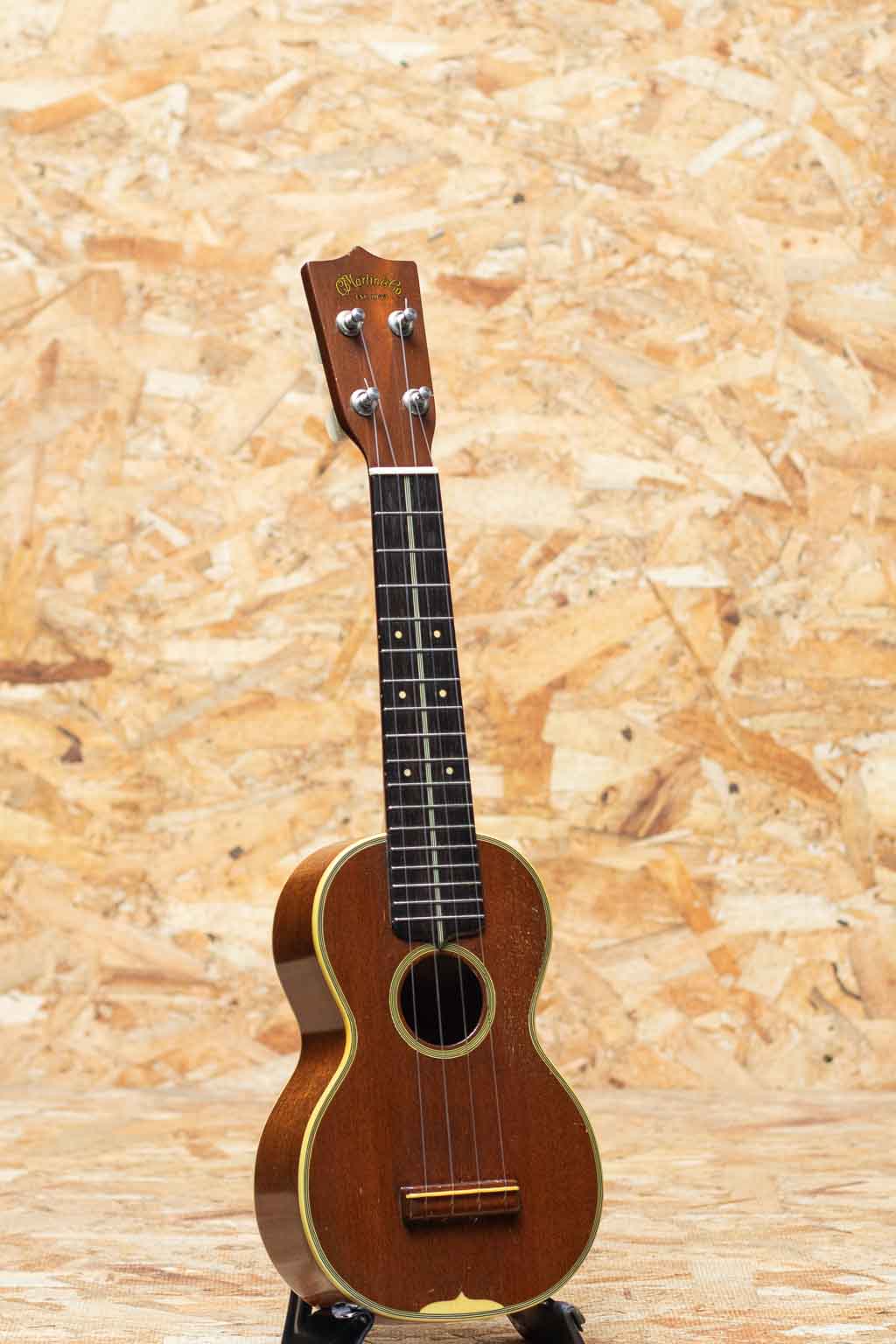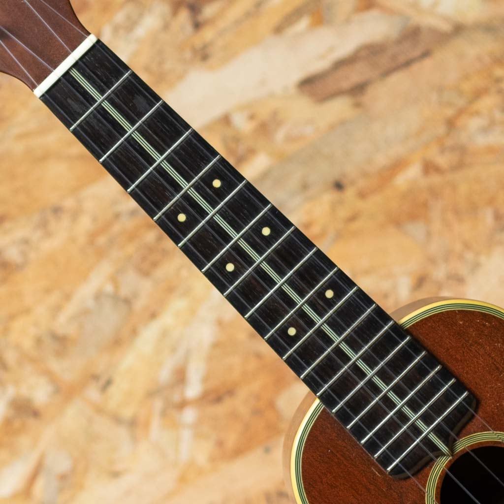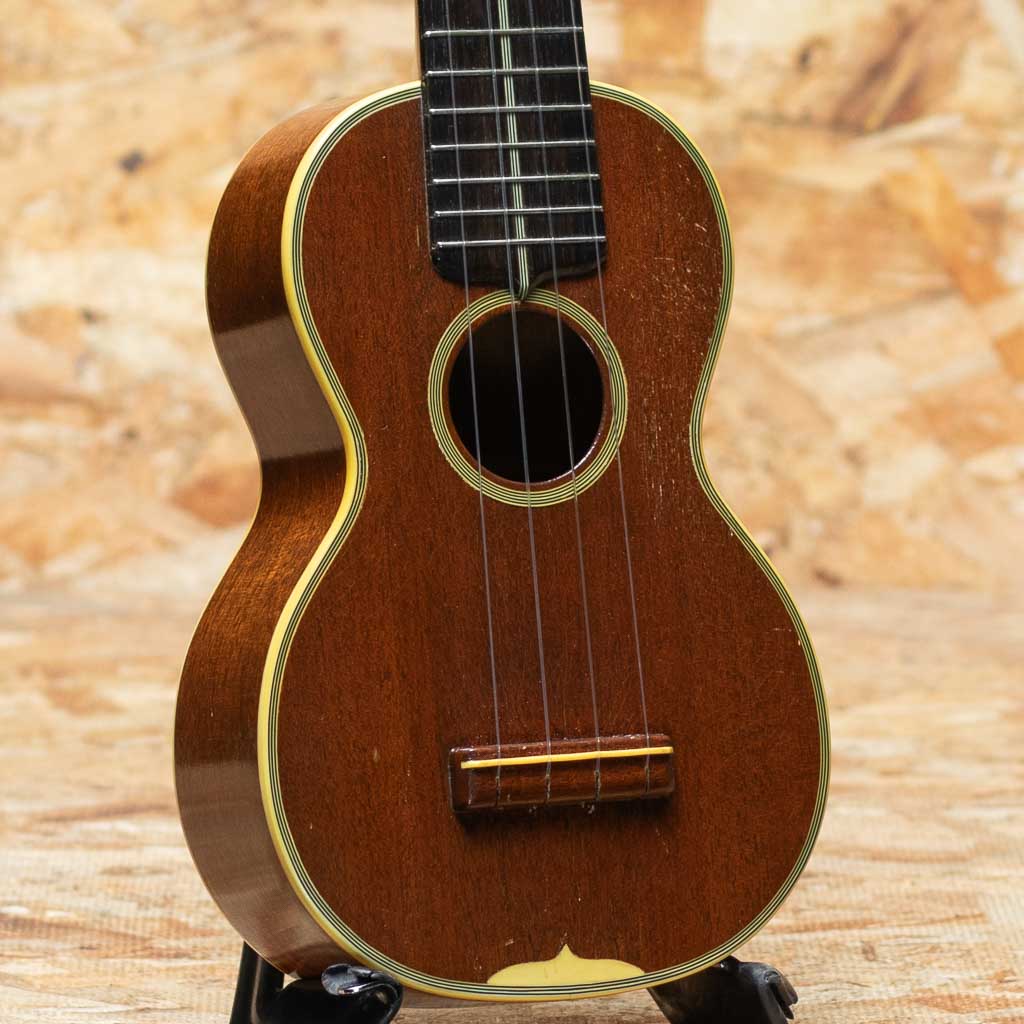 ギターブランドとしてはもちろん有名ですが、100年を超えるウクレレ生産の歴史も持っており、現代までも続く老舗ブランド”MARTIN”。本器はヴィンテージ市場でも人気の高い”Style-3M”。1918年の発売開始から目まぐるしい仕様の変遷を遂げてきた個性的な機種です。オールマホガニーボディ、マホガニーネック、エボニー指板、マホガニーブリッジ、アイボロイドドット指板インレイ&センターライン、ボトムオーナメント、フリクションペグ。ソプラノボディサイズですがボリュームも大きく、マーチンソプラノならではの艶やかで軽快なトーンにヴィンテージ品ならではの枯れたマホガニーサウンドを堪能頂けます。雰囲気を損なわない程度に細かな打痕や弾き傷の上から全体的にオーバーラッカーが施されています。ネックコンディション・演奏性は非常に良好。ファンの多い人気機種、入手困難になりつつあるモデルですので、是非お見逃しなく。ケースは別売りとなります。