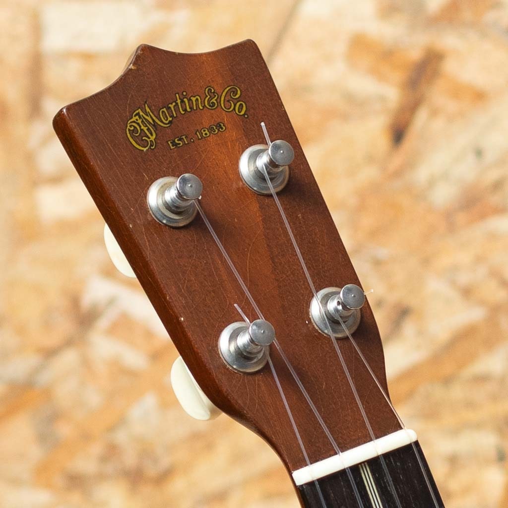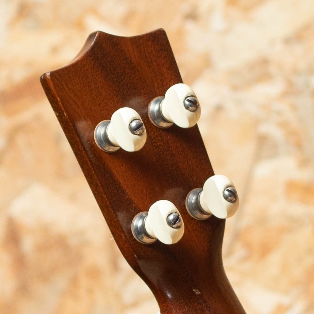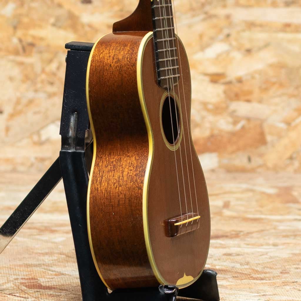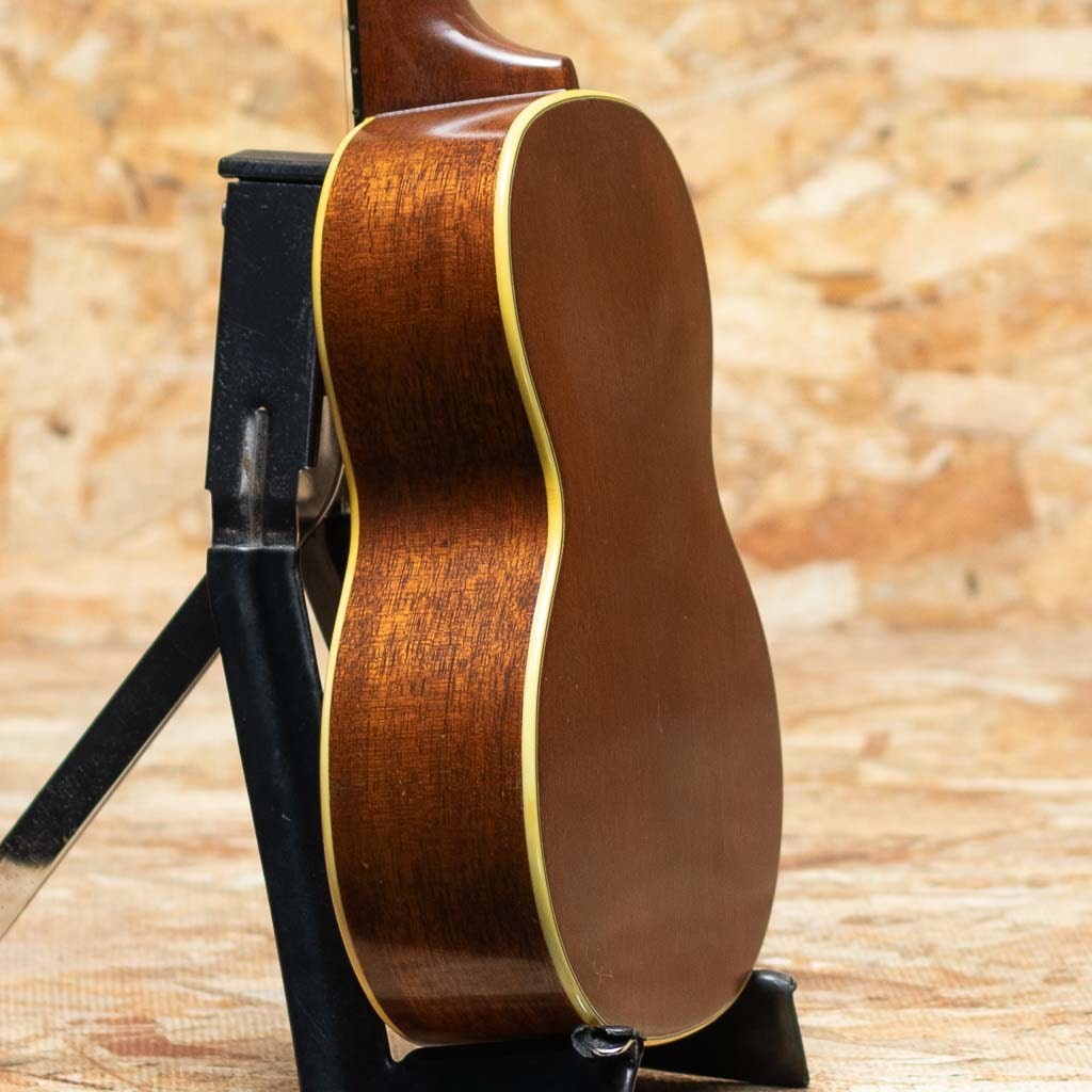 ギターブランドとしてはもちろん有名ですが、100年を超えるウクレレ生産の歴史も持っており、現代までも続く老舗ブランド”MARTIN”。本器はヴィンテージ市場でも人気の高い”Style-3M”。1918年の発売開始から目まぐるしい仕様の変遷を遂げてきた個性的な機種です。オールマホガニーボディ、マホガニーネック、エボニー指板、マホガニーブリッジ、アイボロイドドット指板インレイ&センターライン、ボトムオーナメント、フリクションペグ。ソプラノボディサイズですがボリュームも大きく、マーチンソプラノならではの艶やかで軽快なトーンにヴィンテージ品ならではの枯れたマホガニーサウンドを堪能頂けます。雰囲気を損なわない程度に細かな打痕や弾き傷の上から全体的にオーバーラッカーが施されています。ネックコンディション・演奏性は非常に良好。ファンの多い人気機種、入手困難になりつつあるモデルですので、是非お見逃しなく。ケースは別売りとなります。
