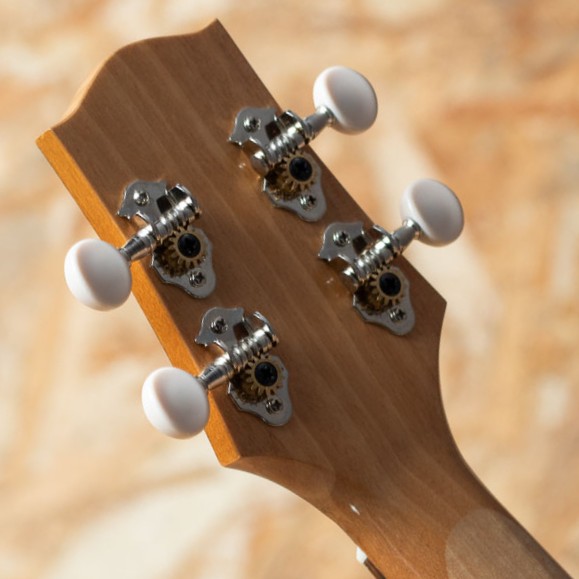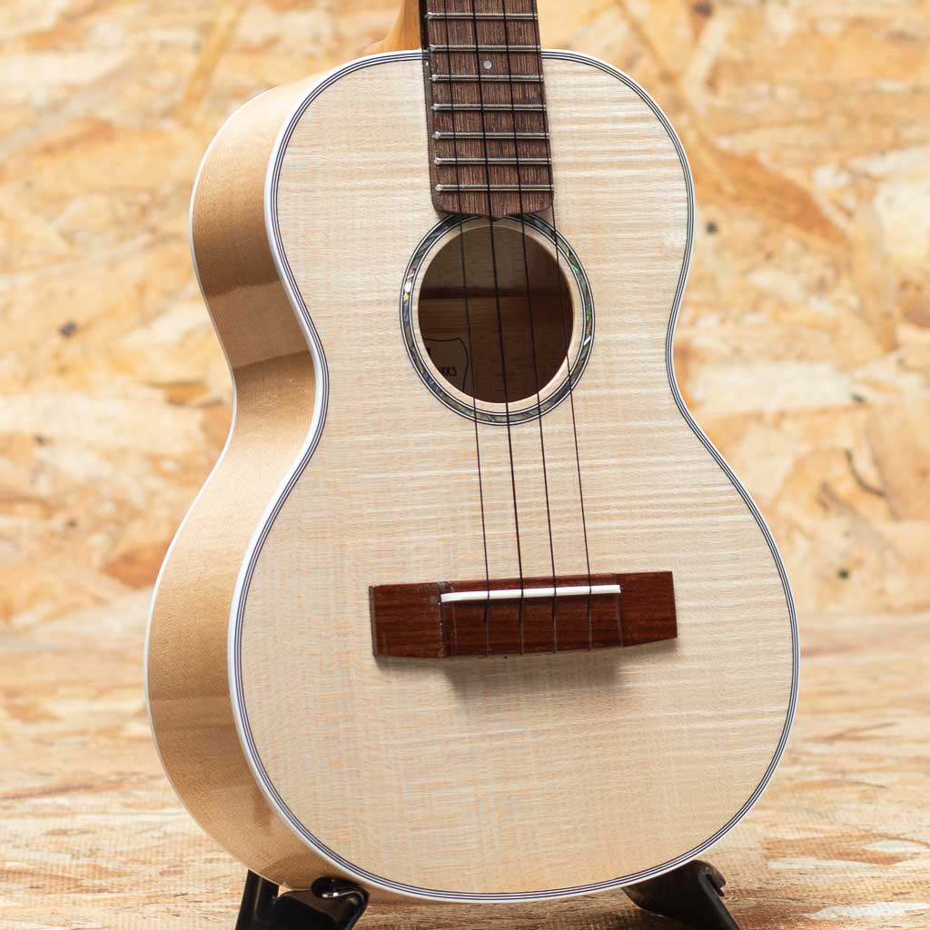 ・14フレットジョイント仕様で演奏性も高く、一般的なテナーサイズよりも長い442mmスケールを採用することで、音色のハリ、音量の安定感は格別