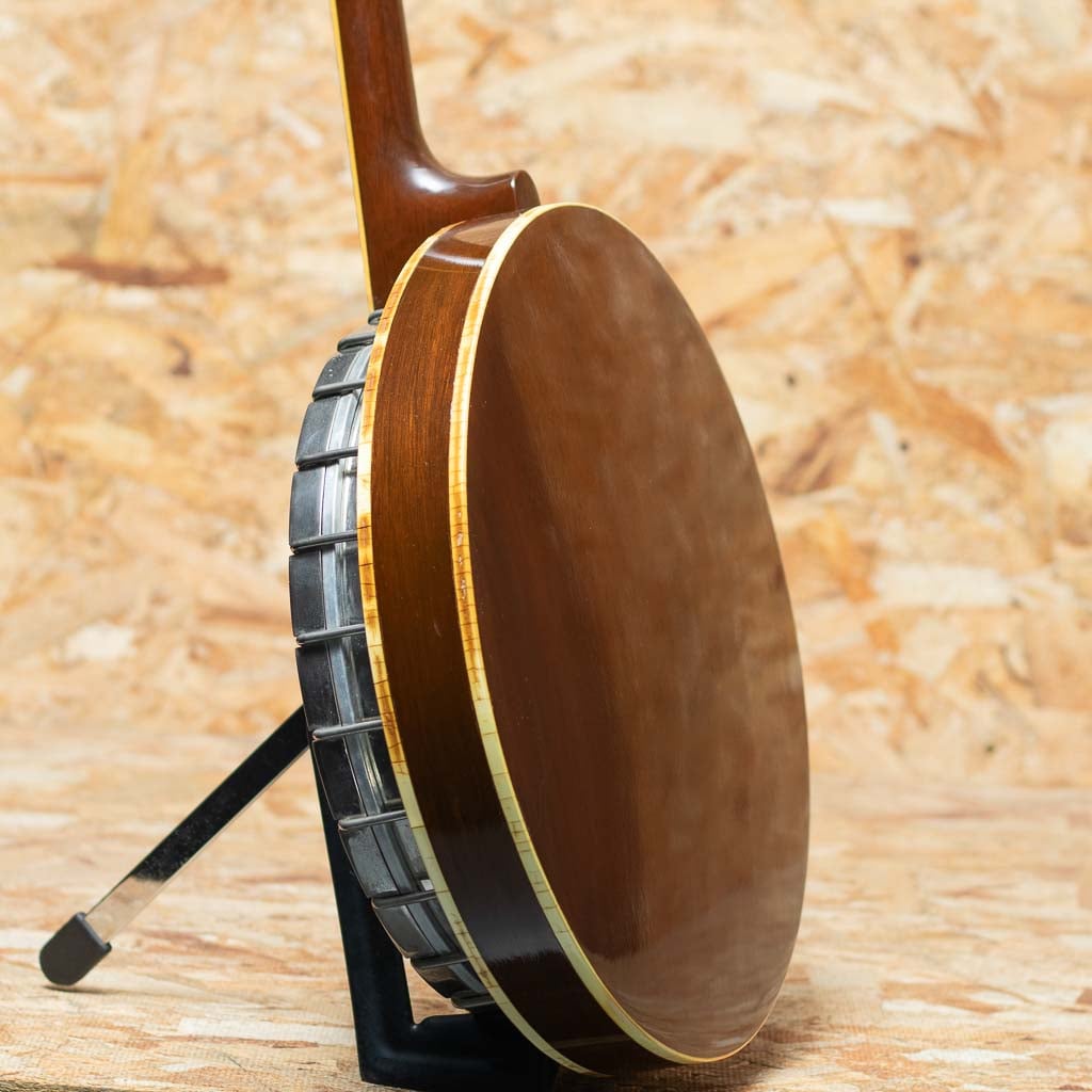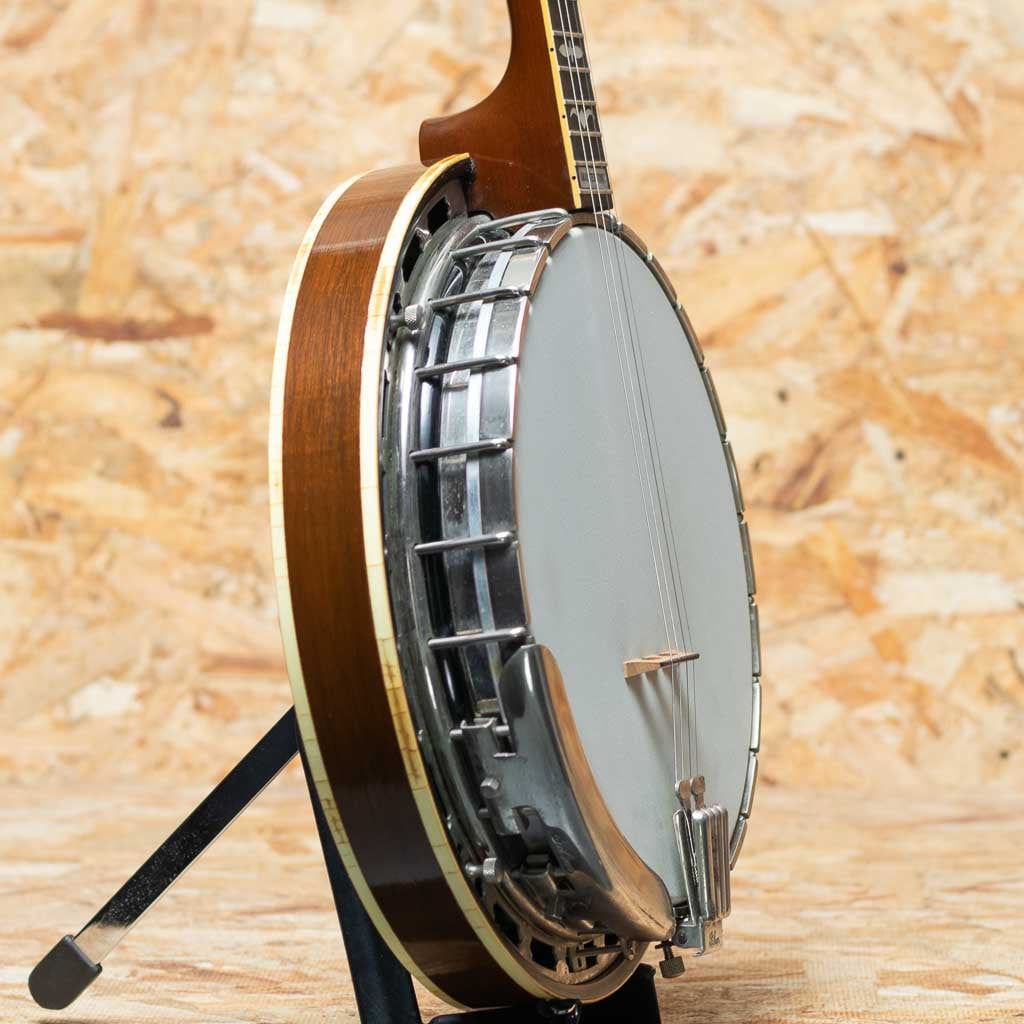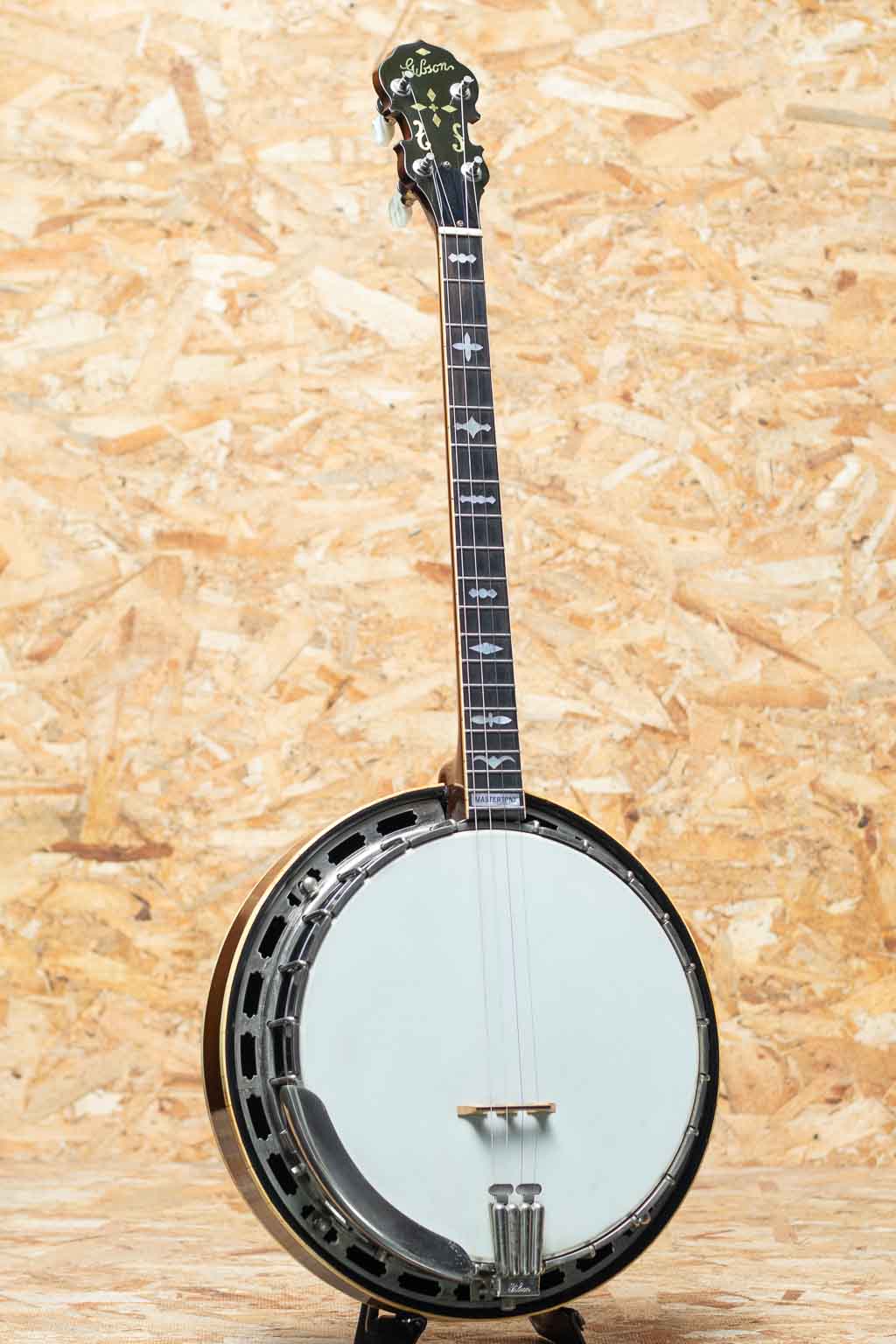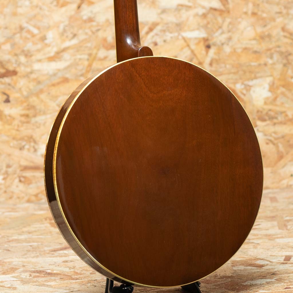 Gibson社を代表するバンジョーシリーズの中でも、伝統的な構造とクラシカルなルックスで高い人気を誇る「TB-250」。こちらは1977年製のテナーバンジョーです。マホガニーネック、マホガニーリゾネーター、エボニー指板、マルチプライメイプルリム、11インチフラットヘッドトーンリング、24ブラケット、 デュアルコーディネーターロッド、Gibson刻印入りオリジナルクラムシェルテールピース、Gibson刻印入りオリジナルペグ、フィドルシェイプヘッド。年式なりのニッケルパーツの曇りや木部のキズ、この時期に見られるバインディングのヒビなどが見られますが使用に問題はありません。ネックの握りはややしっかりとしたグリップ感がありながらも、演奏性の高いセッディングに仕上げられています。Gibsonならではの風格と深みのあるトーンを堪能できる一本です。オリジナルハードケース付属