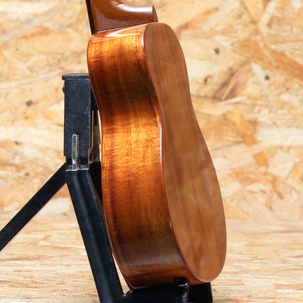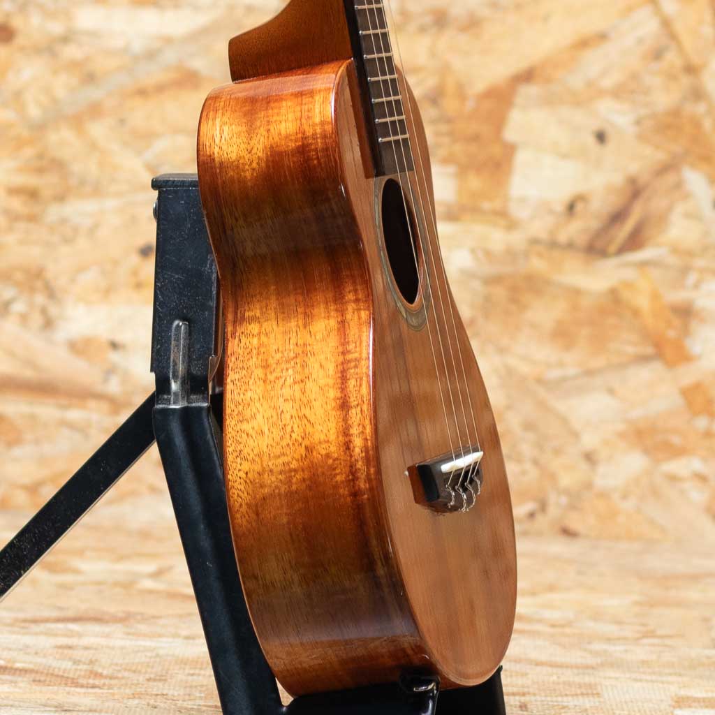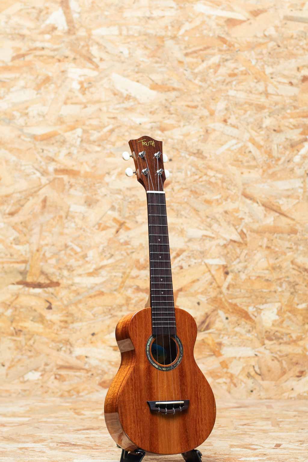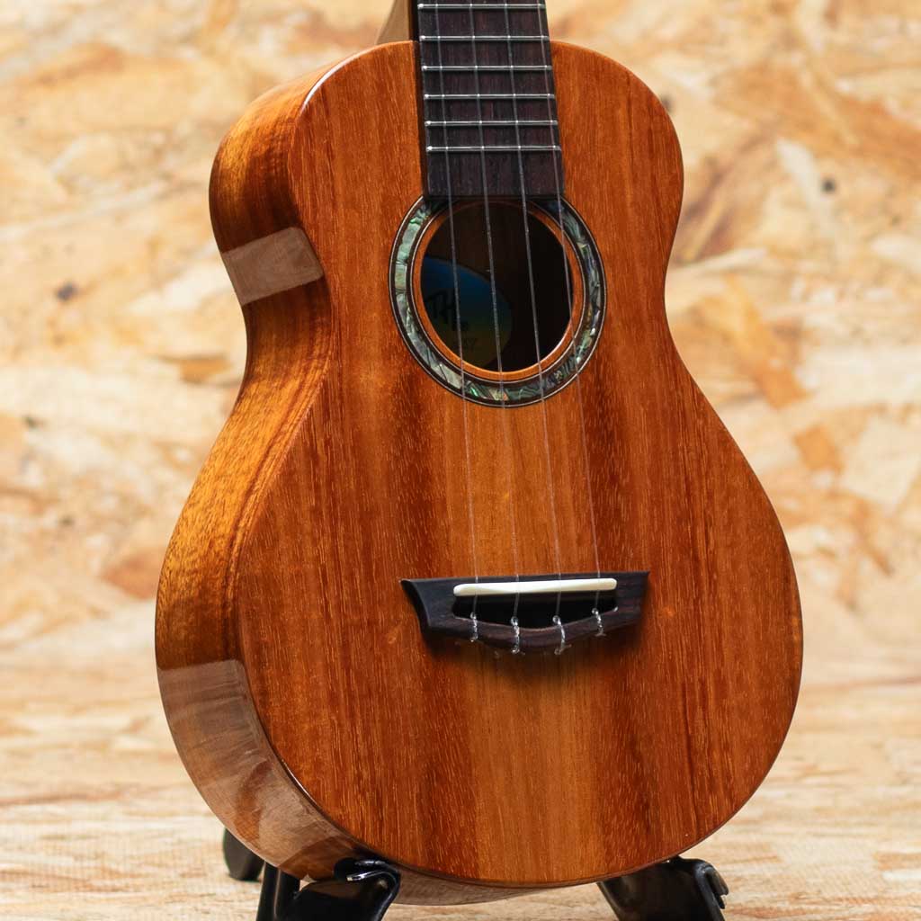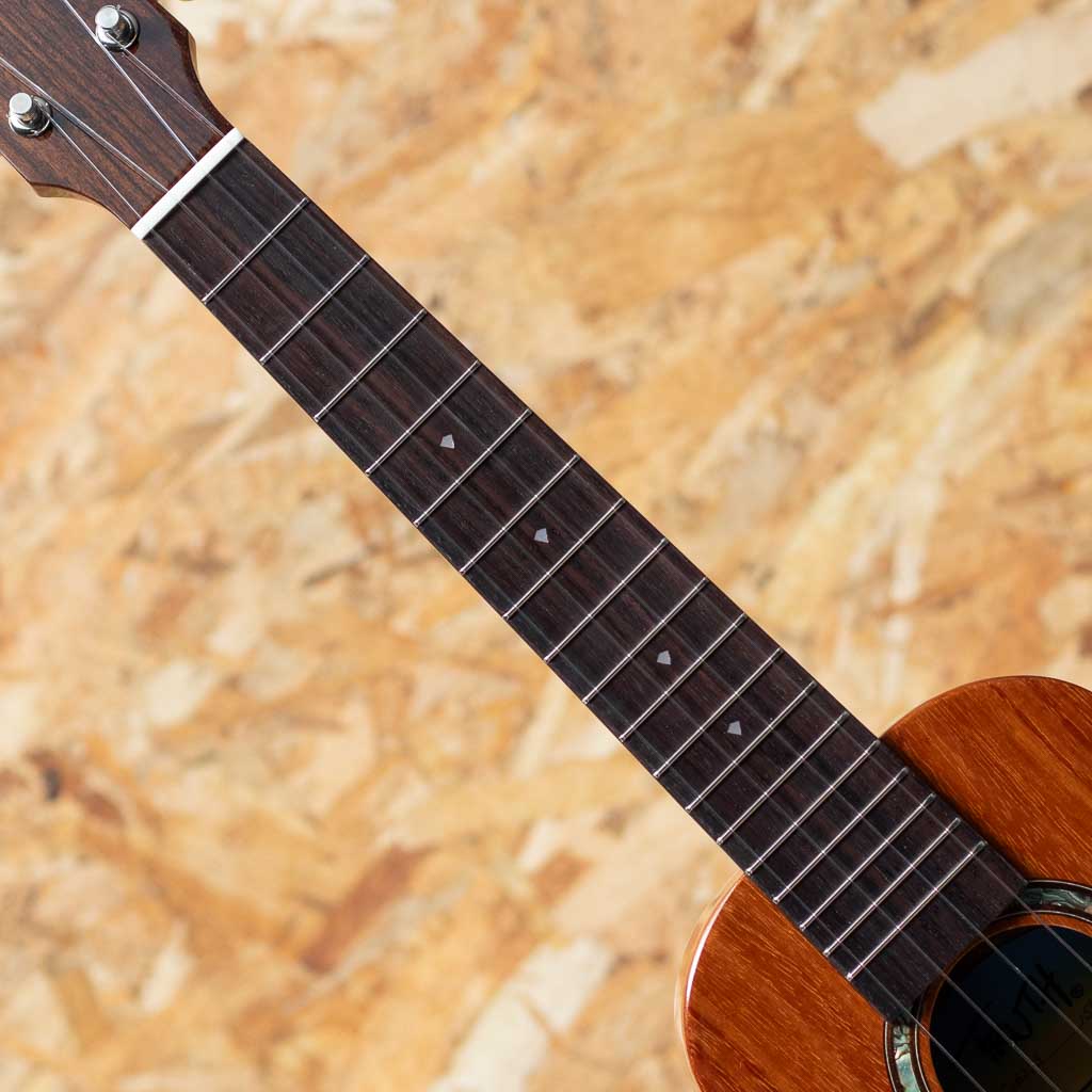 愛知県弥富市にて”福原紀文”氏と”小野寺忠史”氏により手掛けられる”TRUTHウクレレ”。IWAO氏や富永寛之氏、KYAS氏などを始め数々のプレイヤーが愛用しています。本器はハワイアンコア材をボディに用いたコンサートサイズモデル"THC-6233"。マホガニーネック、ローズウッド指板&ブリッジ、オープンギアペグ、パール指板ドットインレイ、4mm幅アバロンロゼッタ。トゥルースらしい太く甘いサウンドを味わえます。他社のウクレレに比べボディのサイズ感もやや小振りなため、女性にもオススメです。音量も大きく聴き応え充分。グロス仕上げで杢目の良さも強調されており、音色にもまとまりがあります。弾き語りにもソロプレイにも対応できる万能な1本。ケースは付属しません。