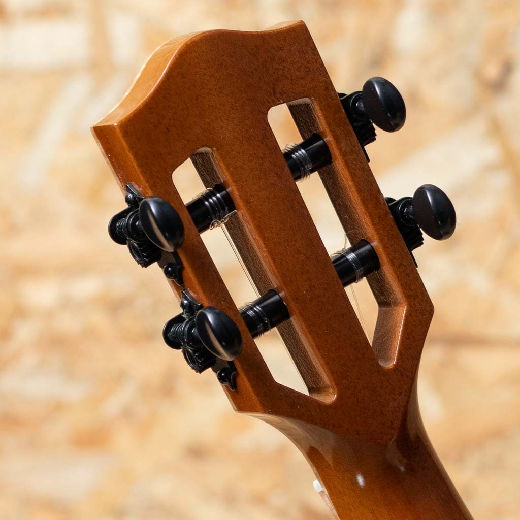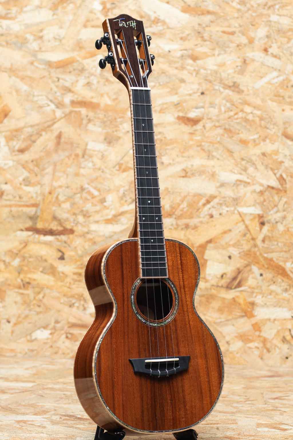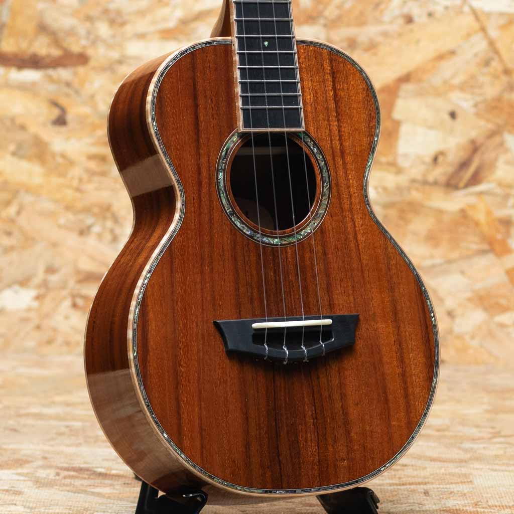 愛知県弥富市にて”福原紀文”氏と”小野寺忠史”氏により手掛けられる”TRUTHウクレレ”。IWAO氏や富永寛之氏、KYAS氏、HOOK氏などを始め数々のプレイヤーが愛用しています。本器はハワイアンコア材ボディのテナーモデルのカスタム品。スロテッドヘッド、メイプルバインディング、ボディトップのアバロントリムと高級感のあるルックスになっています。オリジナルのシェイプで深みが強く、太さ、甘さがあり、存在感のある音色です。ゆるいストラミングでも雰囲気のある優しい音色が得られ、様々なジャンルに柔軟に対応してくれます。プレイヤー向きな1本と言えるでしょう。上質なテナーウクレレをお探しの方にオススメの1本。