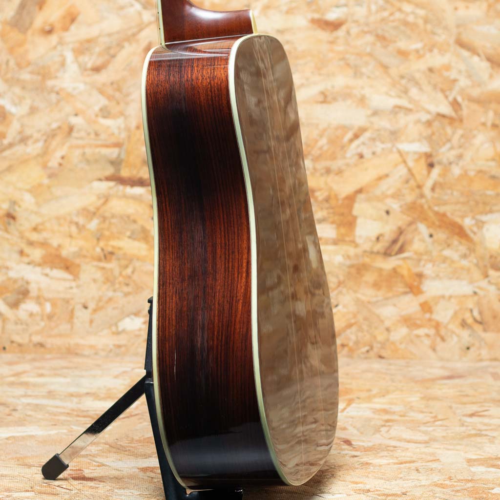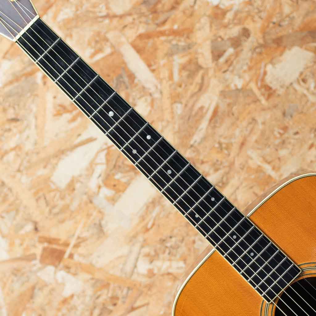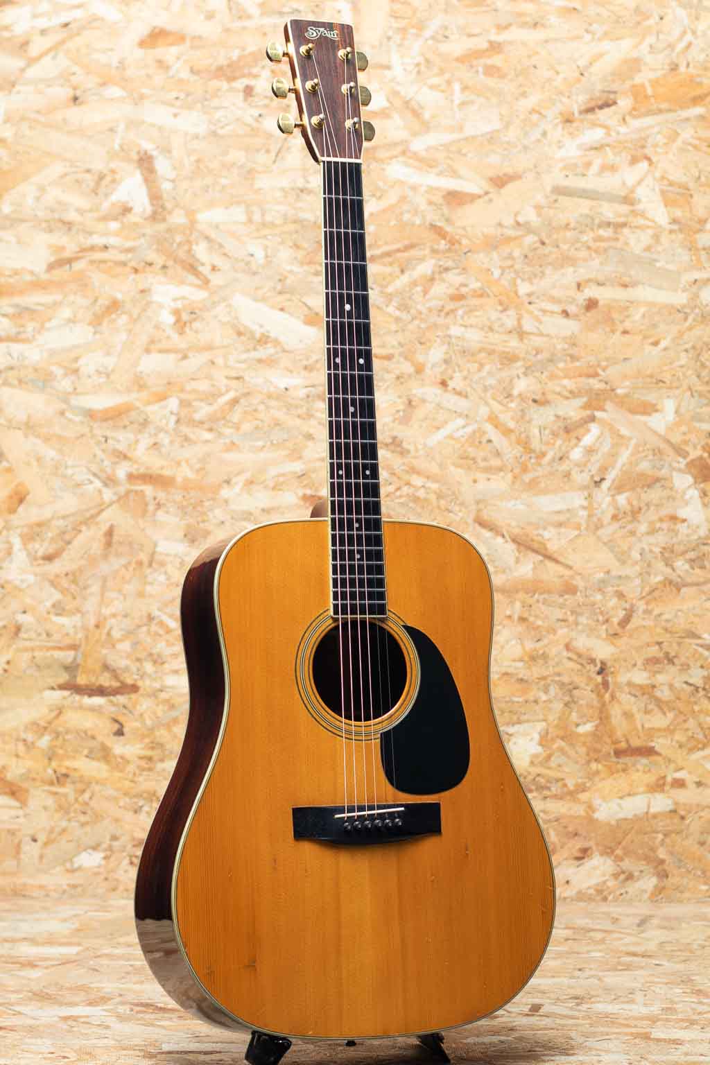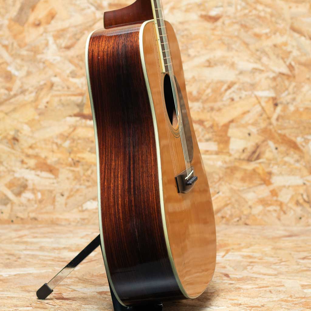 国産ビンテージで非常に高い人気を誇るブランドS.YAIRI。 。本器は3Pバック仕様の"YD-306"1976年製USED品。スプルース単板トップ、ローズウッドサイド、ローズウッド3ピースバック、エボニー指板&ブリッジ、シャーラーゴールドペグ。この年代のS.ヤイリらしい良く乾いたサウンドで輪郭のハッキリとした引き締まった音色です。小キズや打痕、バインディングの補修や薄い塗装の白濁などは見受けられるものの致命的なダメージはございません。サドルが低めに設定されていますが、弦高は標準的でネック・プレイコンディションは良好です。いい具合にこなれたジャパンヴィンテージ”YD-306”。汎用ハードケースが付属します。