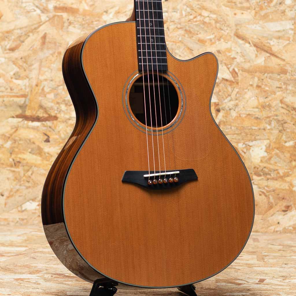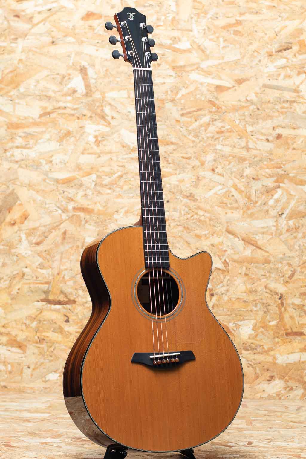1981年、チェコスロバキア社会主義共和国時代、ブルーグラスプレイヤーであったFrantisek Furch(フランティセク フォルヒ)氏が自らとその仲間の為にギターを製作を開始。その後の試行錯誤により徐々に品質を高め、プロ・アマ問わず地元プレイヤーの高い評価を得るまでになり、93年時点で20名ほどのスタッフを抱えるギターメーカーに成長。今や多くの日本のプロギタリストにも愛用される程のブランドとなっております。本器はモデルそれぞれの個性を色で表現されたカラーシリーズの中のイエローシリーズ、GC-CRのUSED品。低音から高音までのバランスに優れたグランドオーディトリアムサイズボディにシダートップ、ローズウッドサイド&バックという組み合わせ。マホガニーネック、エボニーフィンガーボード&ブリッジ、シャーラーペグ、スキャロップド・エックスブレイシング。 シンプルながらも大変上品なルックス。音量もあり、レンジの幅も充分で、どのポジションでも決してもたつかず安定したトーンで発音されるクールなサウンド。レスポンス、サスティーンの良さ、プレイアビリティの高さからソロギタリストに人気の高いモデルです。部分的に小傷や打痕は見られますが、使用感も比較的少なくきれいなコンディションが保たれております。人気上昇中のブランド"フォルヒ"の定番機種のUSED品。オリジナルハードケース付属です。