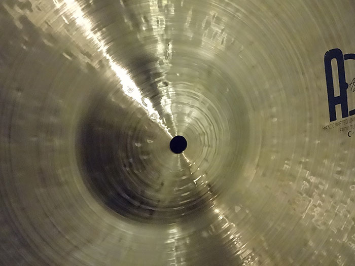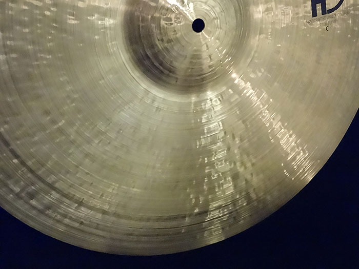成型後、何度も焼き入れとハンマリングを繰り返すことで耐久性の高いシンバルに仕上がります。職人の手打ちによって施される表面の凹凸が音の個性をさらに際立たせます。