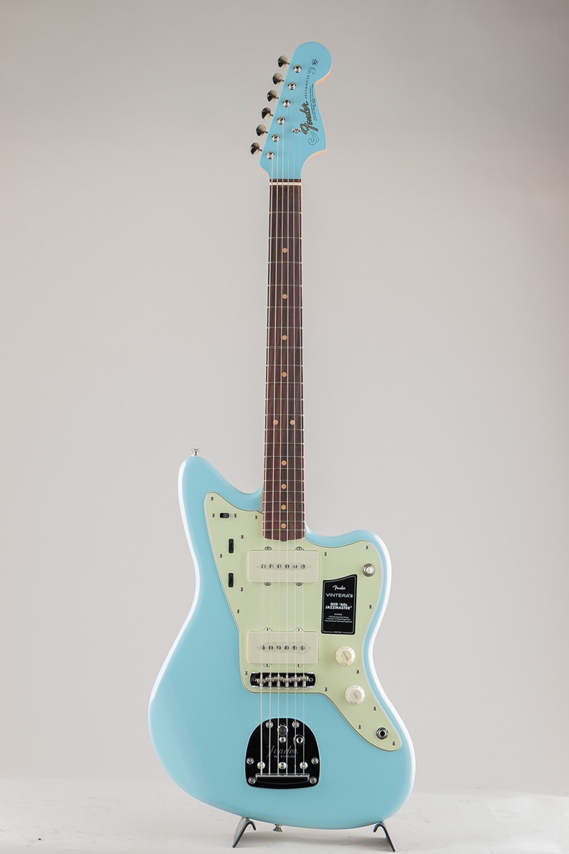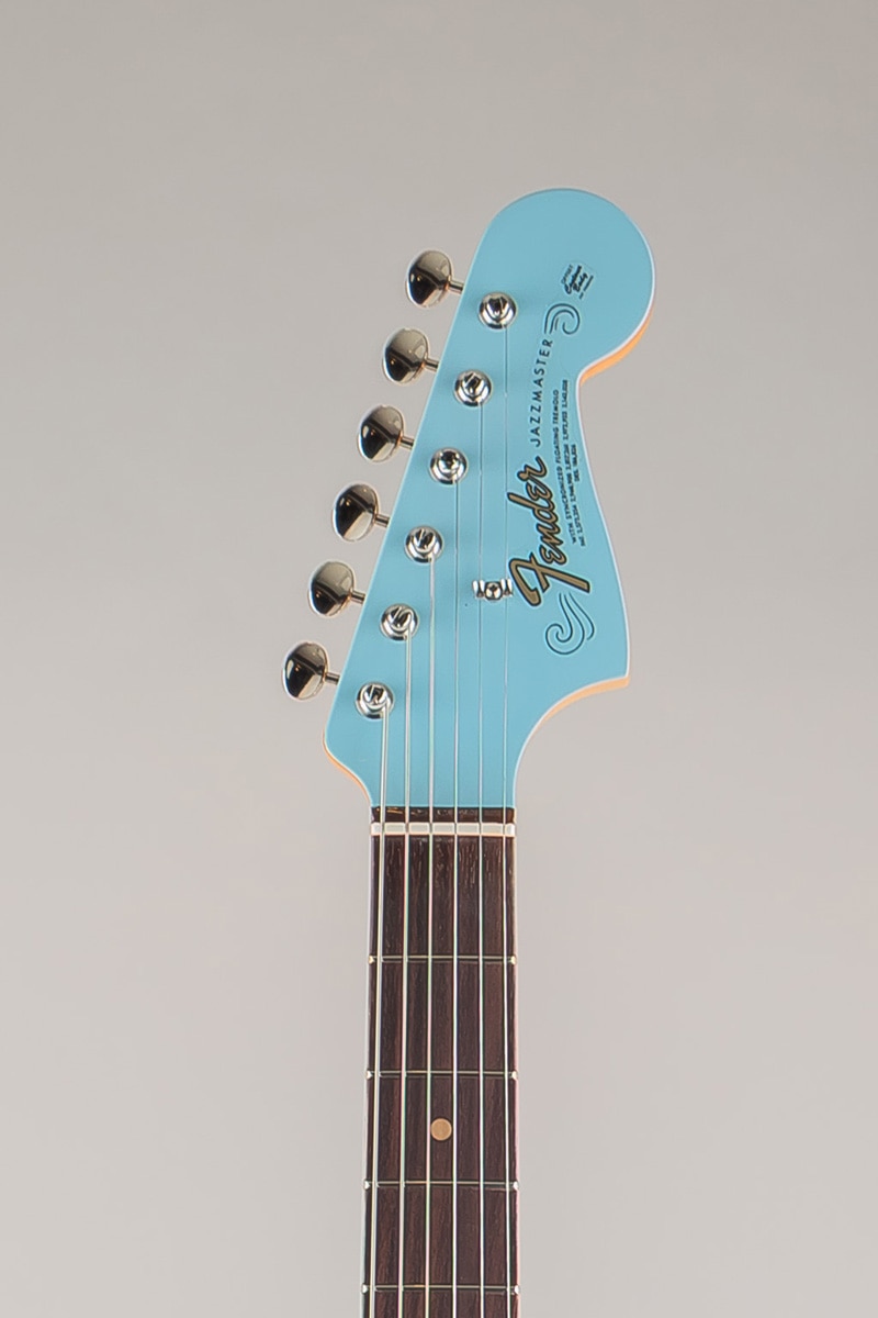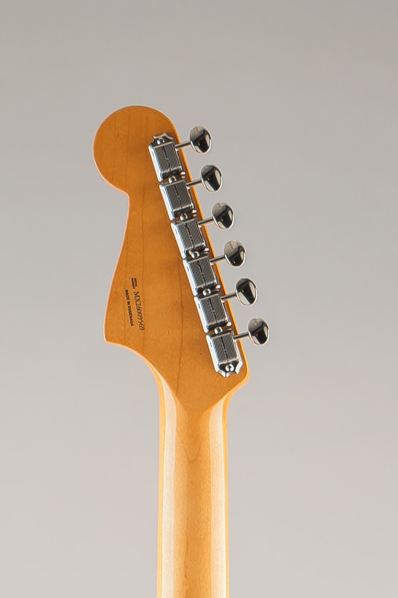 オーセンティックな60年代中期の“C”シェイプネックは、手に自然に馴染む、どこか懐かしい弾き心地を提供。7.25インチラジアス指板とヴィンテージトールフレットが、抜群の快適性と優れた演奏性を実現します。 サウンドの要となるピックアップには、丁寧に作り込まれた60年代中期仕様のヴィンテージスタイルJazzmasterピックアップを2基搭載し、Fenderサウンドを確立したブライトでエッジの効いたトーン、そして温かくウッディなミッドレンジを余すことなく表現します。ヴィンテージスタイルのフローティングトレモロブリッジとリズムサーキットスイッチは60年代らしい多彩な表現力とヴィブラートを提供します。ヴィンテージスタイルの様々なディテールがクラシックな美しさをエンハンスし、当時に忠実なチューニングマシンが高いチューニング精度を実現します。