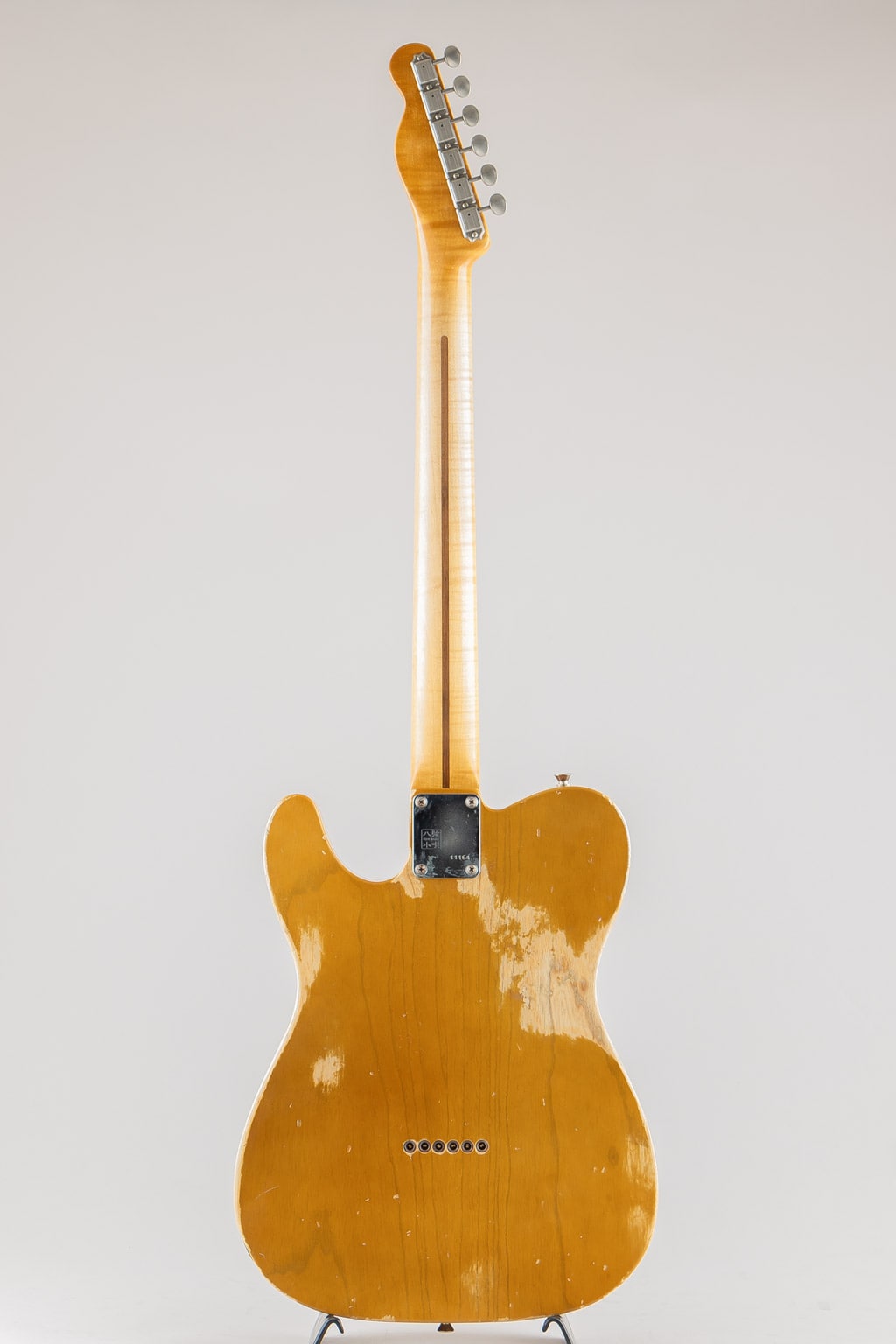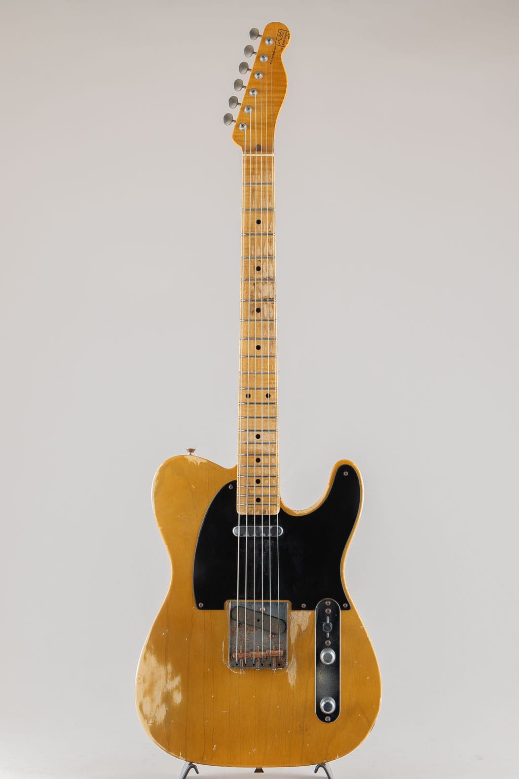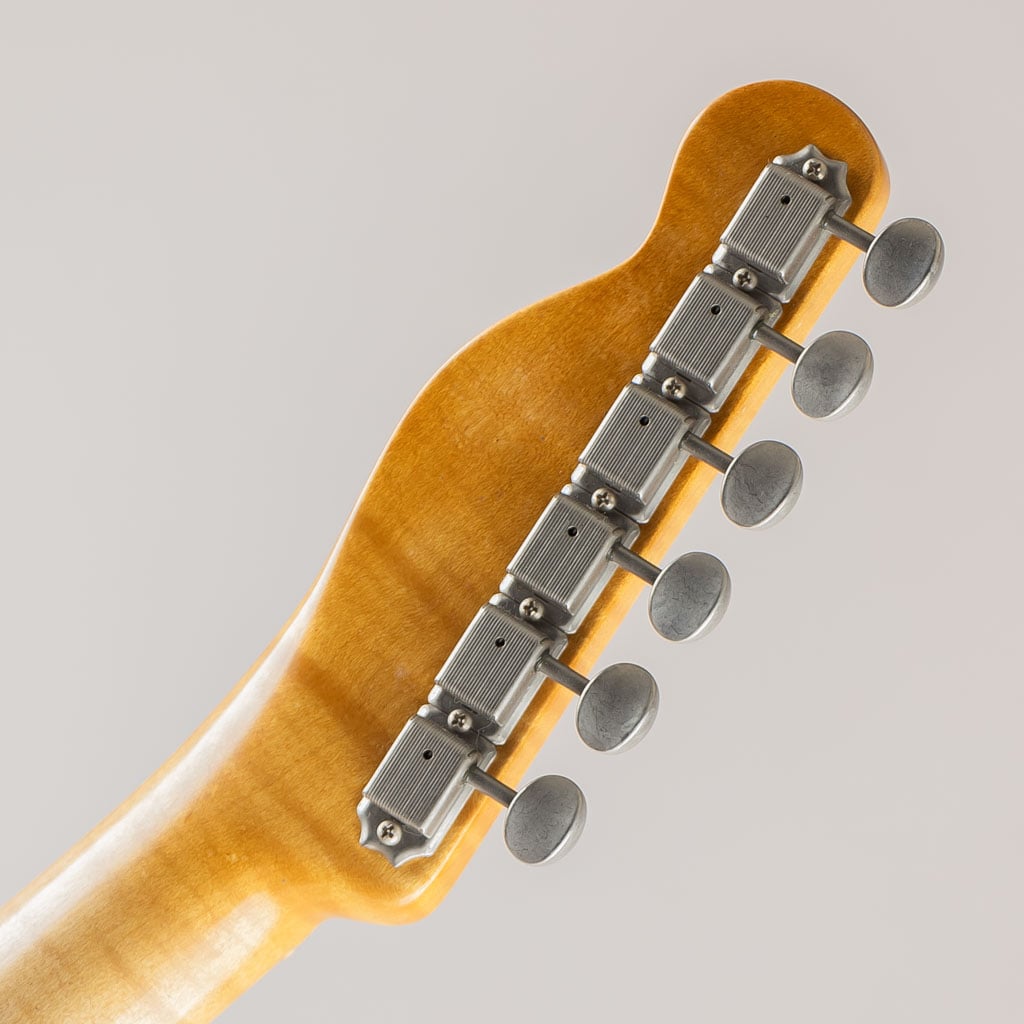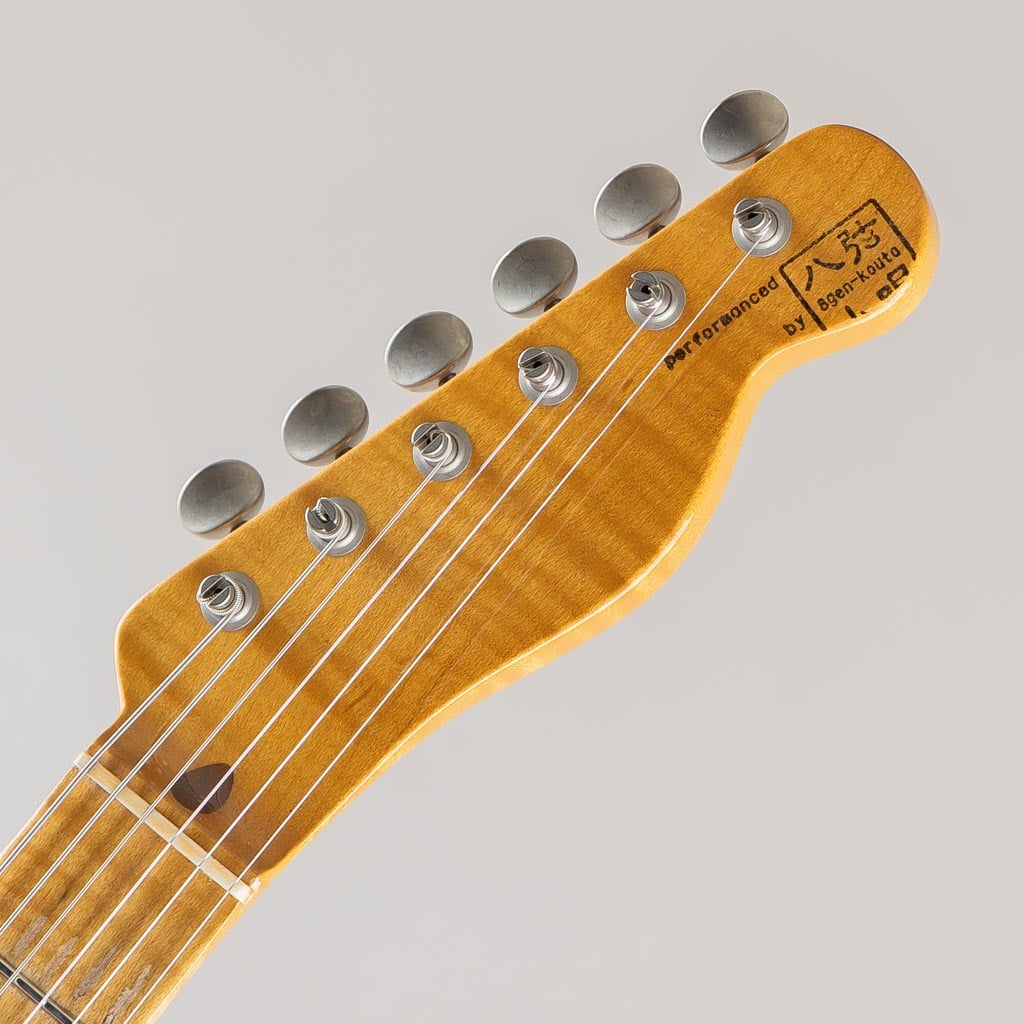 大阪に拠点を構えるリペア&製作工房"八弦小唄"。ヴィンテージショップを中心とした顧客から受ける膨大な量のリペアで得た知識と、セットアップに関する独自の解釈が反映される楽器はヴィンテージ通をも唸らせる仕上がりで知られます。今回入荷しました1本はアッシュボディにフレイム杢の美しいメイプルネック、特徴的なブラックガード仕様の50sスタイルテレキャスターでございます。
