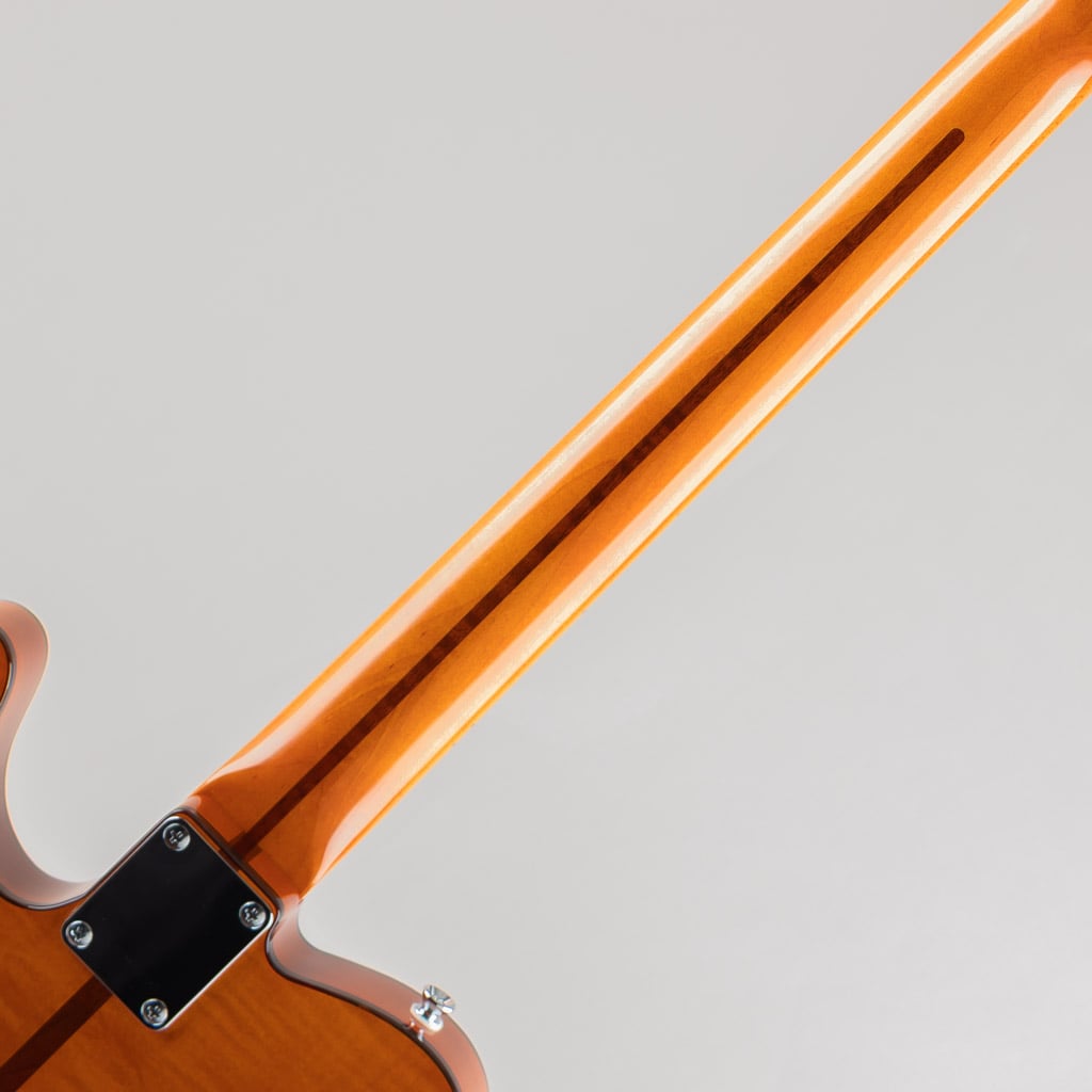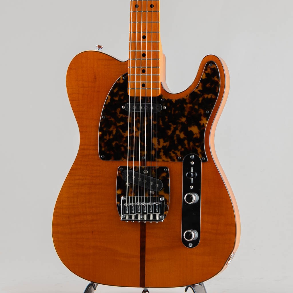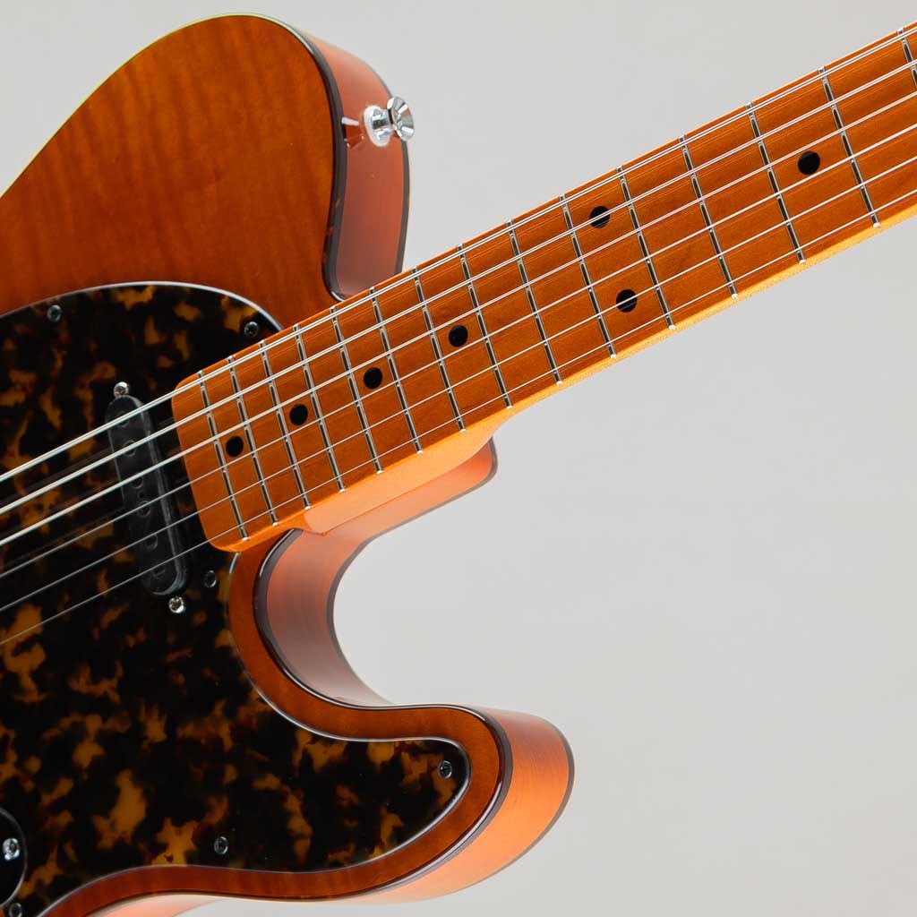 ボディ材はトップとバックに美しいフレイムメイプル、センターにタイトなアッシュ、ストライプ部分にはウォルナットを配置。雰囲気のある飴色が特徴的な1Pメイプルネックというウッドマテリアル。ピックガードに合わせたべっ甲バインディングによりエキゾチックなオーラを持つ独特なルックスを持っております。ピックアップにはBill Lawrence T-I & T-IIを搭載。テレキャスターに通じる軽快なトーンを特徴としており、テレキャスターのこもりがちなフロントもしっかりと高域の立った抜けのいいサウンドを持っております。一音一音の明瞭な響きによりギターボーカルの方にはもちろん、ソロパートでもアンサンブルの中で主張してくれる上質なトーンを出力してくれます。
