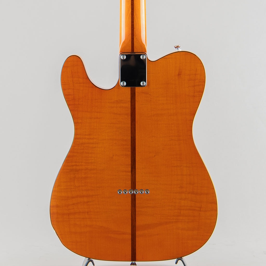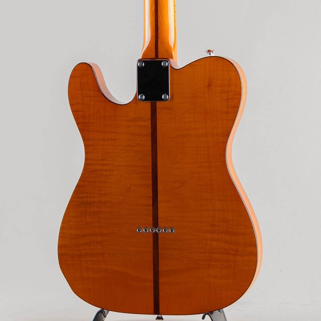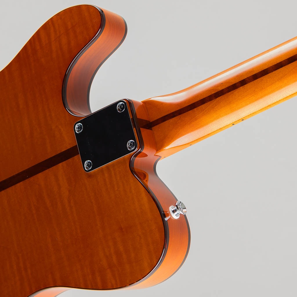 ボディ材はトップとバックに美しいフレイムメイプル、センターにタイトなアッシュ、ストライプ部分にはウォルナットを配置。雰囲気のある飴色が特徴的な1Pメイプルネックというウッドマテリアル。ピックガードに合わせたべっ甲バインディングによりエキゾチックなオーラを持つ独特なルックスを持っております。ピックアップにはBill Lawrence T-I & T-IIを搭載。テレキャスターに通じる軽快なトーンを特徴としており、テレキャスターのこもりがちなフロントもしっかりと高域の立った抜けのいいサウンドを持っております。一音一音の明瞭な響きによりギターボーカルの方にはもちろん、ソロパートでもアンサンブルの中で主張してくれる上質なトーンを出力してくれます。