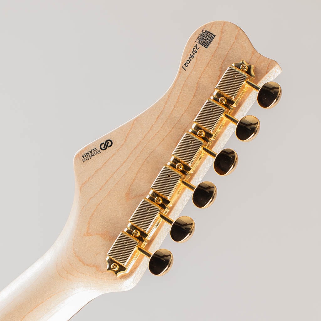 今回入荷しました1本はブランドの中核となるEZaの24フレット仕様でございます。Hydraシリーズをベースとしプレイスタイルの可能性を広げたスタンダードモデル。今回はボディトップに杢の鮮やかなフィギュアドバールメイプル、バック材にアフリカンマホガニーをセレクト。メイプルネック/ローズ指板のフレットには一般的なニッケルシルバーに非常に近い音質のFCGR EI-W-019WARMを採用。ピックアップにはHybrid HBとST Vintageを搭載したHSHレイアウト。音抜けの良いヴィンテージサウンドを基調に、シングルからハムバッカー、P-90までシームレスなタップコントロールが可能にしており無限とも言えるサウンドバリエーションを誇ります。また25インチスケールを採用する事で程よいテンション感と音の分離感を得られ、クリーントーンからハイゲインサウンドまでコード感を失う事なく張りのあるサウンドを出力します。