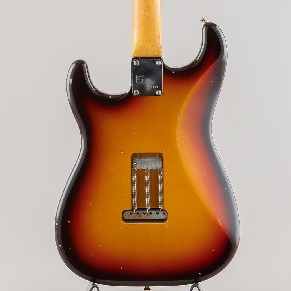 今回入荷しました1本はワンピースのアルダーボディ、特徴的なラージヘッドストック仕様の60sスタイルストラトキャスターでございます。ビンテージと見紛う雰囲気のエイジドはピックガードやハードウェアにも拘っており、外観は貫禄のあるルックスに仕上がっています。ピックアップは各ギターのコンセプトに基づいた八弦小唄オリジナル。ワンピースの豊かな鳴りとラウンドボードがマッチした立ち上がりの良いレスポンス、各弦の分離感の良さは流石です。演奏者を選ばない高い操作性とヴィンテージを基調としながら抜群に扱い易い音色、精巧な仕事とセンスの良いエイジドの風合いはやはり良いヴィンテージを知っている、そしてセットアップに長けた製作家ならではでしょう。生産量も少ないため入荷自体が非常に希少な八弦小唄をこの機会に是非ご検討くださいませ。