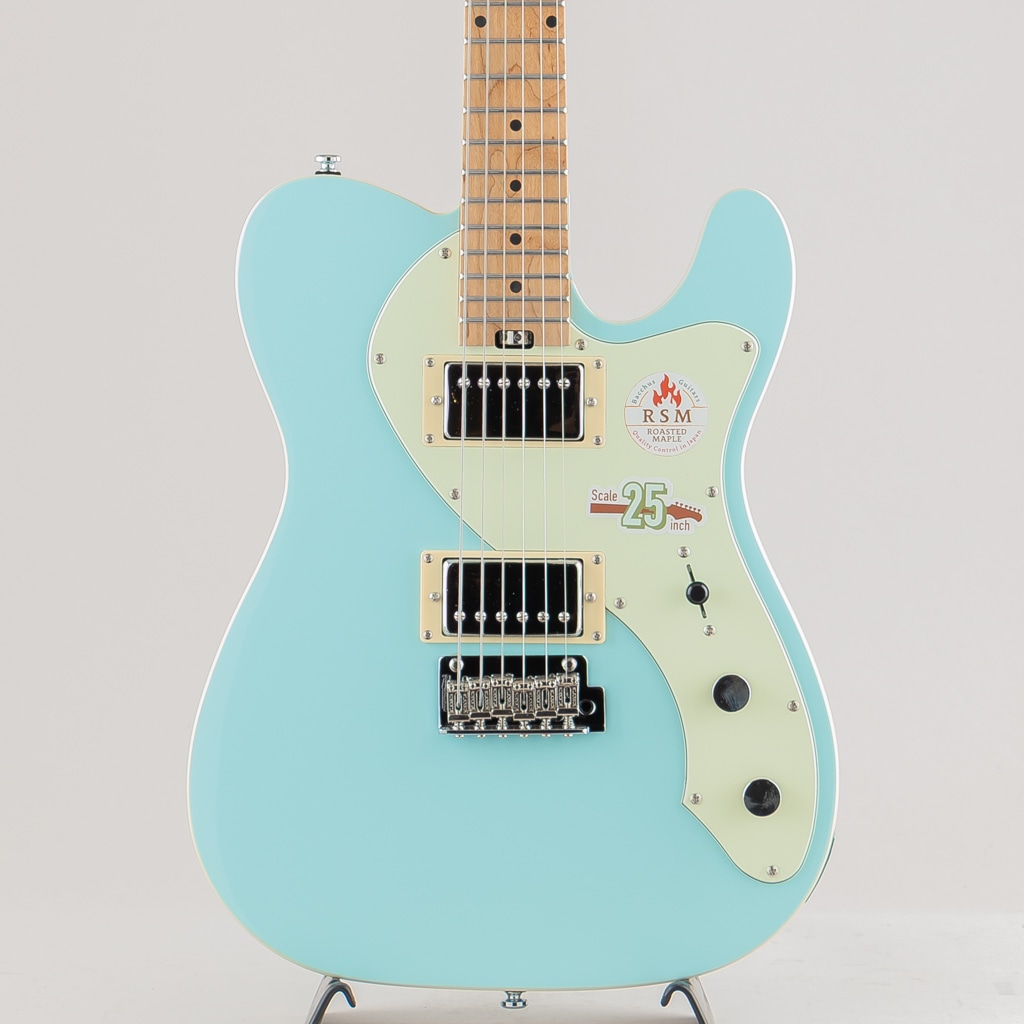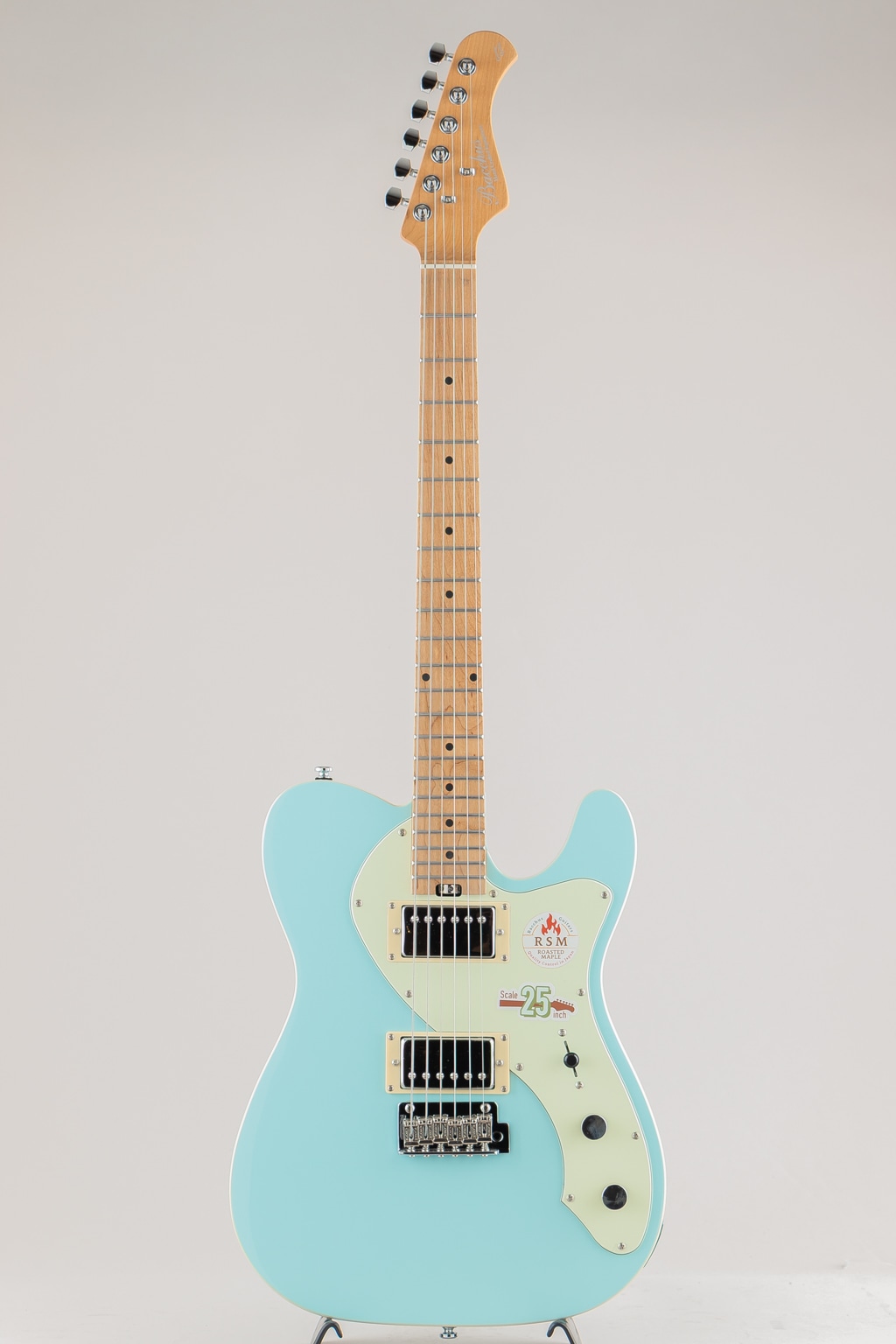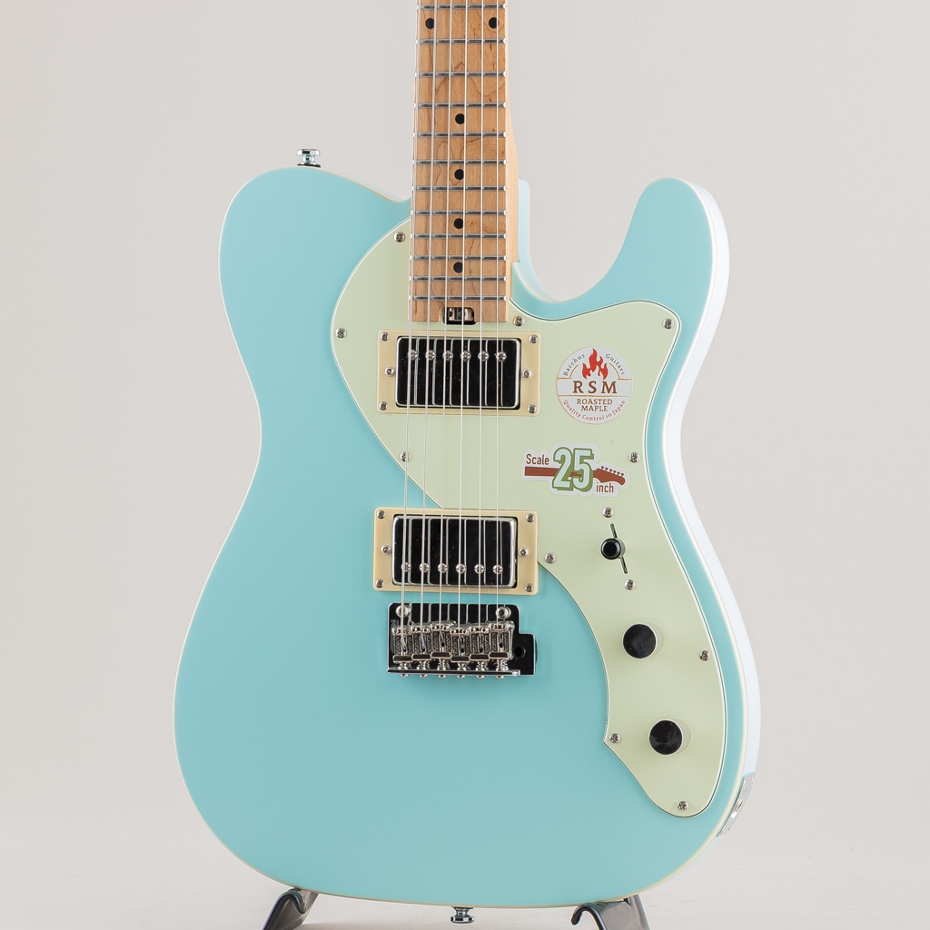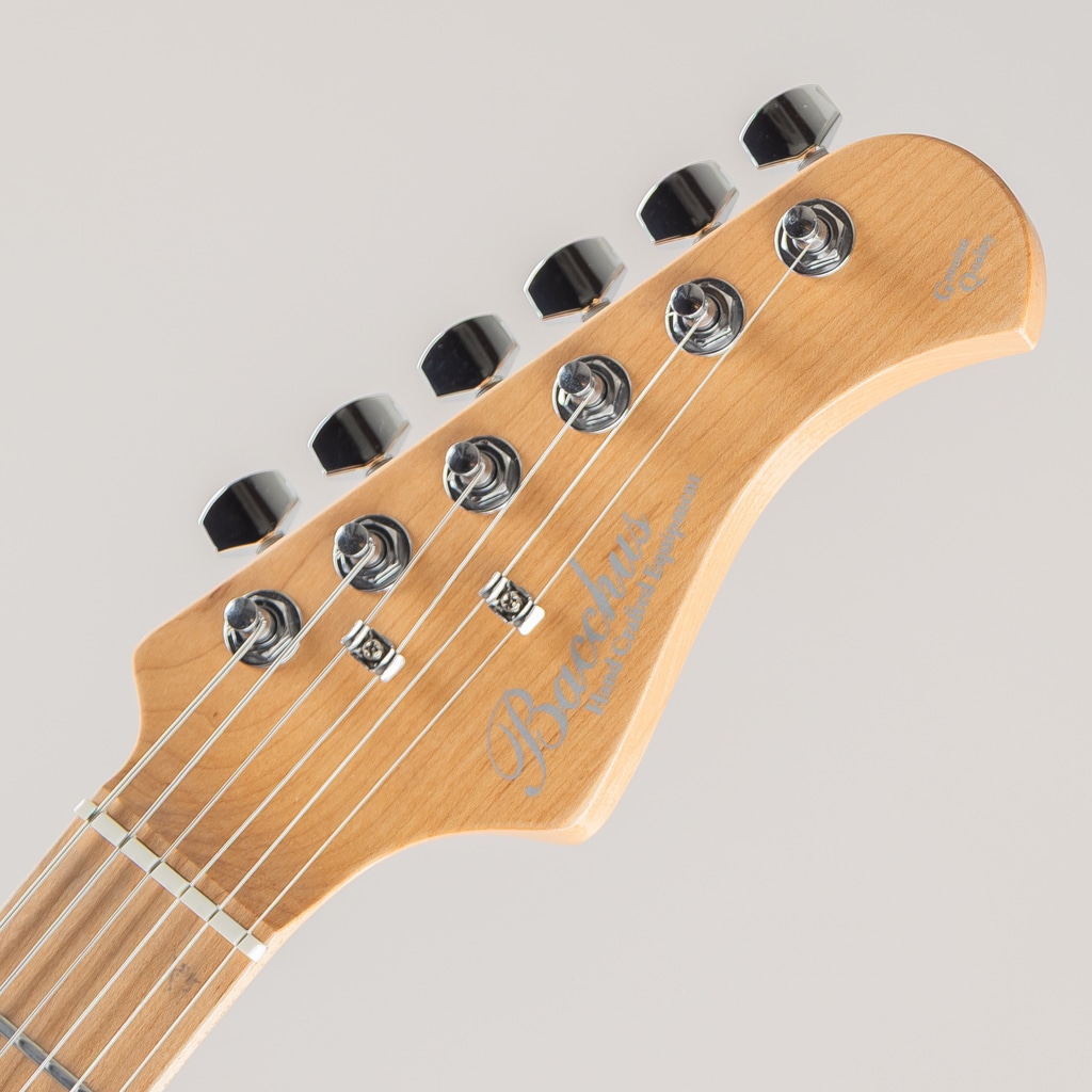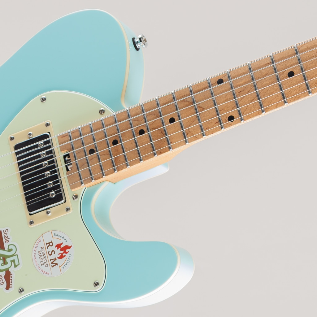 テレキャスターシェイプに2ハムバッカー仕様、トレモロブリッジ搭載モデルのTACTICS-CTM25 RSM/Mが数量限定大特価!! 一般的な「ロングスケール(25 1/2インチ)」と「ミディアムスケール(24 3/4インチ)」の中間である25インチスケールが採用された当モデルは、若干緩めのテンション感が特徴。独特な「ルーズ感」と一般的なロングスケールのギターだとテンション感がきつくチョーキングがしにくい、引きにくい等と感じるプレーヤーにもおすすめできる演奏性の高さを実現したモデルです。 ネックにはBacchusの新機軸でもあるローステッドメイプルを採用。ローストする工程上でゆがみが生じてしまうような木材はその時点で淘汰されるため、ネックとして搭載されている個体は非常にゆがみやねじれに強く、比較的手に取りやすい価格帯ながら長い間ご愛用できる仕様となっております。 2点支持Wilkinsonトレモロユニット搭載にロック式ペグ仕様といったチューニングの安定性を向上させた高水準なスペックを備えており、ピックアップは2ハムバッカー仕様で存在感のある力強いサウンドをクリーンでも歪ませても幅広い音作りに対応してくれます。 ※画像はサンプルとなります。また特価商品につき本体及び付属品の小キズにつきましては保証の対象外となります。予め御了承くださいませ。 Body:Nyatoh Neck:Roasted Maple Fingerboard:Roasted Maple Nut:GraphtechTUSQ XL Bridge:WilkinsonWV2-CR Machineheads:Locking Tuner Fret:Nickel Silver Pickups:Low-wound H-H set Controls:1Vol,1Tone,3Way PU Selector Scale:635mm(25inch) Width at Nut:42.0mm Fingerboard Radius:320R Finish:Polyurethane or Polyester Case : Gig Case