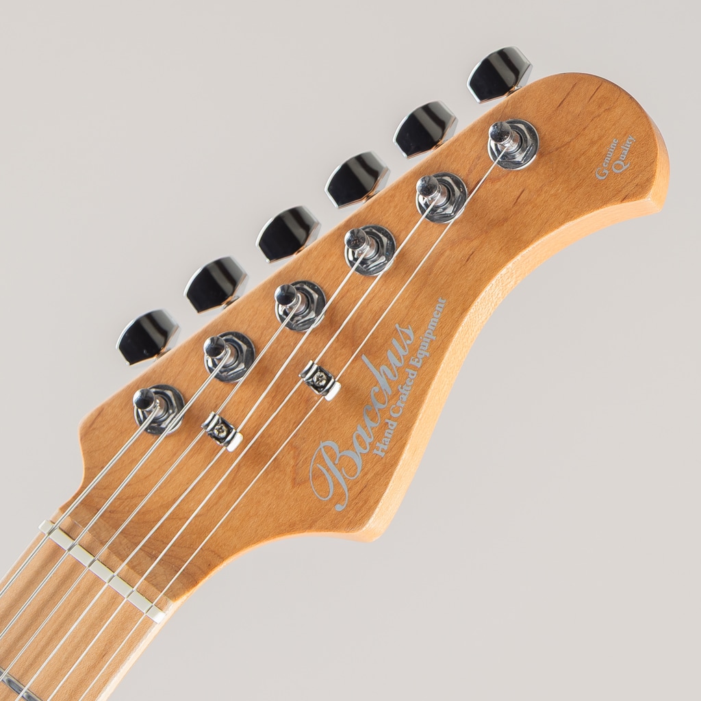 ネックにはBacchusの新機軸でもあるローステッドメイプルを採用。ローストする工程上でゆがみが生じてしまうような木材はその時点で淘汰されるため、ネックとして搭載されている個体は非常にゆがみやねじれに強く、比較的手に取りやすい価格帯ながら長い間ご愛用できる仕様となっております。